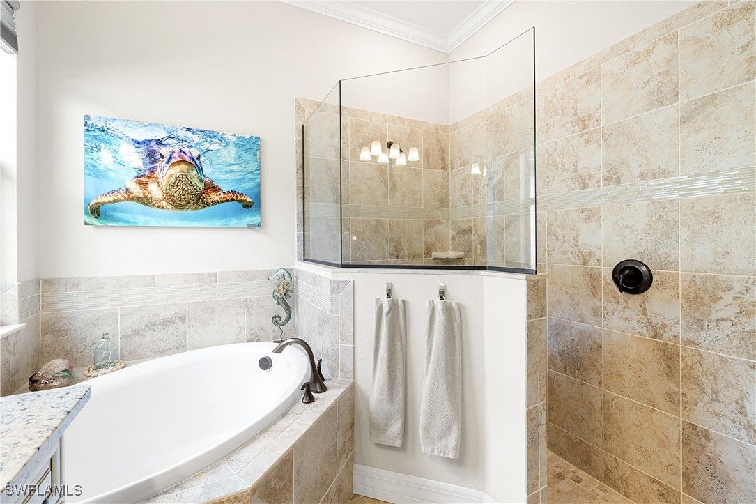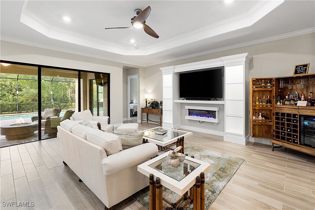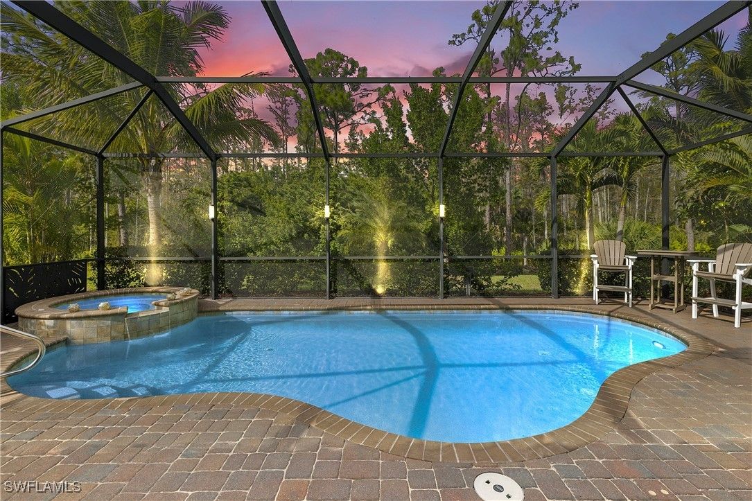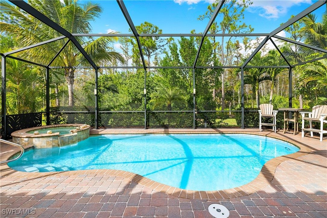 BEAUTIFULLY APPOINTED “ANGELINA” MODEL WITH OUTDOOR KITCHEN, SALTWATER POOL/SPA & SERENE PRIVATE PRESERVE VIEWS! This meticulously kept home with SOCIAL MEMBERSHIP offers 3 bedrooms (one can be used as a Den as it has pocket doors opening up to the entry hallway), 2 Full Baths, 2 Car Garage, 2,062sf living area. The residence comes FURNISHED and presents a very versatile layout, perfect for socializing with family & friends. The lanai is accentuated by a TONGUE-N-GROOVE WOOD CEILING, HURRICANE STORM SCREEN, stone wall & custom OUTDOOR KITCHEN complete with a stainless steel grill, vented hood, refrigerator & storage compartments. The FIREPIT SEATING AREA provides a comfy place to unwind after a long day. Relax in the HEATED SALTWATER POOL & SPA while taking in the manicured, landscaped views. The pool cage has designer tropical privacy panels, PILLAR LIGHTS joined by solar landscape up lighting & MIULTI-COLORED POOL/SPA LIGHTS, perfect to set the evening ambiance for all to enjoy. Inside the home, the OPEN CONCEPT living space provides an elegant entertaining space with an exquisitely built ENTERTAINMENT FEATURE WALL complete with plug in LED ELECTRIC FIREPLACE with ILLUMINATED GLASS SHELVES. The spacious Greatroom & Dining area boasts TRAY CEILINGS. The kitchen blends style & functionality with granite countertops, a large island, built in stainless steel appliances & a passthrough window to the outdoor living space. The elegant off-white cabinetry has DOVETAIL CONSTRUCTION with 42-inch upper cabinets enhanced by a STONE BACKSPLASH & UNDER-CABINET LIGHTING for a polished, designer look. Throughout this home, you’ll find upscale lighting/ceiling fans, CROWN MOLDING & ALL HARD SURFACES (NO CARPET). The primary suite showcases pool & peaceful private views along with having direct lanai access.. it is outfitted with MOTORIZED SHADES, TRAY ceiling & dual walk-in closets with CLOSET ORGANIZERS. The spa-style bathroom features granite countertops, dual sinks, VANITY area, SOAKING TUB & an oversized WALK-IN SHOWER with HEAVY GLASS. The two guest bedrooms provide family & friends ample space to stay. Laundry is complete with cabinetry, sink & upgraded SAMSUNG FRONT LOAD W/D. The garage comes with epoxy paint floor & SLAT WALLS WITH HANGING CABINETS for added storage. Have peace of mind during storm season with IMPACT-RESISTANT windows and doors and STORM SCREEN on the lanai for added protection. Bonita National Golf & Country Club is in FLOOD ZONE X (no flood insurance required) & centrally located, just a short drive to the Gulf beaches, Airport, upscale shopping, 5th Avenue, Coconut Point Mall, Miromar Outlets, & the exciting upcoming Midtown Bonita! Bonita National offers an impressive array of amenities including an on-site restaurant & bar, resort-style pool, lap pool, spa, upcoming pickleball courts, tennis, fitness center, clubhouse, beauty salon, & 24-hour guard at gate. Social members can play unlimited golf from May-October!