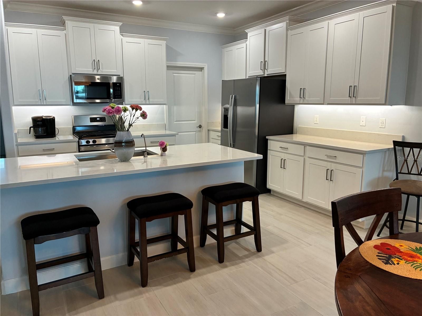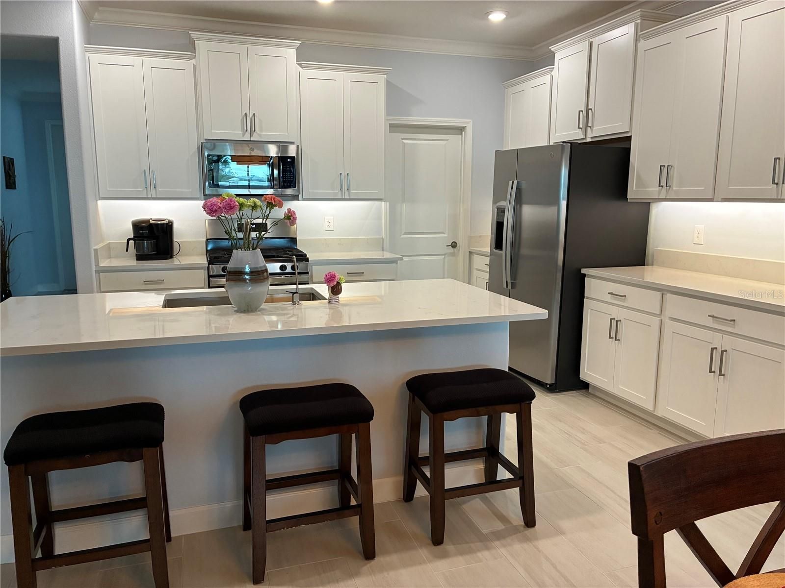 One of Tampa Bay’s best Active Adult Lifestyle Communities” This spacious single-story home features both a storage space and multipurpose flex space for comfortable living. The stylish kitchen, family room and dining room cohesively flow into a serene patio for indoor-outdoor entertaining. The expansive owner’s suite with a spa-like private bathroom overlooks two additional bedrooms ideal for overnight guests. The home is full of upgrades including a tile roof, quartz counter tops, crown molding, screened in lanai, golf cart garage and no back yard neighbors. Located in a LAGOON community with a 5-acre swimming pool with kayaking, paddleboarding swimming and a bar. Also, a clubhouse in the Medley side of the community with a pool, a restaurant and bar, gym, pickle ball courts and so many clubs and things to keep you busy in this 55+ community. One of the few 3-bedroom homes available.