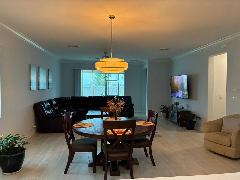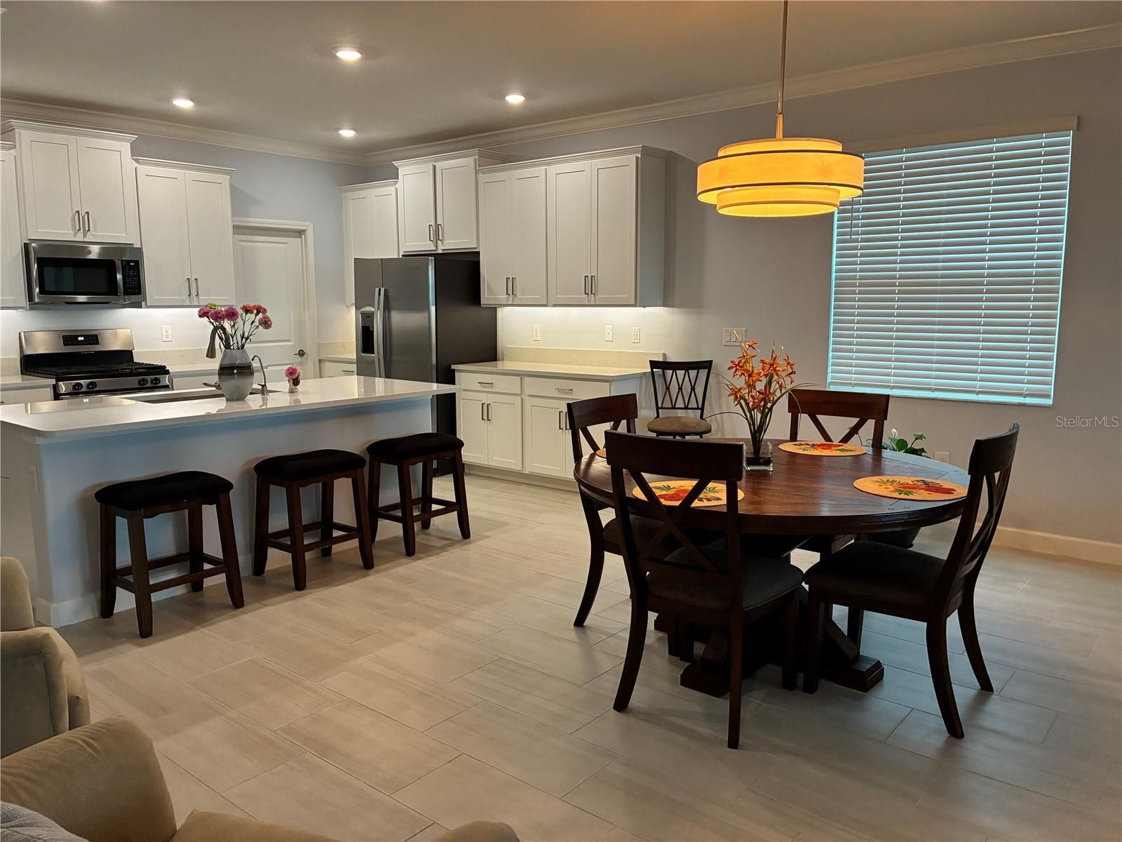 - Ceiling Fan(s), Crown Molding, Kitchen/Family Room Combo, Open Floorplan, Solid-Wood Cabinets, Stone Counters, Thermostat, Walk-In Closet(s), Window Treatments