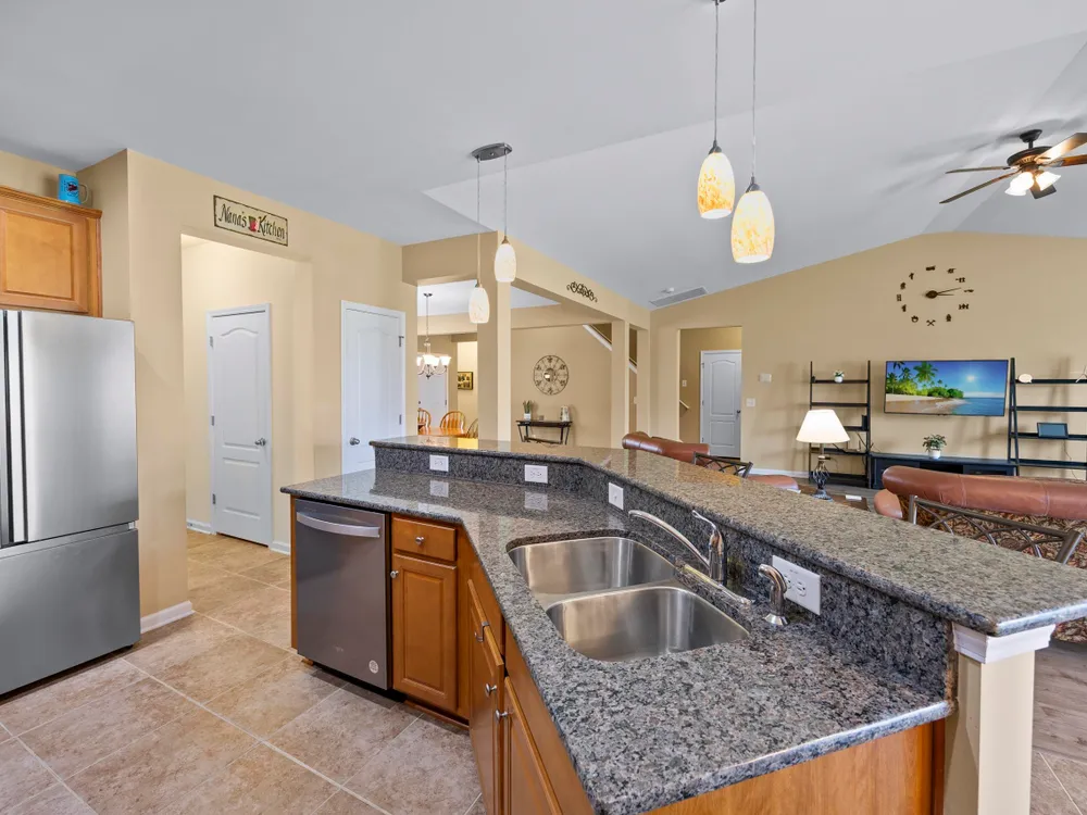 - Breakfast Bar, Bedroom on Main Level, Breakfast Area, Entrance Foyer, Kitchen Island, Solid Surface Counters