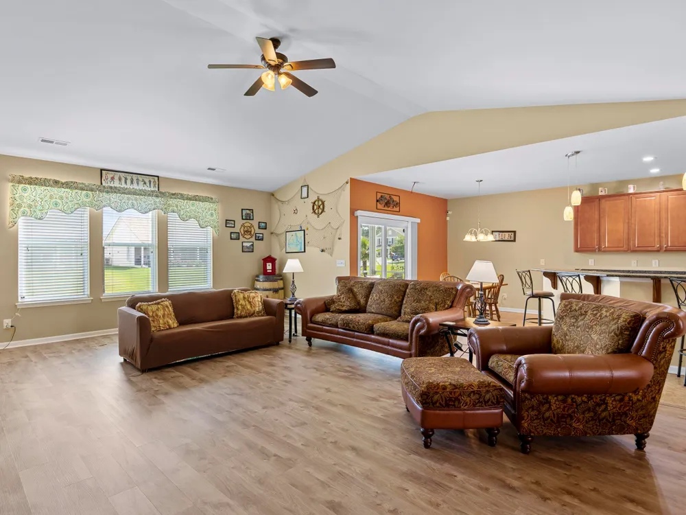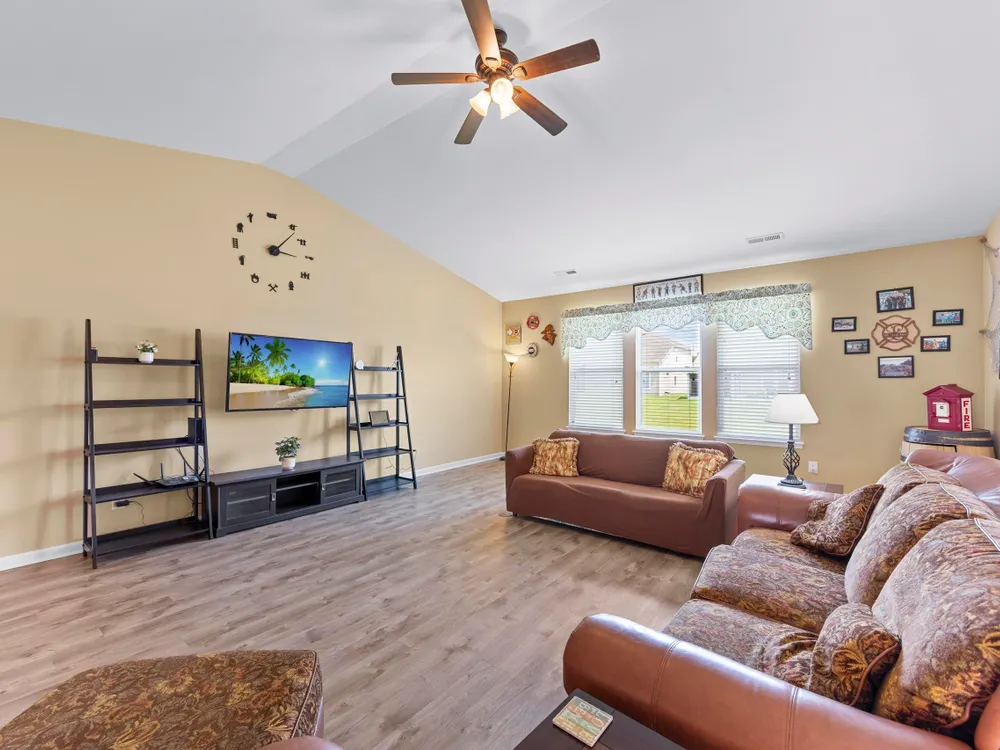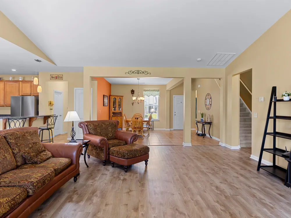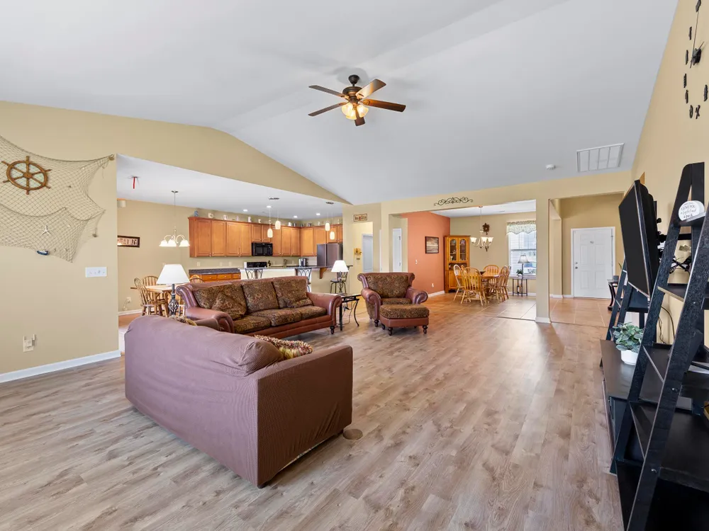 Spacious 4-Bedroom Home in Cameron Village – Myrtle Beach, SC. Welcome to this beautifully maintained 4-bedroom, 3.5-bath single-family home in the sought-after Cameron Village community. Featuring a spacious open floorplan with soaring vaulted ceilings, this home offers the perfect blend of comfort and style for everyday living and entertaining. The kitchen is a chef’s dream with granite countertops, under cabinet lighting, newer stainless steel refrigerator and dishwater, and a cozy breakfast area that flows seamlessly into the living space. Enjoy formal meals in the elegant dining room, or unwind on the screened porch overlooking a tranquil pond—ideal for morning coffee or evening relaxation. The main level includes a generous primary suite with walk in closet, the primary bath features a large shower, vanity water closet and linen closet. The first floor also contains two additional bedrooms that share a hall bath. The second floor boasts a large bedroom and private bath—perfect for guests or a home office. Additional highlights include a two-car garage, dedicated laundry room, and ample storage throughout. HVAC REPLACED IN 2022. TERMITE BOND. FURNITURE AVAILABLE. Located just six miles from the beach and minutes to shopping, dining, golf, and the Enterprise Boat Landing on the Intracoastal Waterway. Cameron Village residents enjoy access to a community pool, clubhouse, and tennis courts, and pickleball courts making this the perfect place to enjoy the Myrtle Beach lifestyle. Don’t miss your chance to own this stunning home in one of the area’s most desirable neighborhoods!