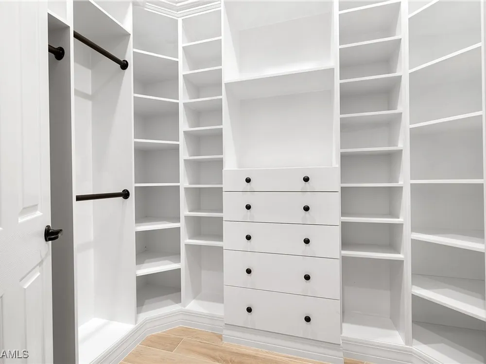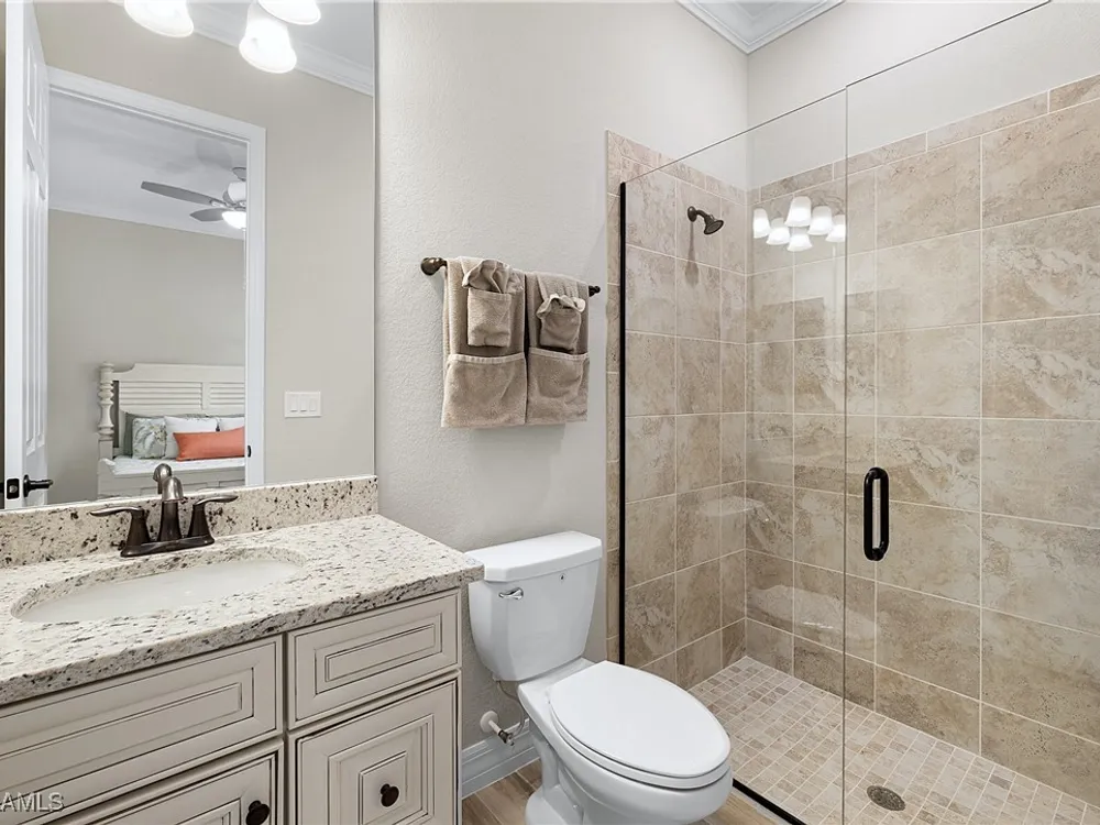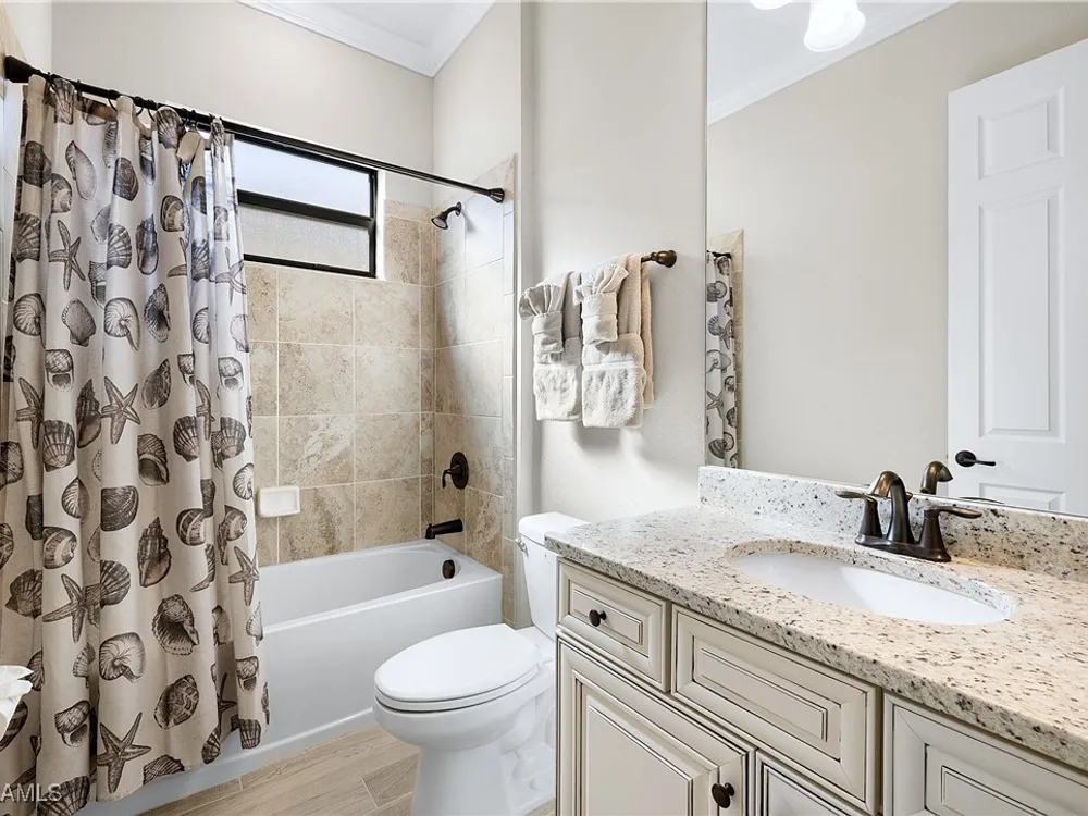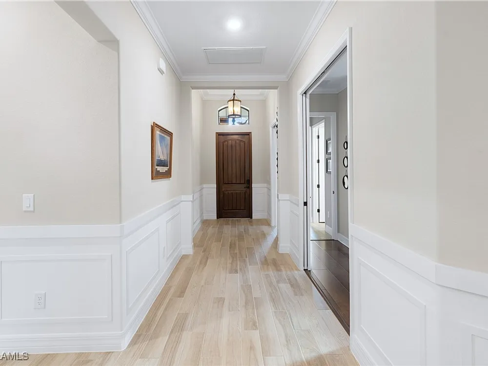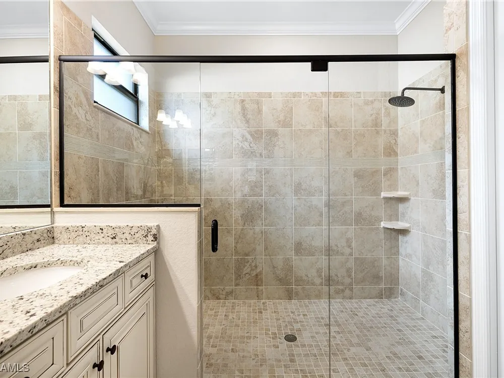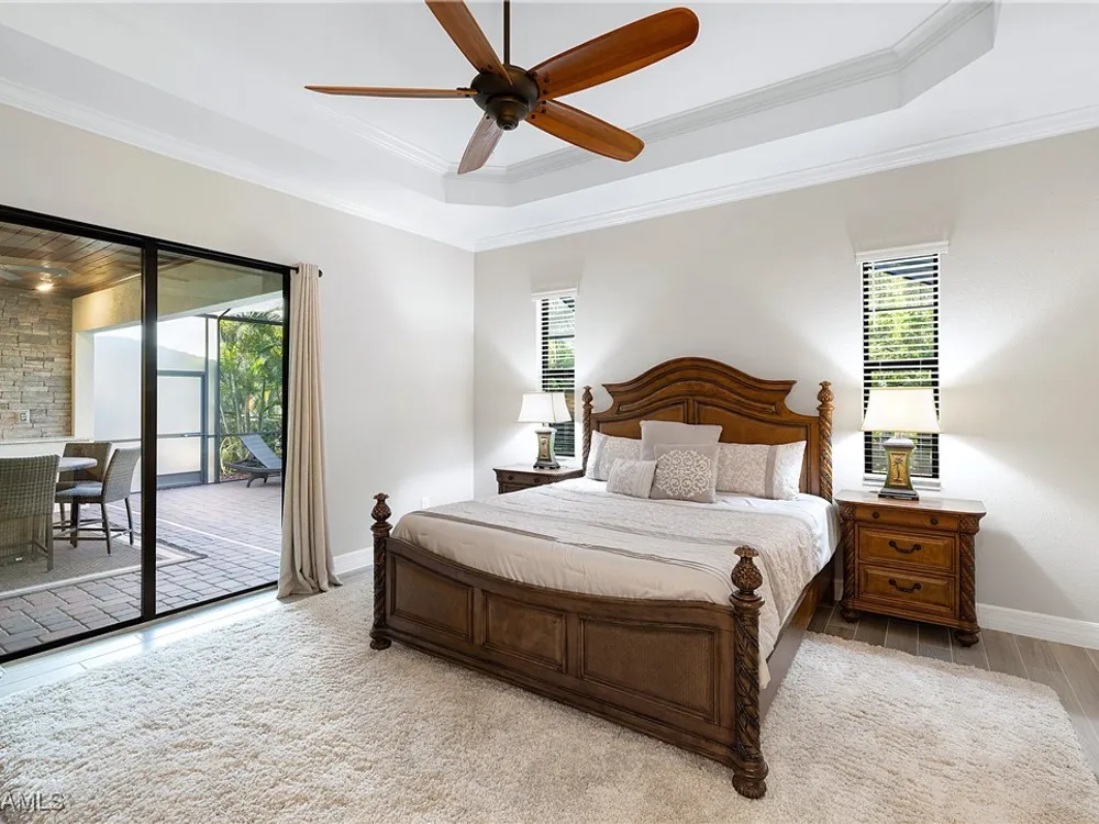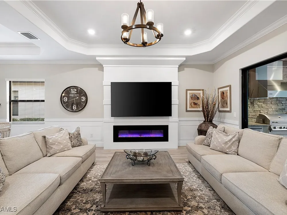 COME SEE THIS HIGHLY UPGRADED “MARIA” MODEL WITH DELUXE OUTDOOR KITCHEN, POOL/SPA & ULTRA PRIVATE PRESERVE VIEWS! This meticulously kept home with SOCIAL MEMBERSHIP offers 4 bedrooms (one can be used as a den), 3 full baths, 2 car garage, 2,247sf living area and is equipped with IMPACT-RESISTANT windows and doors. Take notice of all the WOOD TRIM and CUSTOM MILLWORK throughout the home including crown molding, custom wood accent walls, designer mirror wall in dining area and a beautifully constructed TV Fireplace feature wall. Enjoy the OPEN CONCEPT living space with elegant lighting, TRAY CEILINGS and wood look plank tile. The kitchen blends style and functionality with an oversized walk-in pantry, granite countertops, a large island, built in stainless steel appliances. The elegant off-white cabinetry with accent detail is DOVETAIL CONSTRUCTION with 42-inch upper cabinets enhanced by a STONE BACKSPLASH and UNDER-CABINET LIGHTING for a polished, designer finish. The spacious greatroom is beautifully appointed with an LED ELECTRIC FIREPLACE FEATURE WALL and large glass sliding doors opening up to the lanai. Step out from the greatroom into the expansive lanai, where relaxation and entertaining come naturally. The lanai is accentuated by the SEALED pavers, TONGUE-N-GROOVE CEILING, stone wall and custom OUTDOOR KITCHEN complete with a stainless steel grill, vented hood, refrigerator, sink and storage compartments. Relax in the HEATED POOL AND SPA while taking in the landscaped, manicured views. The pool cage pillar lights and upscale EXTERIOR LANDSCAPE LIGHTING set the perfect evening ambiance for all to enjoy. Inside the home, the primary suite showcases pool and serene preserve views along with having direct lanai access... it also is outfitted with a tray ceiling, dual walk-in closets (one with custom organizers with soft-close drawers, the other with wood shelving). The spa-style bathroom features granite countertops, dual sinks, vanity area and an oversized shower with HEAVY GLASS ENCLOSURE and rainfall showerhead. The two guest bedrooms provide family and friends with ample space to stay. One bedroom has a private en-suite bath and the other has a Jack and Jill bath shared with the den. The 4th Bedroom/Den boasts wood flooring, separate closet and a charming white bookcase w/bench seating, perfect for a reading nook. Laundry and garage are complete with CABINETRY for added storage. Bonita National Golf & Country Club is in FLOOD ZONE X (no flood insurance required) and centrally located, just a short drive to the Gulf beaches, Airport, upscale shopping, Coconut Point Mall, Miromar Outlets, Gulf Coast Town Center, and the exciting new Midtown Bonita! Bonita National offers an impressive array of amenities including an on-site restaurant and bar, resort-style pool, lap pool, spa, pickleball courts, tennis, fitness center, clubhouse, beauty salon, and 24-hour guard at gate. Social members can play unlimited golf from May through October!