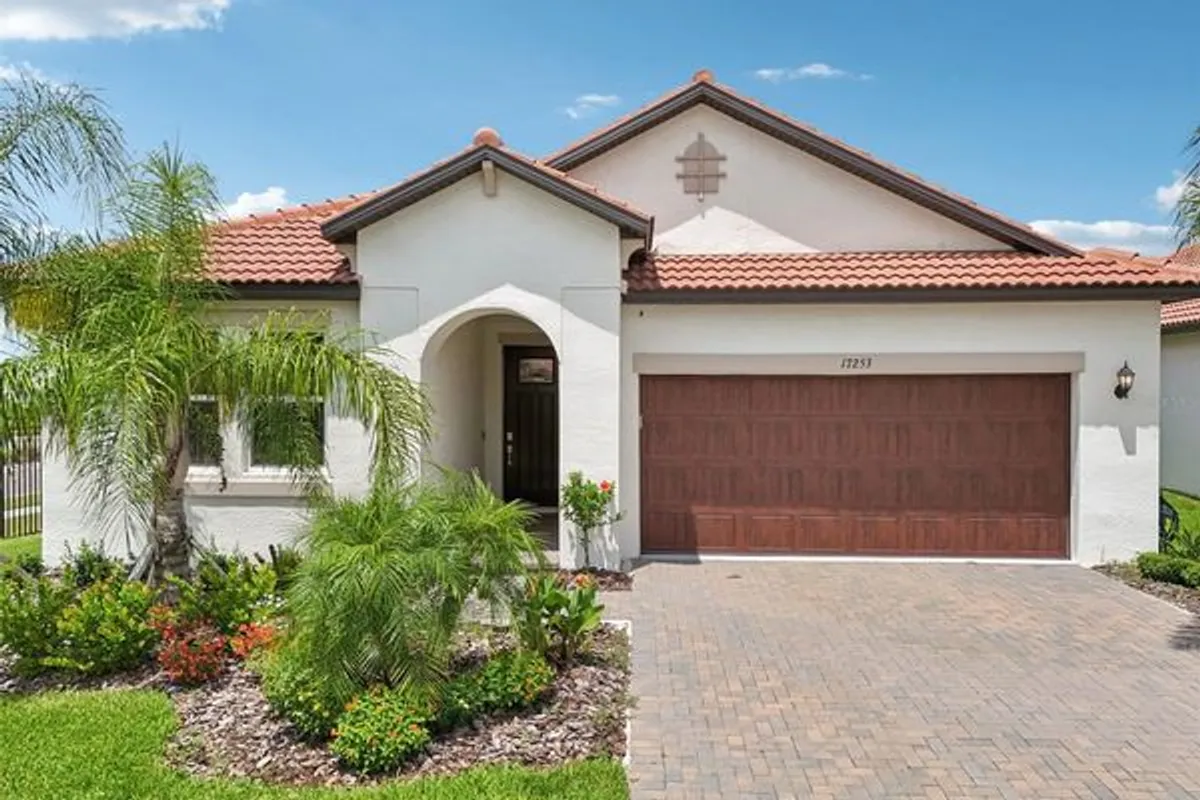 IF BUYER CHOOSES SELLER’S PREFERRED LENDER, LENDER TO OFFER EITHER A 1% FIRST-YEAR RATE BUYDOWN OR LENDER FLEX CASH EQUAL TO 1% OF THE LOAN AMOUNT TOWARD BUYER’S CLOSING COSTS. BUYER IS NOT REQUIRED TO USE PREFERRED LENDER. This 2023 Sunburst model is packed with upgrades and located in Medley at South Shore Bay-a gated, newly built 55+ community known for its vibrant lifestyle and upscale clubhouse. This single-story, standalone home offers curb appeal with a curved front archway, multi-pitched roofline, woodgrain-style garage door, and colorful landscaping (maintained by the association). The convenient community location allows for quick in-and-out access, and there’s plenty of room with 2 bedrooms, 2 full bathrooms, and a FLEX ROOM. The interior is a modern design with stylish paint—striking navy-blue accent wall and coordinating island—paired with lever door handles, bullnose corners, crown molding, beveled baseboards, and plank tile flooring throughout except in carpeted bedrooms. The open-concept living space combines the living room, dining area, and entertainer’s kitchen. Kitchen features: quartz/quartzite countertops, 4-seat center, stainless steel farmhouse sink with a sprayer faucet, sponge caddy, and disposer. KCMA sustainable 42” white shaker cabinets are topped with molding, have pull-out drawers, and enhanced by dimmable LED under-cab lighting. A corner walk-in pantry and GE stainless steel appliances—including a GAS STOVE, microwave, dishwasher, and refrigerator with water/ice dispenser—complete this impressive space. The entire home is equipped with a filtration water softener and tankless water heater providing non-stop hot and clean, drinkable water. The bedrooms are split at opposite ends of the home, with the primary suite tucked away at the back of home. The east side of the home features a smart and unique layout: the primary bedroom connects to a sprawling en-suite bath complete with dual sinks, makeup vanity, a glass-framed, easy step-in shower with bench seating, and a water closet. The walk-in closet flows directly into the laundry room that includes a white GE TOP-LOAD W/D, a modern washtub sink with sprayer faucet, cabinet storage, and a place to plug in rechargeable vacuums. Step through tinted glass sliders into the oversized screened lanai—perfect for outdoor dining or relaxing, complete with REMOTE PRIVACY SCREEN, patio TV wiring, and string light hooks. The 2 car garage features an insulated, impact-rated Banko door, LiftMaster smart opener, built-in cabinets, tool hook, LED lighting, and a raised threshold for cleaner entry. A convenient drop-zone counter sits just inside the home’s garage entry, and the A/C condenser has its own closet. Storm protection panels are neatly organized for all dual-pane vinyl windows—qualifying for WIND MITIGATION CREDITS. This is a golf cart-friendly neighborhood with a resort-style clubhouse offering a restaurant with reasonable priced food, indoor/outdoor bar, computer center, dining areas, ballroom, pool table, lagoon pool, fitness center, lifestyle clubs, pickleball, bocce ball, turfed cornhole, and dog walking area. One of the most impressive clubhouses this Realtor has seen. I would highly recommend planning your showing around lunch or dinner time to taste test the clubhouse restaurant. Residents also enjoy access to the famed Southshore Bay Lagoon. Whether relaxing at home or joining the fun, this exceptional home delivers the best of Florida’s 55+ lifestyle.