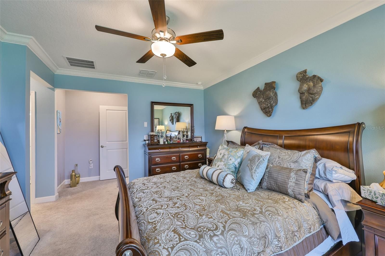 - Ceiling Fan(s), Chair Rail, Crown Molding, Open Floorplan, Split Bedrooms, Stone Counters, Thermostat, Walk-In Closet(s), Window Treatments