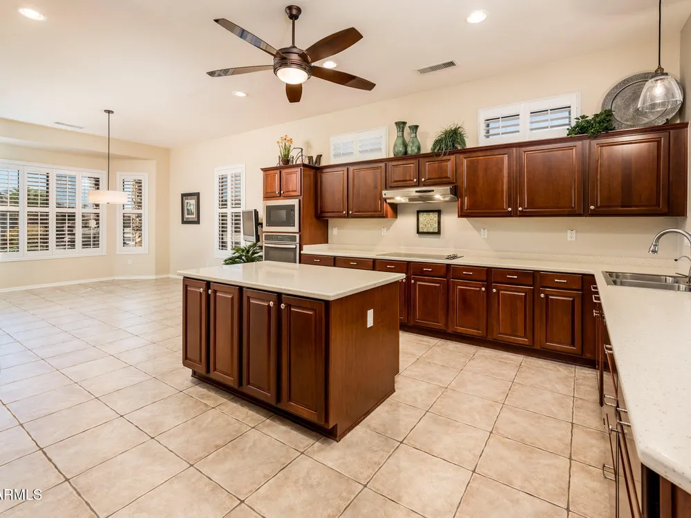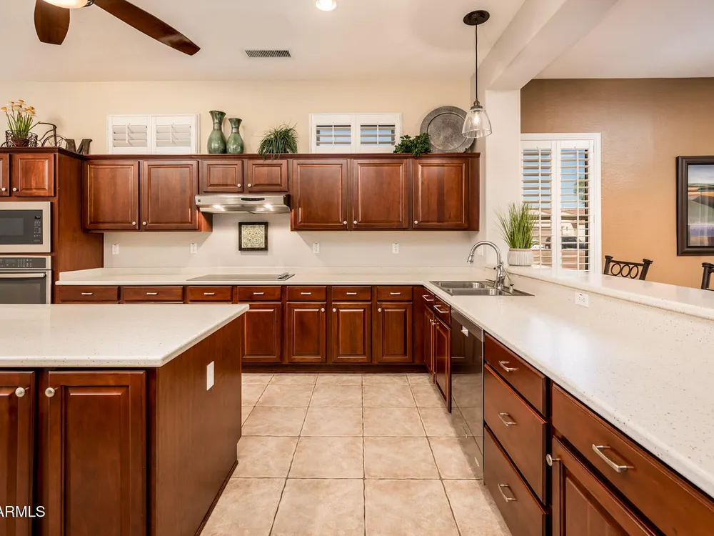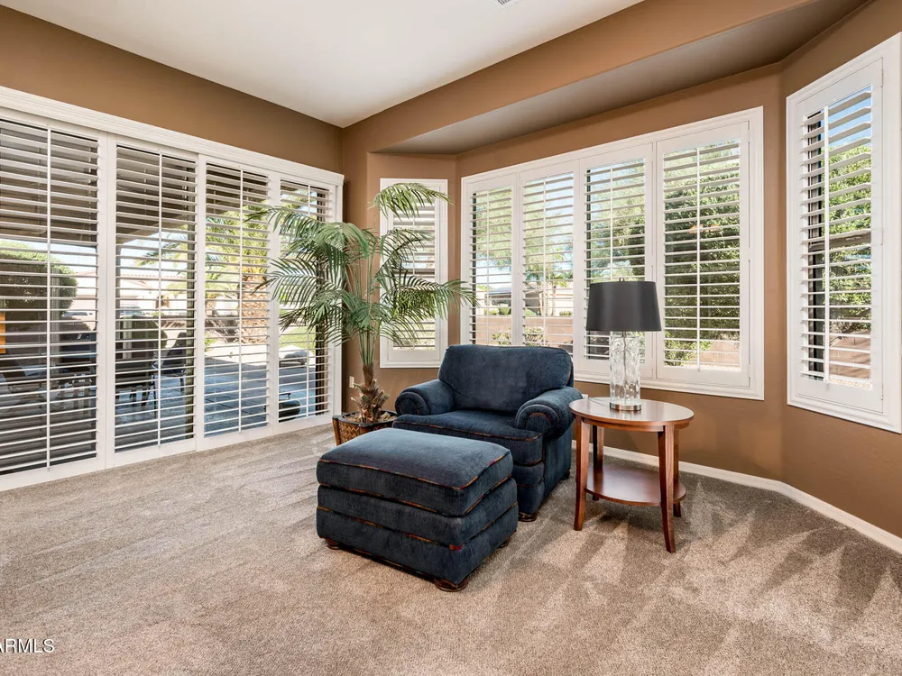 Step into this inviting 2-bedroom + den ''Ashbury'' model and experience the comfort and lifestyle that makes The Grand one of Arizona's premier active adult communities. The open-concept great room flows seamlessly into a well-appointed kitchen featuring warm wood cabinetry, a sleek electric cooktop, and stainless-steel appliances—perfect for entertaining or quiet evenings in. The spacious primary suite includes a cozy sitting area and a large ensuite bath, offering a private retreat at day's end. An additional bedroom and versatile office space provide flexibility for guests or hobbies. Furniture is available, making this a move-in-ready opportunity to embrace resort-style living with ease. Don't miss your chance to own in a community known for its golf, fitness centers, pools, and more!