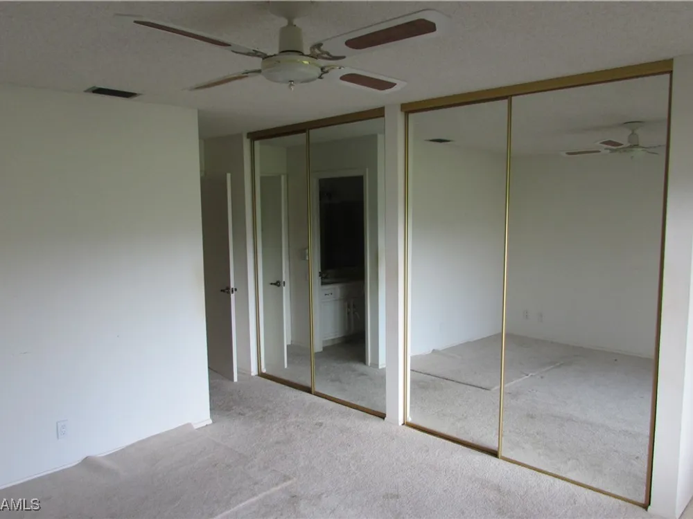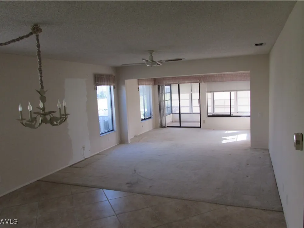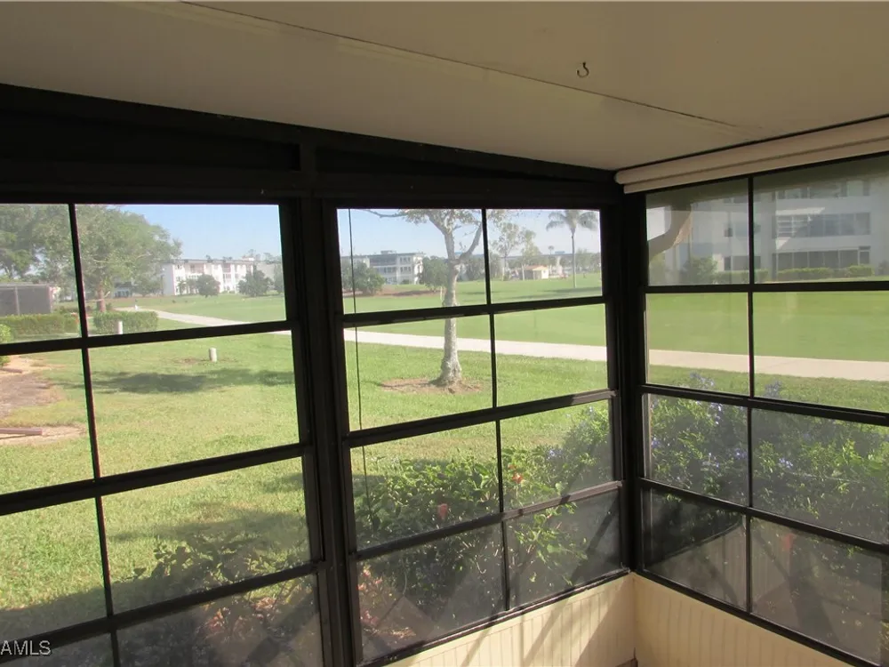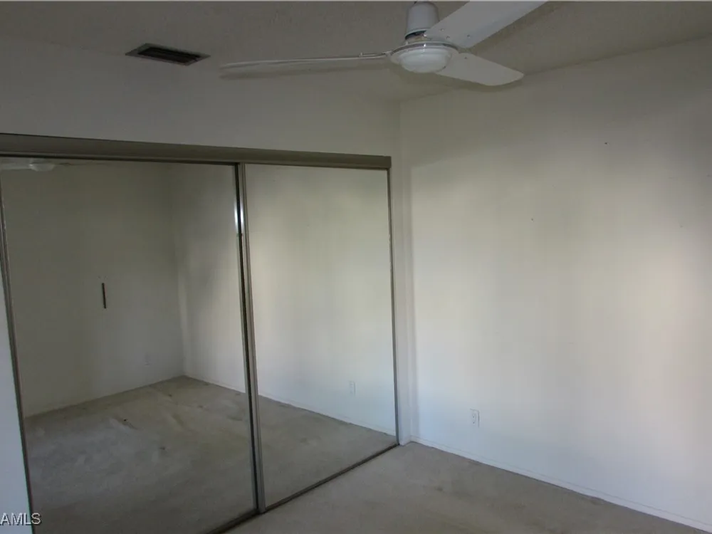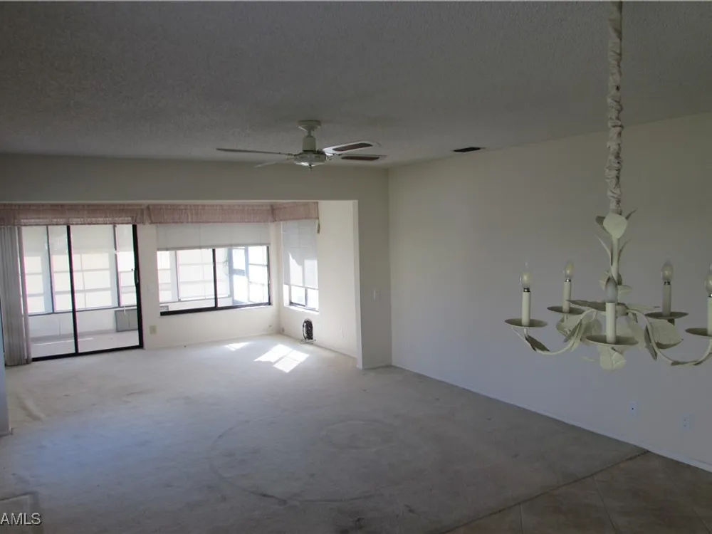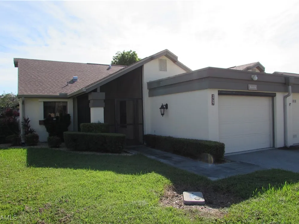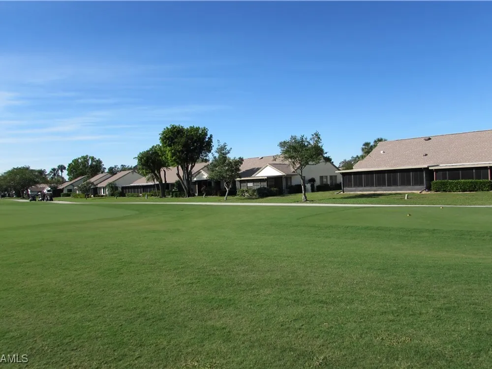 Bring your personal touch to this garden villa overlooking golf course, wide views. Lowest price villa in the community. Large living room with lot of windows, screened lanai and screened front porch, oversized garage and inside laundry. Very active senior living club house with busy social calendar, full service recreation department, restaurant, and with unlimited golf playing privileges, no additional golf fees. Excellent location in South Fort Myers, close to everything the area has to offer