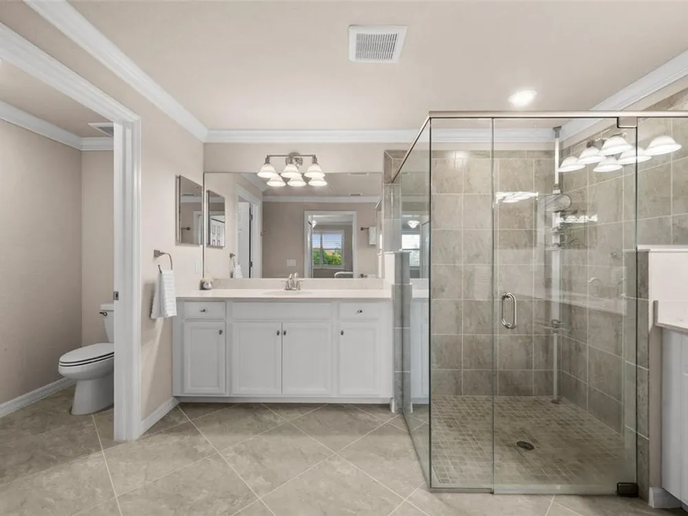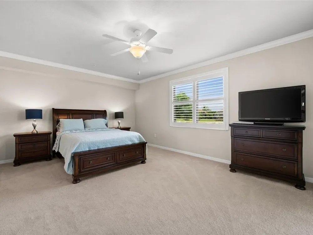- Built-in Features, Crown Molding, Open Floorplan, Main Level Primary, Split Bedrooms, Thermostat, Walk-In Closet(s), Window Treatments