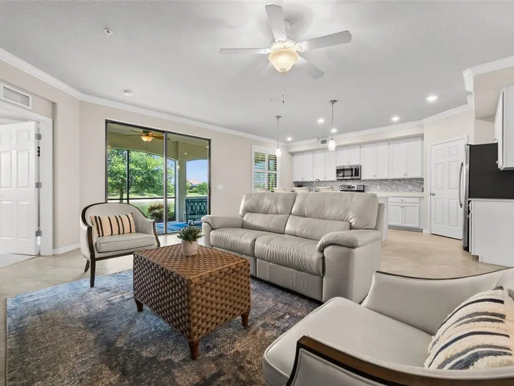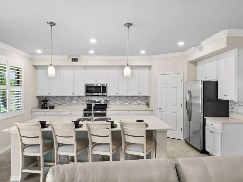 Are you ready to live the ultimate SW Florida lifestyle in the prestigious, gated Bonita National Golf & Country Club? Welcome to 17270 Cherrywood Ct #5904 in Bonita Springs – a beautifully furnished, first-floor Lakefront coach home. This home offers 3 bedrooms, 2 bathrooms, and 1,760 square feet of stylish living space with an open floor plan, crown molding, and tile flooring throughout the main areas. Enjoy water views from the large screened lanai, living room, and master suite. The kitchen features stainless steel appliances, quartz countertops, a tile backsplash, and a spacious island with room for your guests at the breakfast bar. The master bedroom features lanai access, a walk-in closet, and a spa-inspired bath with dual sinks and a large tiled, glass-enclosed shower. A 2-car attached garage, paver driveway and walkway, and tile roof complete the exterior features. This home includes a social membership, giving you access to world-class amenities, including the lagoon-style pool with waterfall, lap lanes, and poolside cabanas, along with a full-service spa, fitness center, sauna, aerobics studio, 8 Har-Tru tennis courts, and casual and fine dining options. There are new pickleball and bocce courts coming soon. Includes the Social Membership. Just a short stroll to the amenity center, this home is ideally situated for enjoying the Florida lifestyle. You’ll be minutes from white sand Gulf beaches, RSW Airport, and all the dining, shopping, arts, and recreation of Naples and Fort Myers. Don’t miss this opportunity to own a serene slice of paradise in one of Southwest Florida’s premier communities!