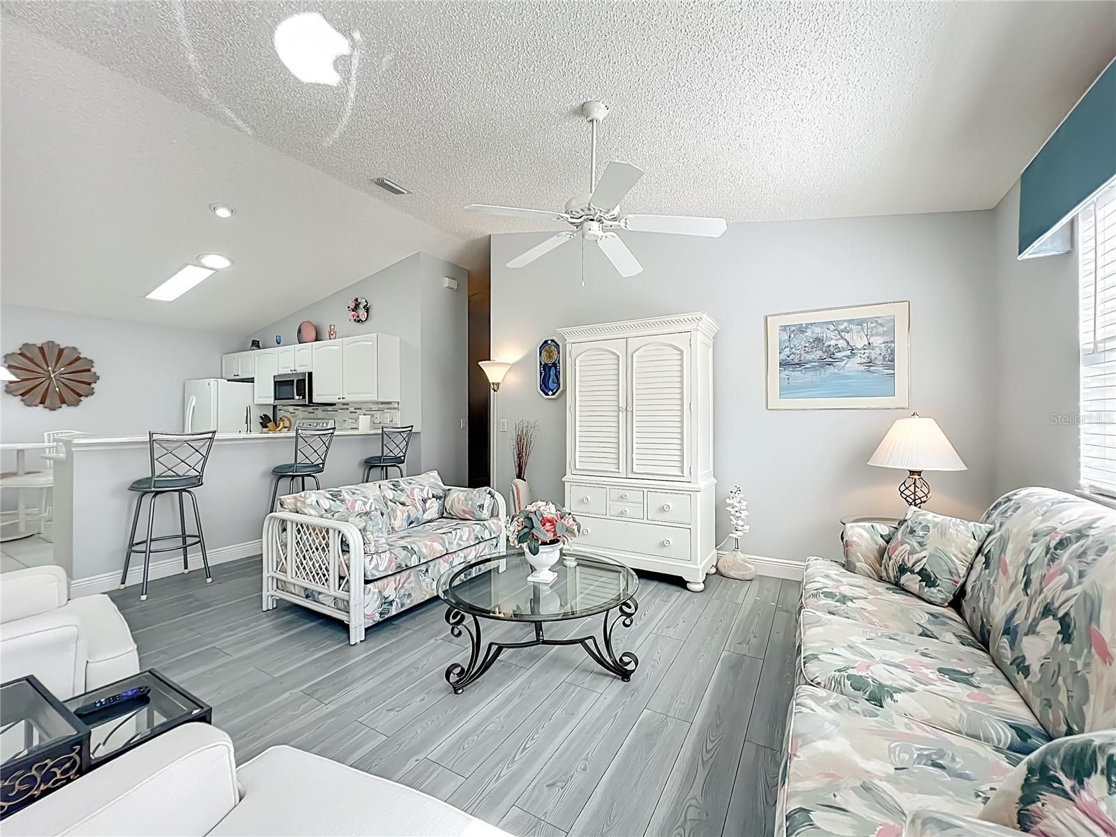 - Ceiling Fan(s), High Ceilings, Open Floorplan, Main Level Primary, Stone Counters, Vaulted Ceiling(s), Walk-In Closet(s)