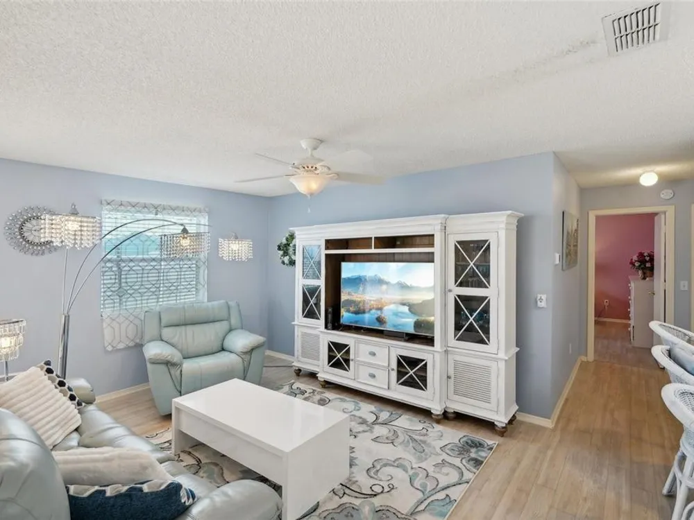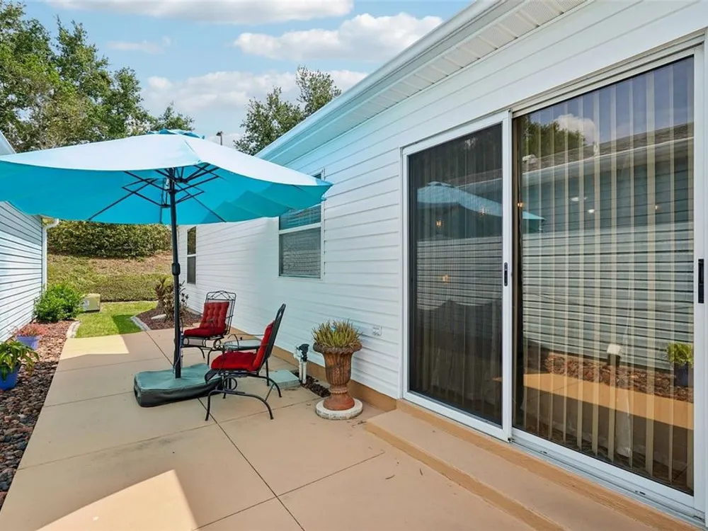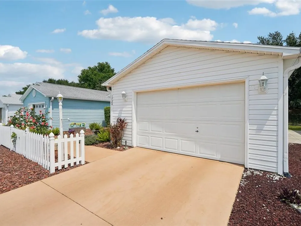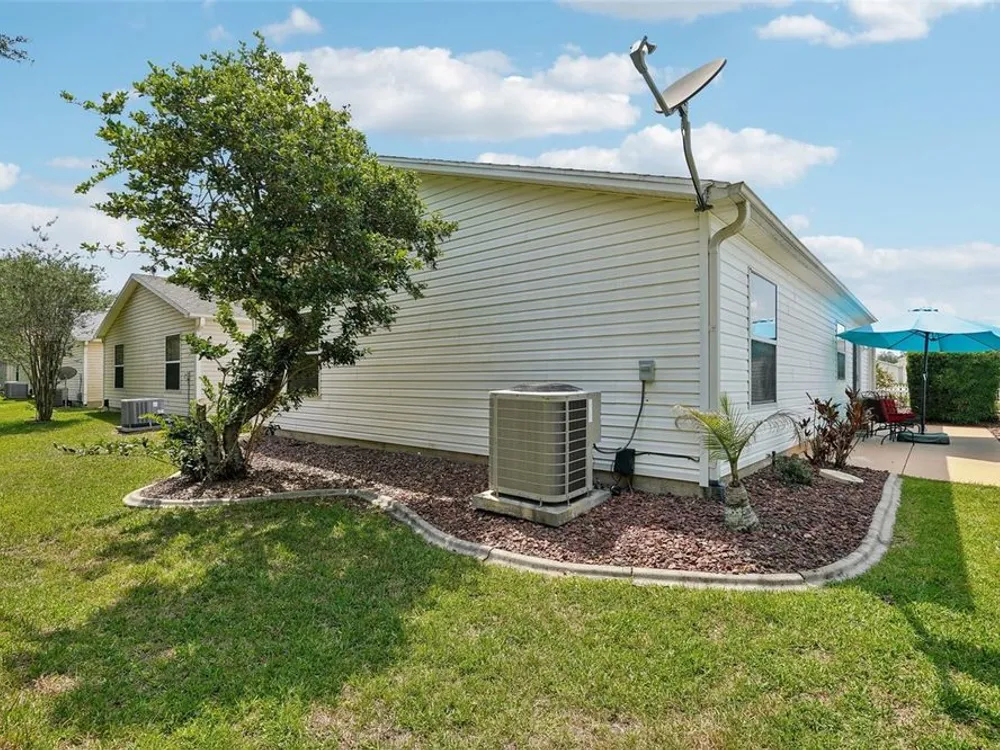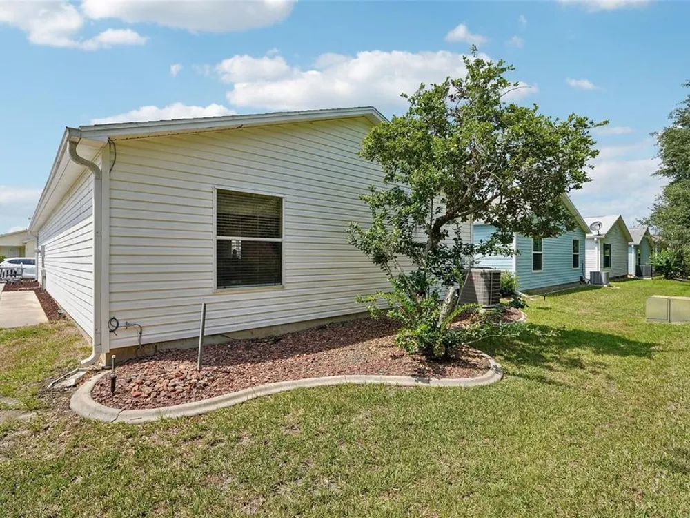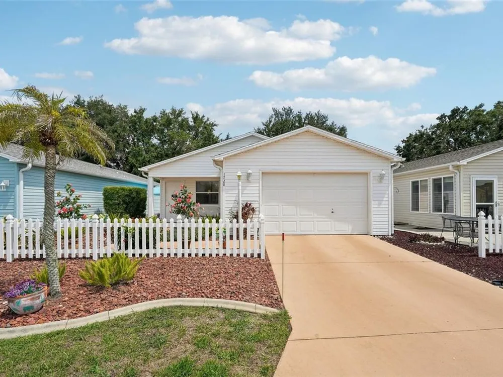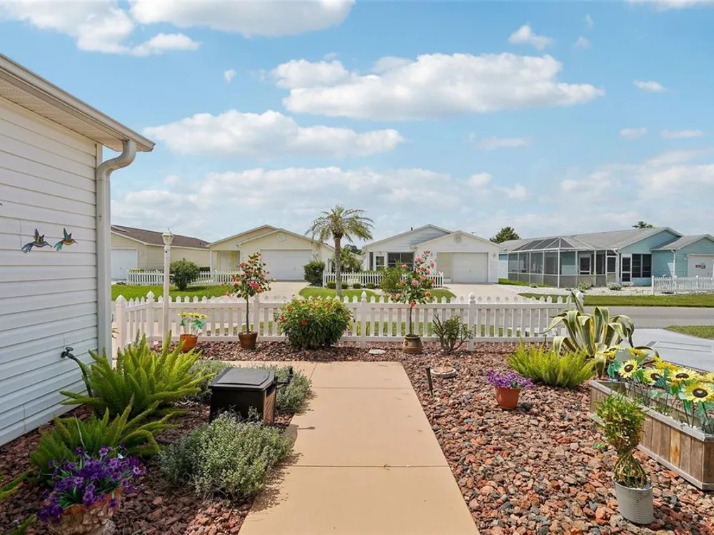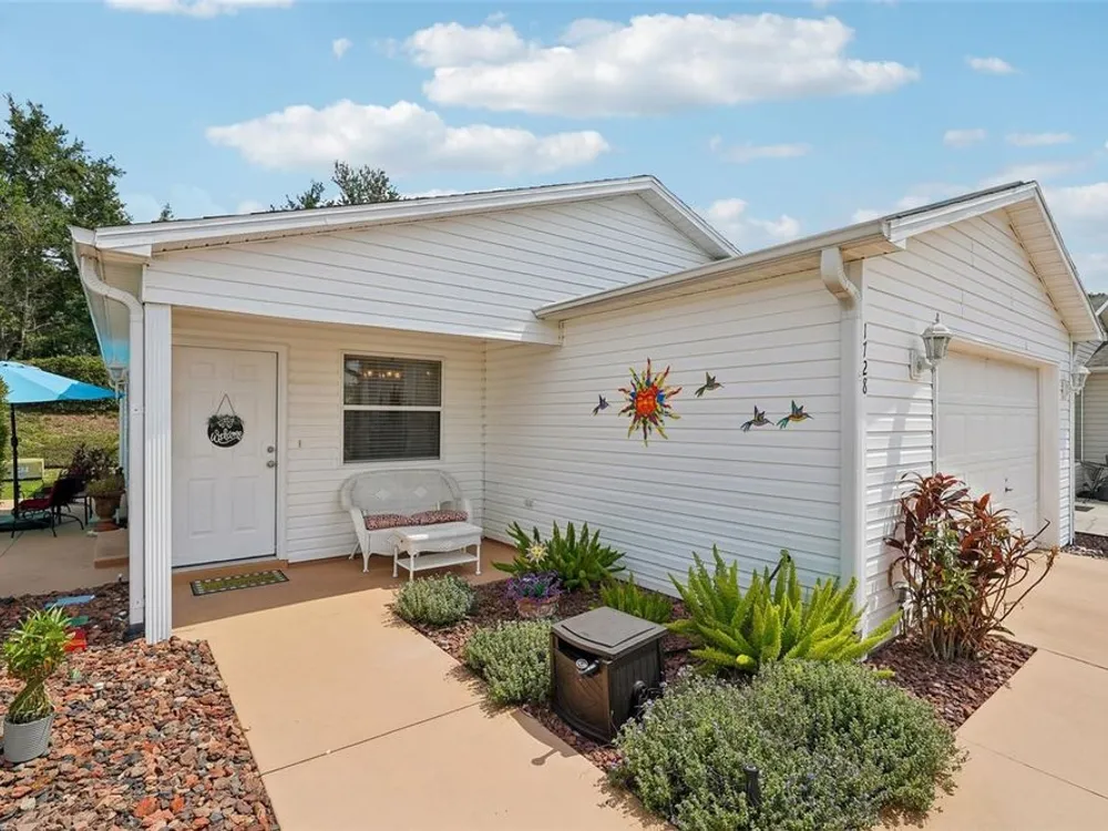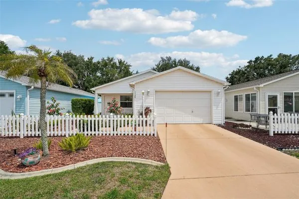 BRAND NEW 2025 TRANE HVAC SYSTEM with 10 year warranty.2015 roof. BOND PAID IN FULL! STUNNING LAMINATE FLOORING throughout entire home! A PRIME LOCATION only minutes from both SUMTER LANDING and SPANISH SPRINGS for entertainment, dining, shopping, and enjoying live music at the Squares. Nearby amenities include Tierra Del Sol Pool and Restaurant along with multiple golf courses! This 2 bed, 2 bath home features an open layout with formal dining, living room, and kitchen with an eating bar. The LARGE KITCHEN boasts extra cabinets, great countertop space, and pantries with sliding drawers for easy access. The LARGE MAIN BEDROOM has a HUGE walk in closet and a bathroom with a modern walk in shower with updated seating. The SECOND BEDROOM has a built-in desk with cabinets overhead, plus a large closet. The adjacent bathroom has a tub and shower combination which is in PRISTINE condition. Sliding glass doors in the living room lead you to a LARGE PATIO which is PRIVATE due to the maintained yard, mature landscaping, and working irrigation system. Yard decorations go with the owner. The GARAGE COMFORTABLY FITS A CAR AND A GOLF CART, has a utility sink, washer and dryer, many built in cabinets for storage and an attic with a pull down ladder. Ideal for investment, with a rental analysis sheet available and property management services offered. THIS UPDATED, CONVENIENTLY LOCATED HOME WON'T LAST LONG SO SCHEDULE YOUR SHOWING TODAY!