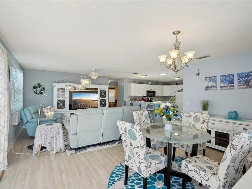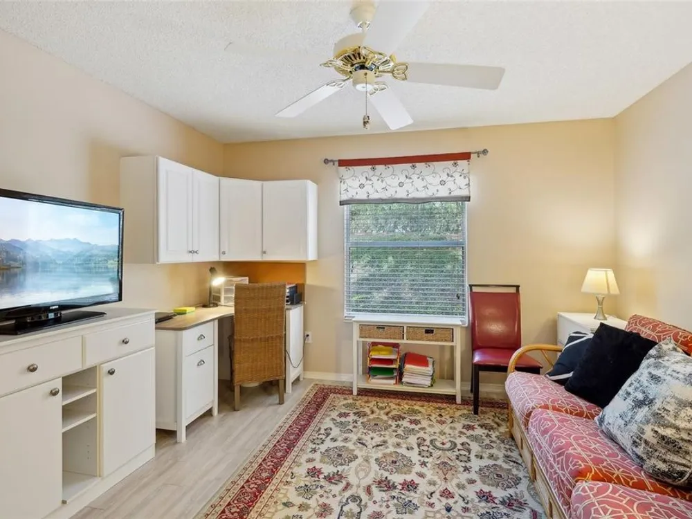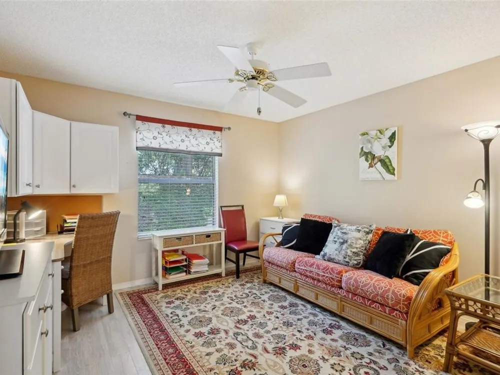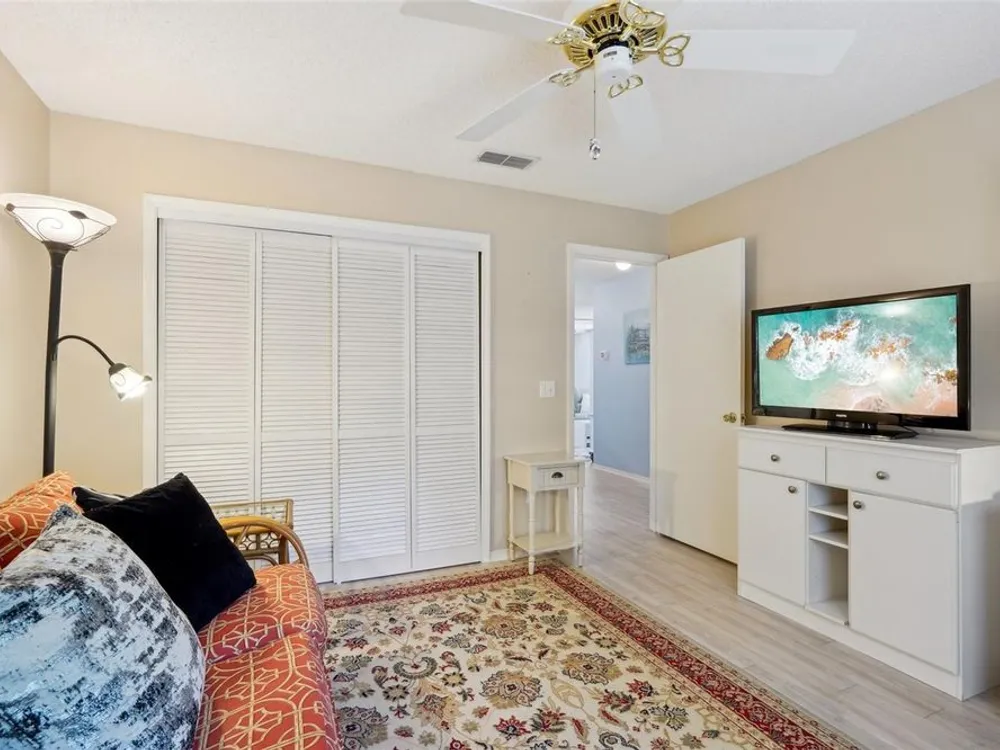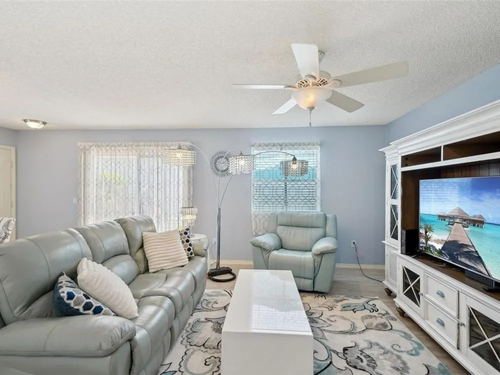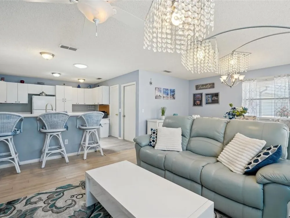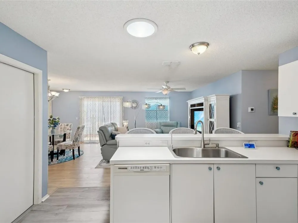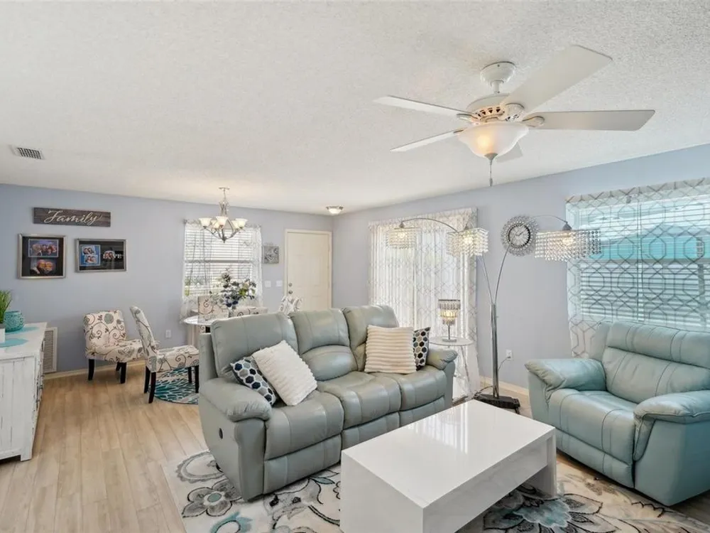 BRAND NEW 2025 TRANE HVAC SYSTEM with 10 year warranty.2015 roof. BOND PAID IN FULL! STUNNING LAMINATE FLOORING throughout entire home! A PRIME LOCATION only minutes from both SUMTER LANDING and SPANISH SPRINGS for entertainment, dining, shopping, and enjoying live music at the Squares. Nearby amenities include Tierra Del Sol Pool and Restaurant along with multiple golf courses! This 2 bed, 2 bath home features an open layout with formal dining, living room, and kitchen with an eating bar. The LARGE KITCHEN boasts extra cabinets, great countertop space, and pantries with sliding drawers for easy access. The LARGE MAIN BEDROOM has a HUGE walk in closet and a bathroom with a modern walk in shower with updated seating. The SECOND BEDROOM has a built-in desk with cabinets overhead, plus a large closet. The adjacent bathroom has a tub and shower combination which is in PRISTINE condition. Sliding glass doors in the living room lead you to a LARGE PATIO which is PRIVATE due to the maintained yard, mature landscaping, and working irrigation system. Yard decorations go with the owner. The GARAGE COMFORTABLY FITS A CAR AND A GOLF CART, has a utility sink, washer and dryer, many built in cabinets for storage and an attic with a pull down ladder. Ideal for investment, with a rental analysis sheet available and property management services offered. THIS UPDATED, CONVENIENTLY LOCATED HOME WON'T LAST LONG SO SCHEDULE YOUR SHOWING TODAY!
