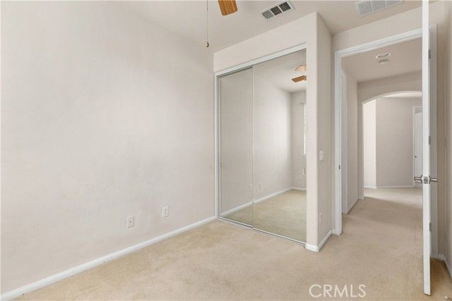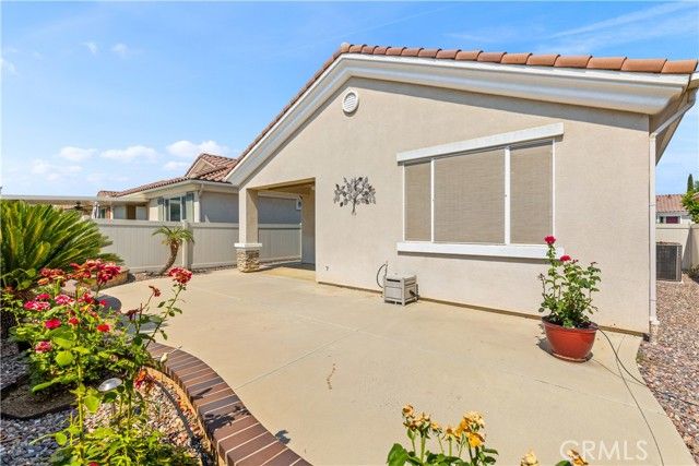 Enjoy the Resort Lifestyle of Del Webbs Active Adult 55+ Community of Solera at Oak Valley Greens. Step into this open-concept layout, that blends function and comfort. This Princess model offers two bedrooms, two baths and a den/office. The open kitchen features Corian counter tops, Oak cabinets with pull outs, a lazy susan, and white appliances. The primary bedroom is spacious in size, and includes a walk-in closet, the primary bath has dual sinks and large shower. The guest bedroom is at the front of the home with second bath off of the hallway and the den/office is located just off the entry. The backyard of this home is a very beautiful and low maintenance retreat, with a spacious patio and easy-care planters. The HOA includes Spectrum Cable TV & Internet. The community is a gated with a maned entrance and 24 hour a day 7 days a week security patrol, includes a Clubhouse, with one of the best fitness centers you have ever seen which includes an indoor walking track, Library, Billiards Room, Tennis and Bocce Ball Courts, multi-purpose room, BBQ area and scenic greenbelt, and many social clubs. Come live the resort lifestyle and enjoy your very own piece of paradise.
