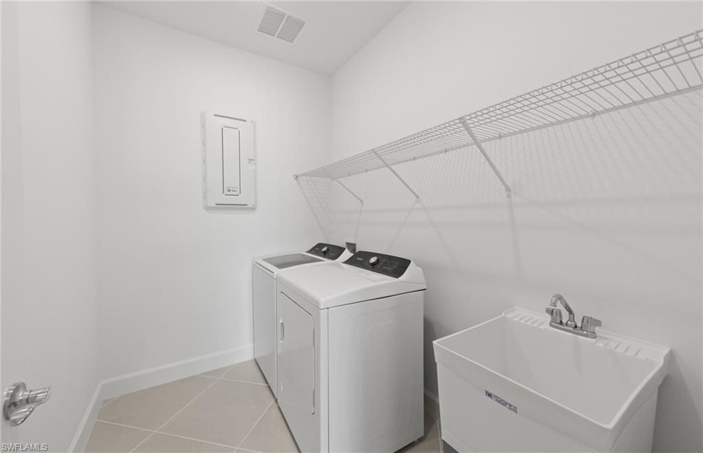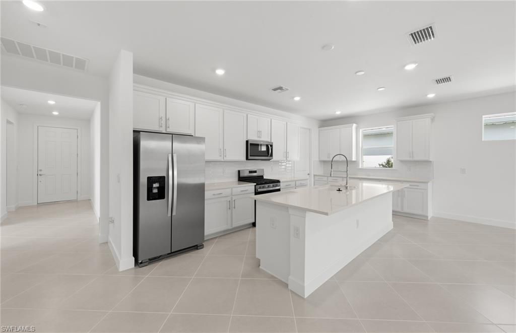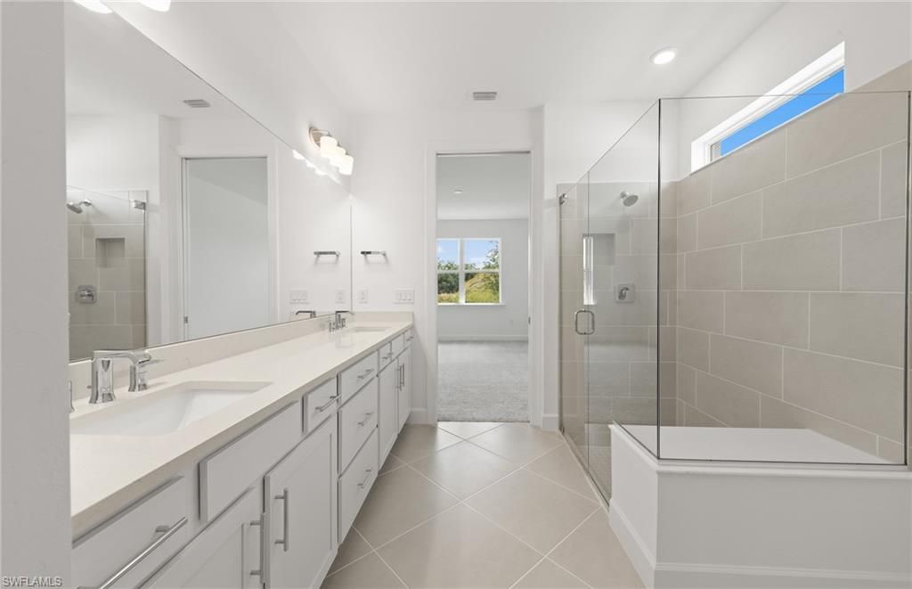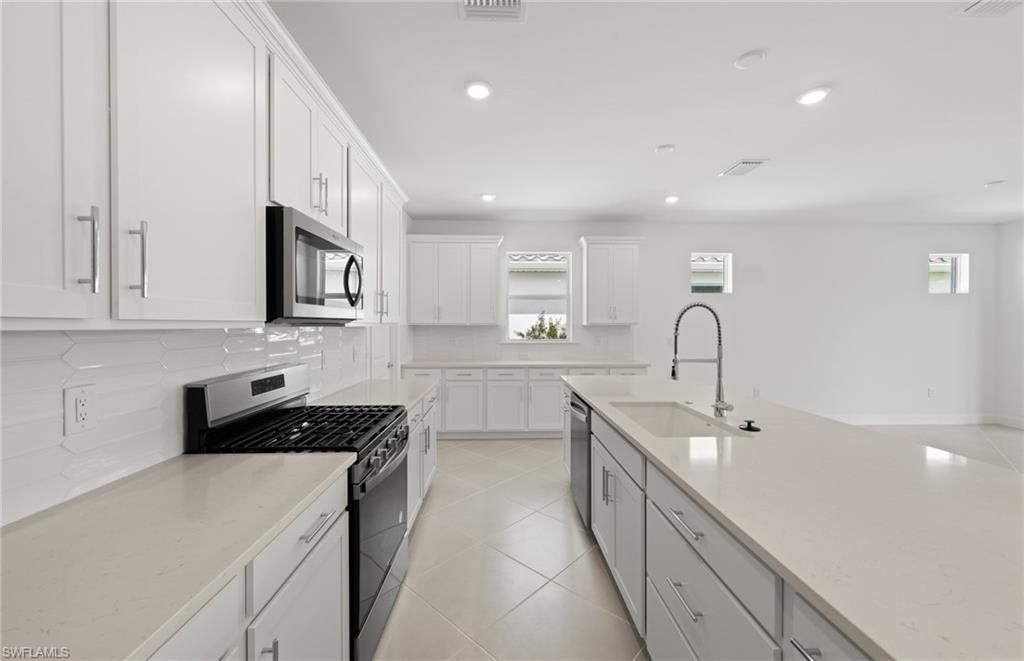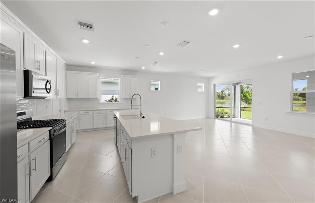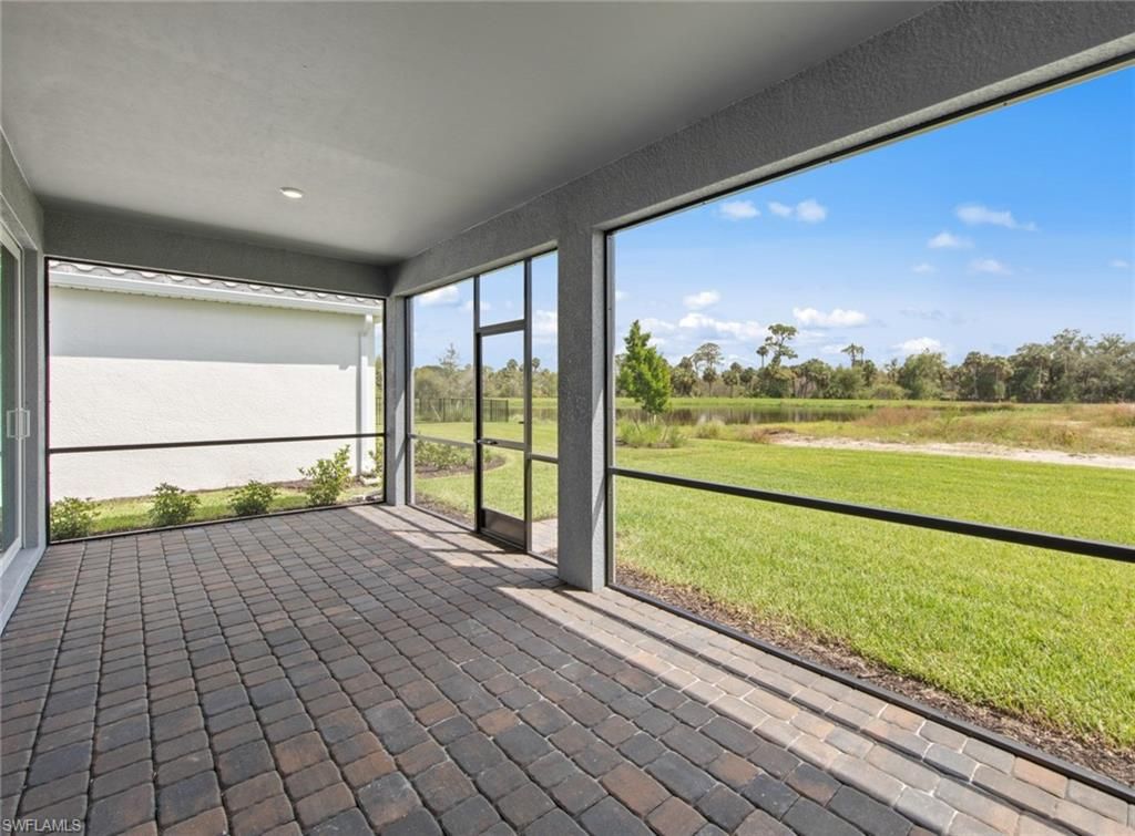 Move to Del Webb Oak Creek! This brand new Palmary home is move-in ready! This Palmary home features 2 bedrooms, 2 baths, den, and 2 car garage. Built-in Stainless steel appliances, white wood cabinets, custom backsplash, quartz countertops and 8' doors throughout, walk-in shower in owners suite and in secondary bath, 22x22 tile flooring in the main living areas, sink at laundry room, smart home package, 4' garage extension, impact glass, screened-in covered lanai with landscape & lake view & more! Oak Creek is Del Webb’s newest 55+ community, situated in North Fort Myers. Homeowners will benefit from it being a natural gas, gated community with vacation-inspired amenities such as a resort style pool and spa, clubs and activities, a restaurant and covered Tiki, and a fulltime lifestyle director. Just beyond the gates homeowners can find shopping and dining, explore Fort Myers River District, relax on the Gulf Coast beaches, and experience new recreational activities while still being only minutes from everyday conveniences.