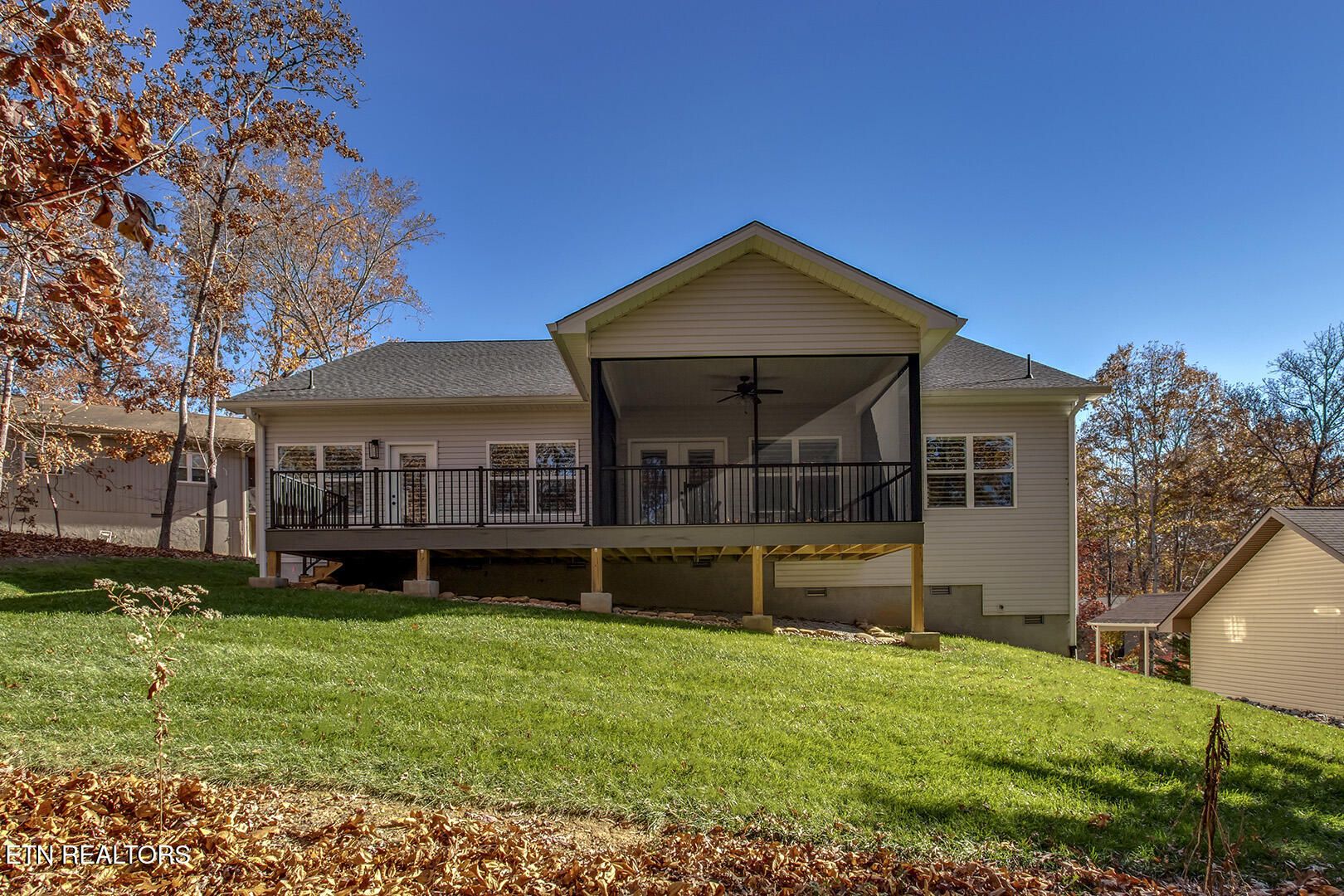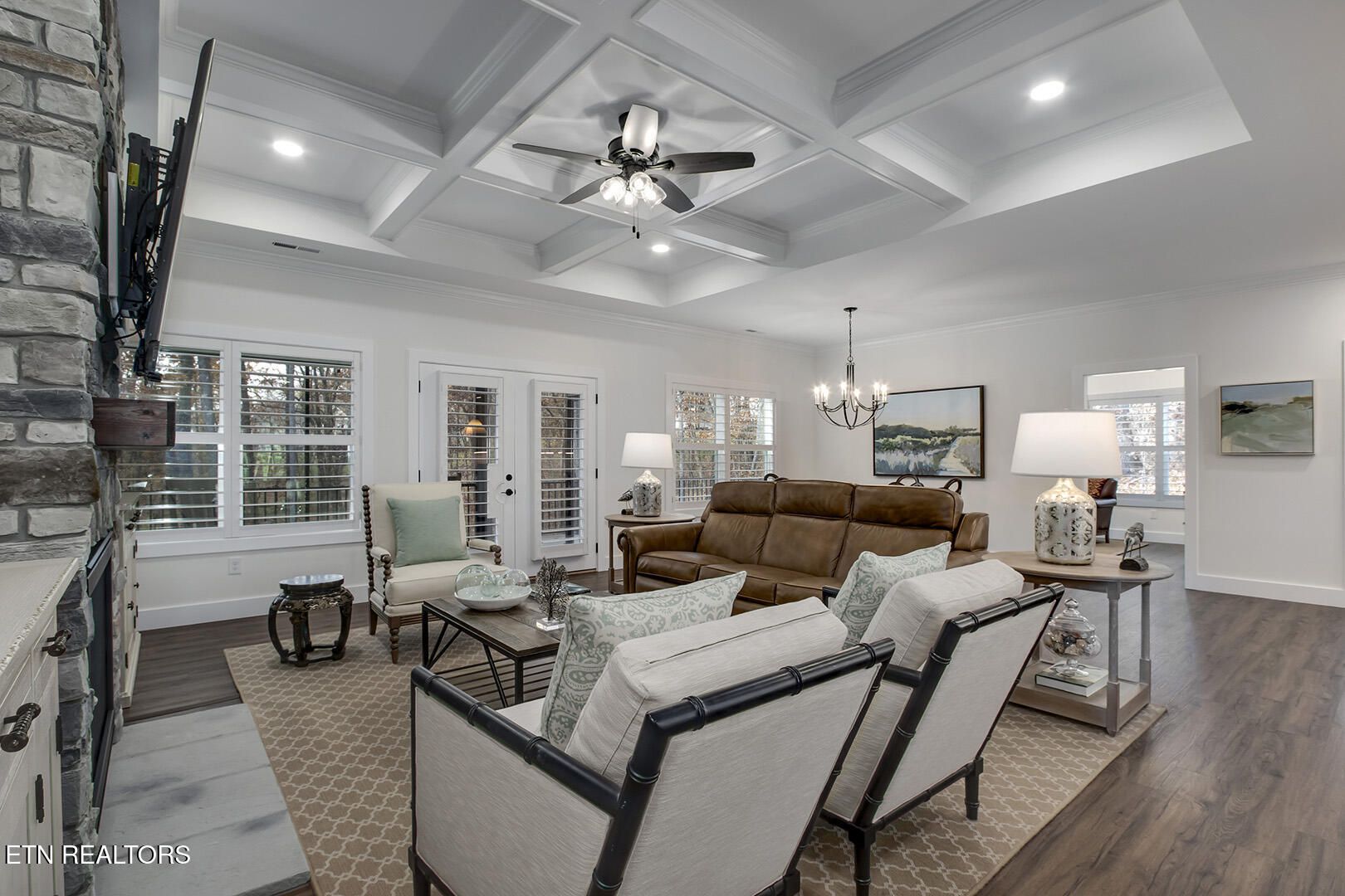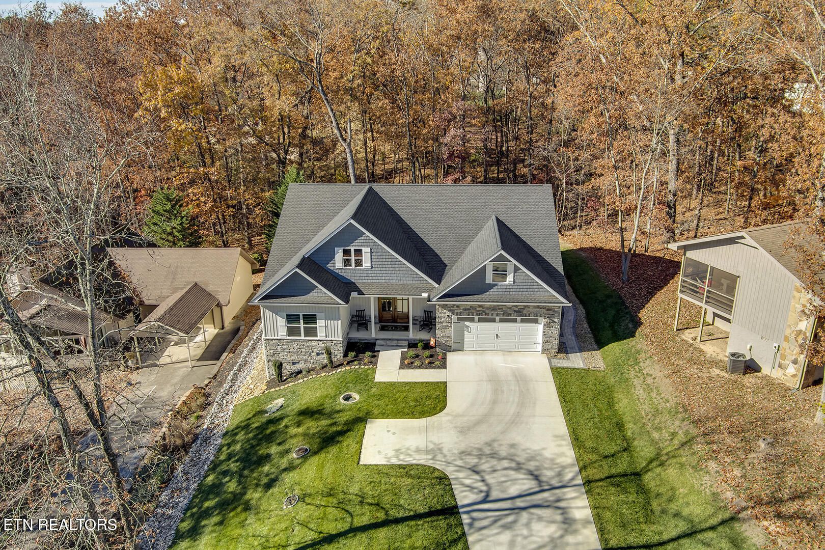 Elegant, Functional, and Private - One Year New with Over $30,000 in Post-Build Upgrades! Perfectly situated in the heart of Tellico Village, this stunning home is just a short walk to the Chota Recreation Center and less than a mile from the Wellness Center. Step through the inviting double-entry covered porch into a bright, open-concept single-level residence with soaring ceilings throughout. The grand foyer flows seamlessly into a spacious living area featuring a coffered ceiling, a striking stone fireplace that adds both warmth and sophistication, and an abundance of windows flooding the space with natural light. The well appointed chef's kitchen is a standout: expansive leathered granite countertops, upgraded stainless-steel appliances, a walk-in pantry, and a large center island ideal for entertaining. Every room is adorned with extraordinary 4.5'' wide polymer plantation shutters featuring hidden tilt rods, luxury vinyl plank flooring, and upgraded designer light fixtures. Retreat to the luxurious owner's suite with its tray ceiling, oversized walk-in closet complete with custom shelving, and a spa-like bath boasting a large walk-in shower with multiple heads. This thoughtful split-bedroom floor plan ensures privacy for guests, with two spacious secondary bedrooms and generous closet space. The centrally located laundry room offers ample storage and countertop space for added convenience. The sunroom is incredibly peaceful, with serene views of the trees and abundant natural light that fills the space with warmth. Outdoor living is equally impressive. Relax or entertain on the screened-in covered porch that opens to an attached open deck, all while enjoying views of abundant wildlife, mature trees, and expansive green space. The oversized two-car garage includes a convenient bump-out perfect for a workshop, golf cart, or motorcycles, plus an upgraded epoxy floor finish and a newly added exterior side door leading to a charming paver walkway. In this exceptional home, dreams really do come true!