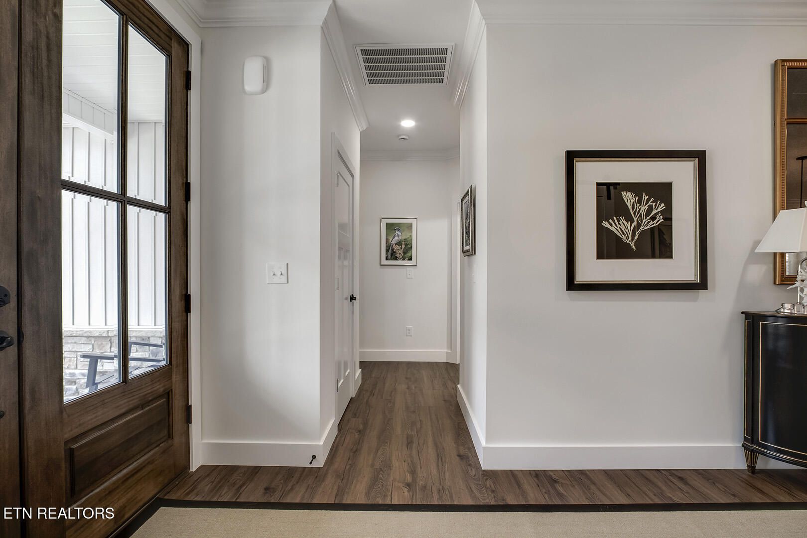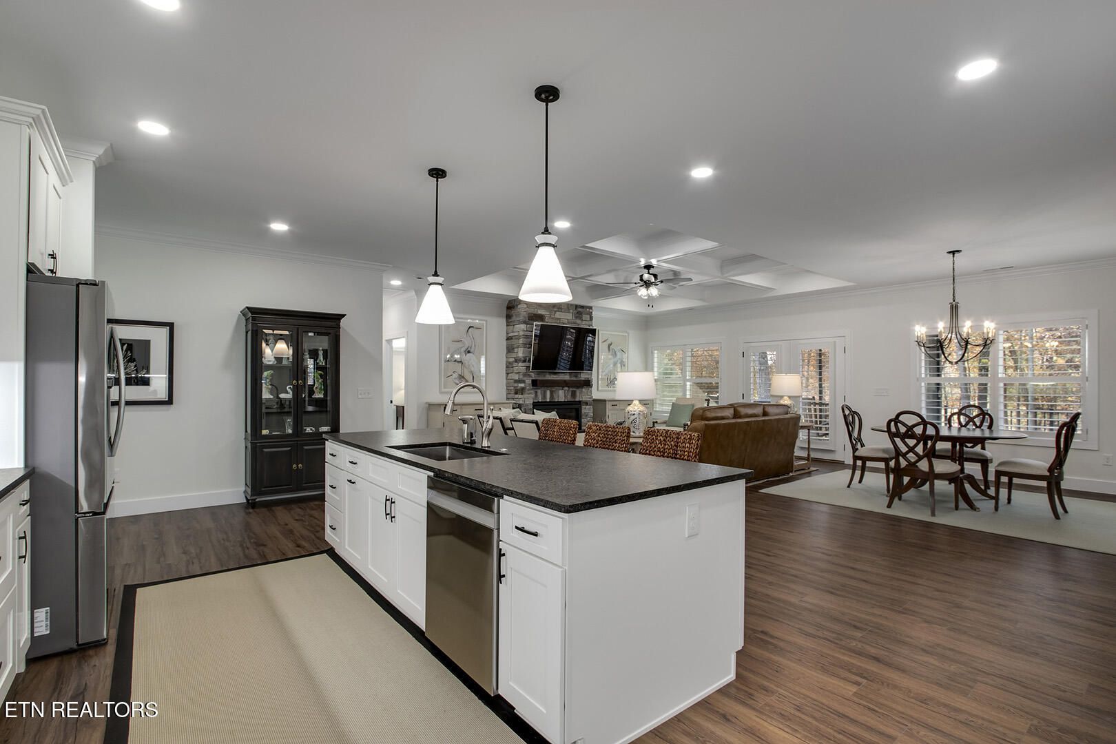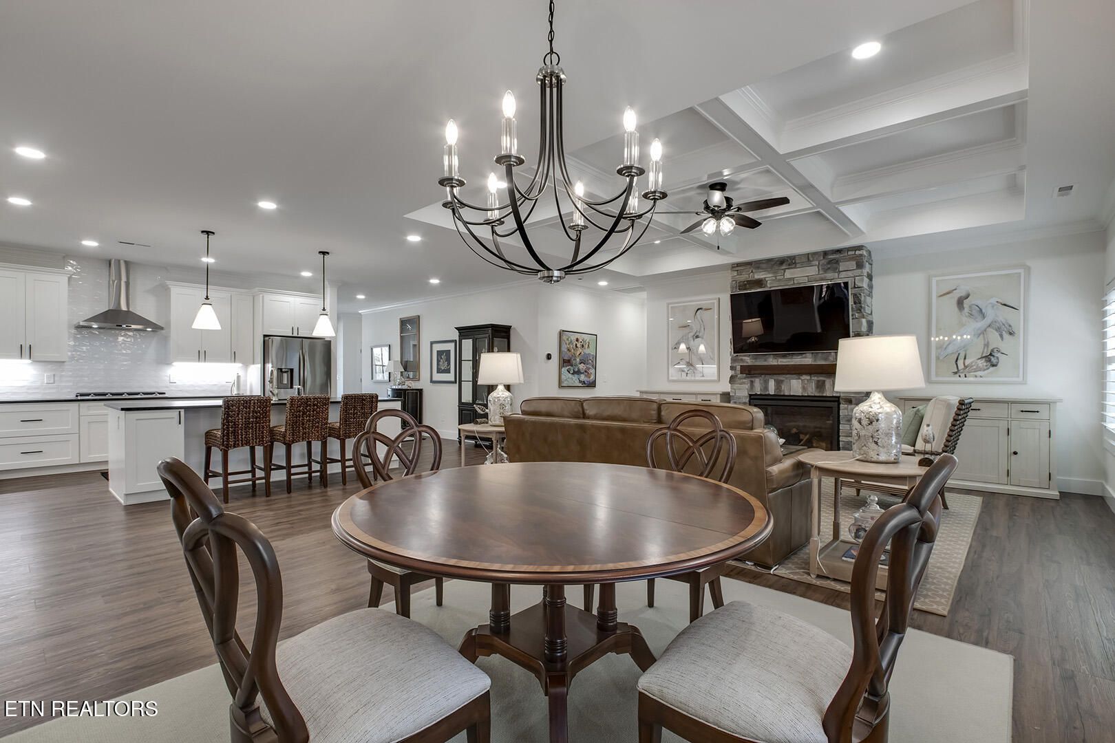Elegant, Functional, and Private - One Year New with Over $30,000 in Post-Build Upgrades! Perfectly situated in the heart of Tellico Village, this stunning home is just a short walk to the Chota Recreation Center and less than a mile from the Wellness Center. Step through the inviting double-entry covered porch into a bright, open-concept single-level residence with soaring ceilings throughout. The grand foyer flows seamlessly into a spacious living area featuring a coffered ceiling, a striking stone fireplace that adds both warmth and sophistication, and an abundance of windows flooding the space with natural light. The well appointed chef's kitchen is a standout: expansive leathered granite countertops, upgraded stainless-steel appliances, a walk-in pantry, and a large center island ideal for entertaining. Every room is adorned with extraordinary 4.5'' wide polymer plantation shutters featuring hidden tilt rods, luxury vinyl plank flooring, and upgraded designer light fixtures. Retreat to the luxurious owner's suite with its tray ceiling, oversized walk-in closet complete with custom shelving, and a spa-like bath boasting a large walk-in shower with multiple heads. This thoughtful split-bedroom floor plan ensures privacy for guests, with two spacious secondary bedrooms and generous closet space. The centrally located laundry room offers ample storage and countertop space for added convenience. The sunroom is incredibly peaceful, with serene views of the trees and abundant natural light that fills the space with warmth. Outdoor living is equally impressive. Relax or entertain on the screened-in covered porch that opens to an attached open deck, all while enjoying views of abundant wildlife, mature trees, and expansive green space. The oversized two-car garage includes a convenient bump-out perfect for a workshop, golf cart, or motorcycles, plus an upgraded epoxy floor finish and a newly added exterior side door leading to a charming paver walkway. In this exceptional home, dreams really do come true!