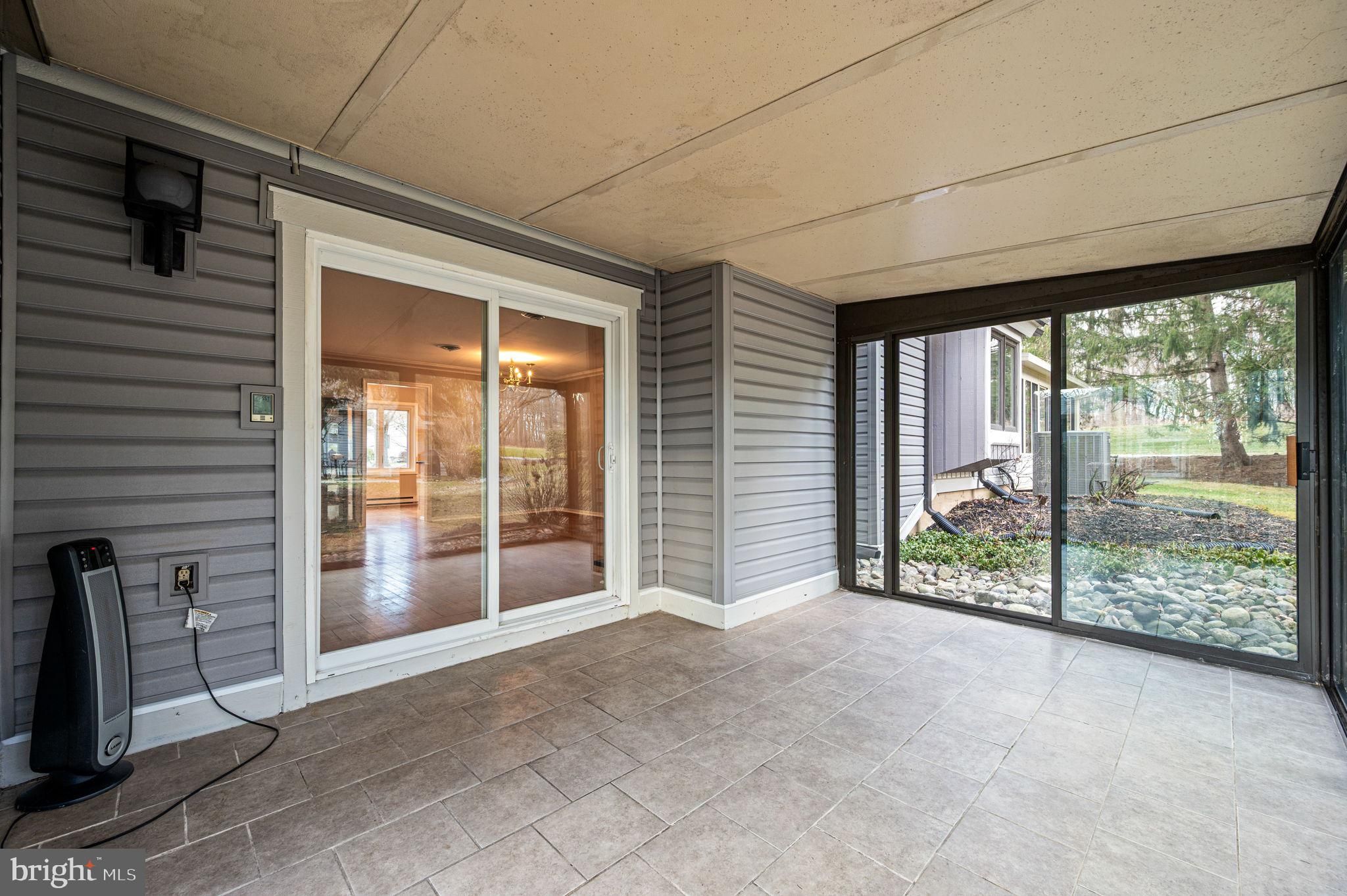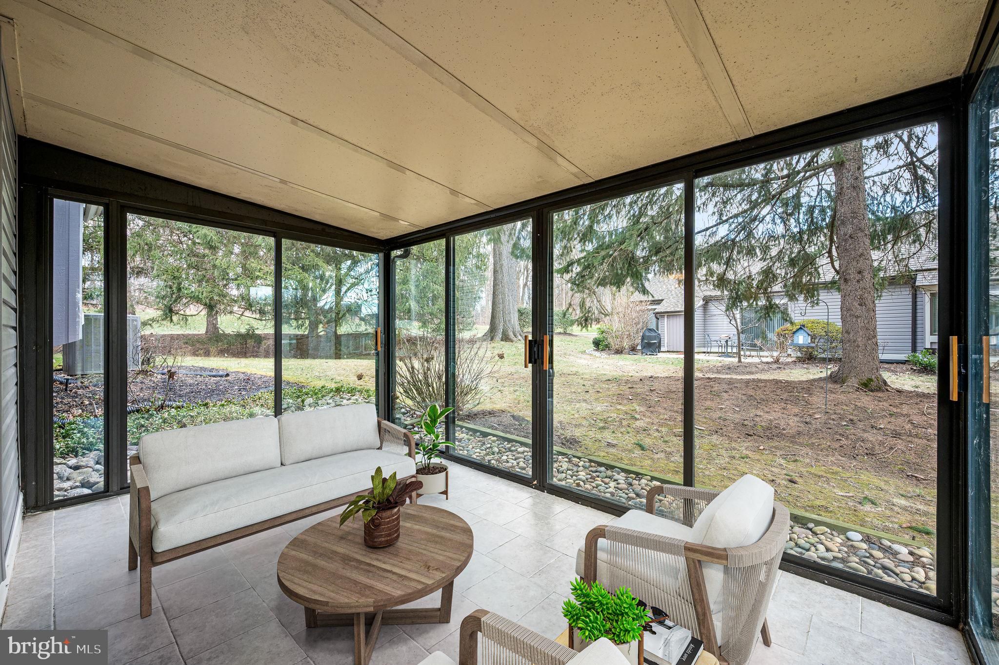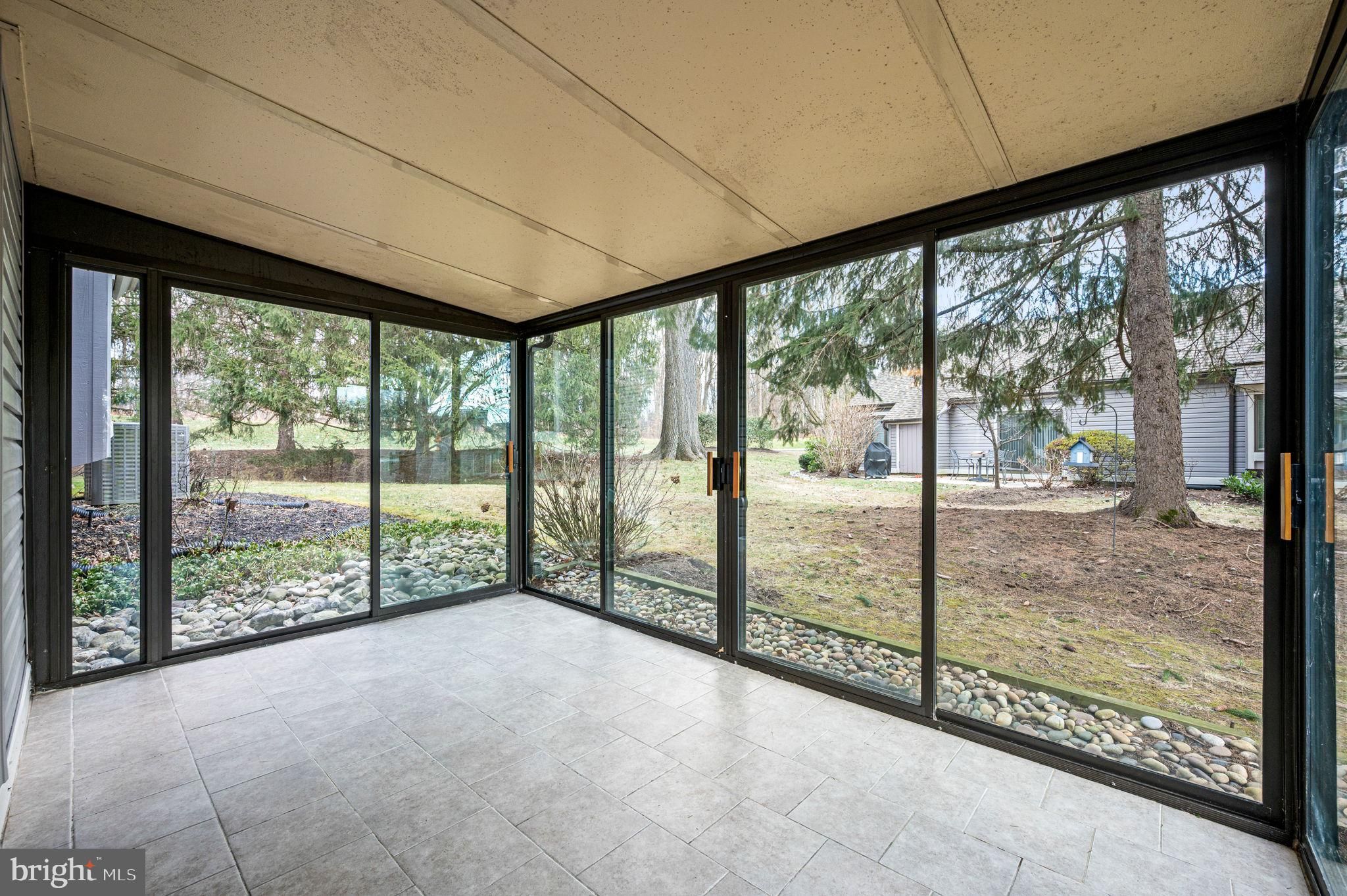 Enjoy relaxed, one-level living in this beautifully designed Easttown model, a two-bedroom, two-bath townhome, tucked away in a quiet courtyard setting in Brighton Village at Hershey’s Mill. This home is located just off the 15th green of the community’s 18-hole golf course. Freshly painted throughout and move-in ready, this home combines comfort, convenience, and an active lifestyle. The kitchen features granite countertops, an attractive backsplash, and flows seamlessly into the dining and living areas, accented by crown molding in the living and dining rooms. Hardwood floors run throughout the home except in the bedrooms, which feature new carpeting. The living room offers a welcoming wood burning fireplace, perfect for cozy evenings. Sliding glass doors provide access to a large three-season room with ceramic tile flooring, an ideal space to relax, entertain, or enjoy peaceful views year-round. The spacious primary suite includes a dressing area, two closets and an updated shower. Individual heating units in each room allow for personalized comfort. Storage is abundant with pull-down stairs to the attic, storage shed adjacent to the three-season room and additional space in the carport. A one-car carport provides a convenient, step-free walk to the front door. Living at Hershey’s Mill means enjoying a resort-style lifestyle with golf, scenic walking trails, tennis and pickleball courts, a pool, clubhouse dining, and a full calendar of social activities—all within a gated community just minutes from downtown West Chester’s shops, restaurants, and cultural attractions. The Hershey's Mill golf club is available with an added membership fee. Public water, public sewer. New interior security systems and sidewalks to be installed beginning in 2026. New siding and roofs were completed in 2024. Come and make this charming home your home.
