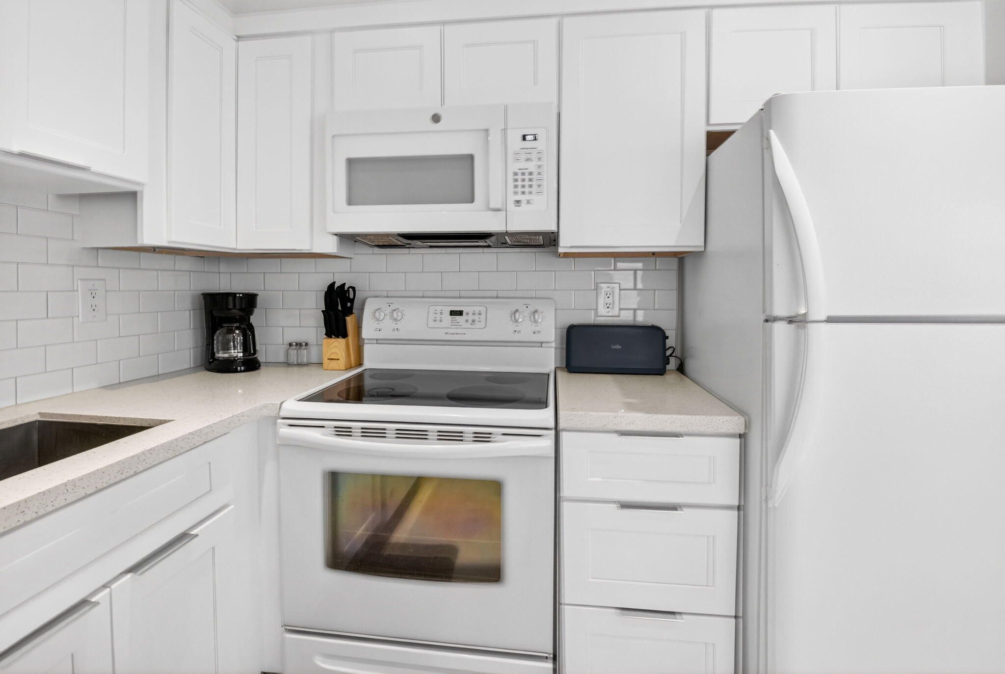 Welcome to Delray Beach! This move-in ready Kings Point condo is fully renovated and comes fully furnished with stylish décor, essential houseware, and immaculate tile throughout. The updated interior includes a laundry room with new washer and dryer, plus an enclosed balcony with tile flooring, ceiling fans, and garden views. The bright kitchen features shaker-style soft close cabinetry, quartzite countertops, a farmhouse undermount sink, and energy efficient lighting, flowing into a dining area with windows allowing light to stream through. The spacious living room offers a sectional sleeper sofa, large flat screen TV, storage coffee table and LED ceiling fan. The home includes two full bathrooms with modern vanities, LED anti-fog mirrors, and a walk- in shower with rainfall showerhead. Both bedrooms are furnished with queen size beds, contemporary décor, spacious closets, and well appointed window treatments. Enjoy resort-style living with beautifully landscaped grounds, an 18-hole golf course (no membership required), indoor and outdoor resort style pools, pickleball and tennis courts, fitness centers, and much more. Kings Point is ideally located just minutes from downtown Delray Beach, shopping, dining, and magnificent beaches. Only minutes from I-95 and the Turnpike.