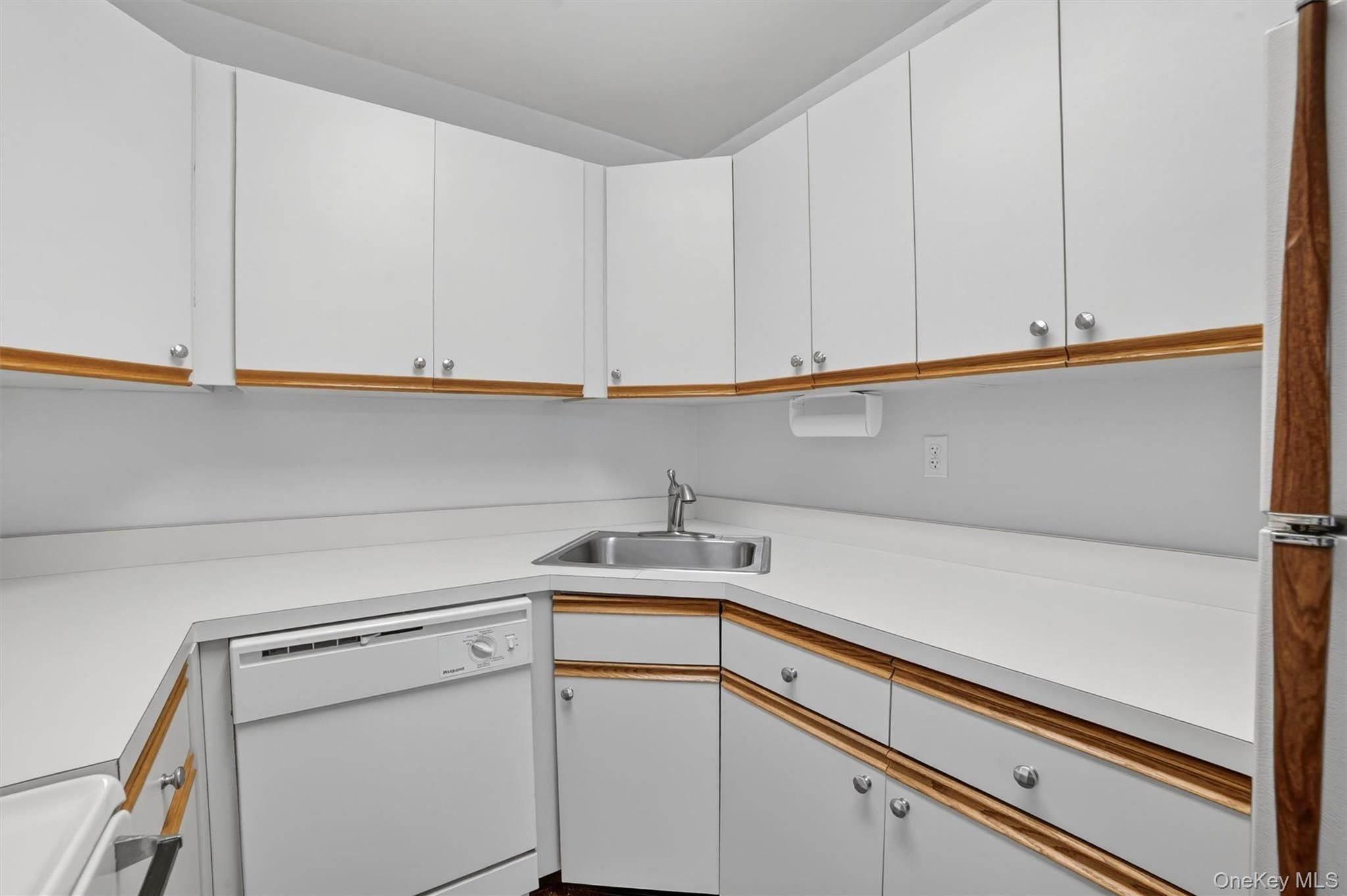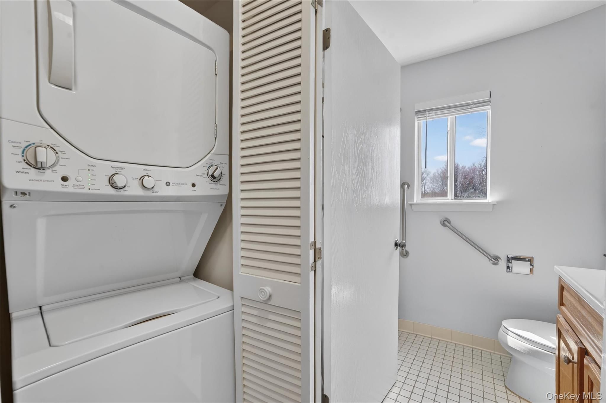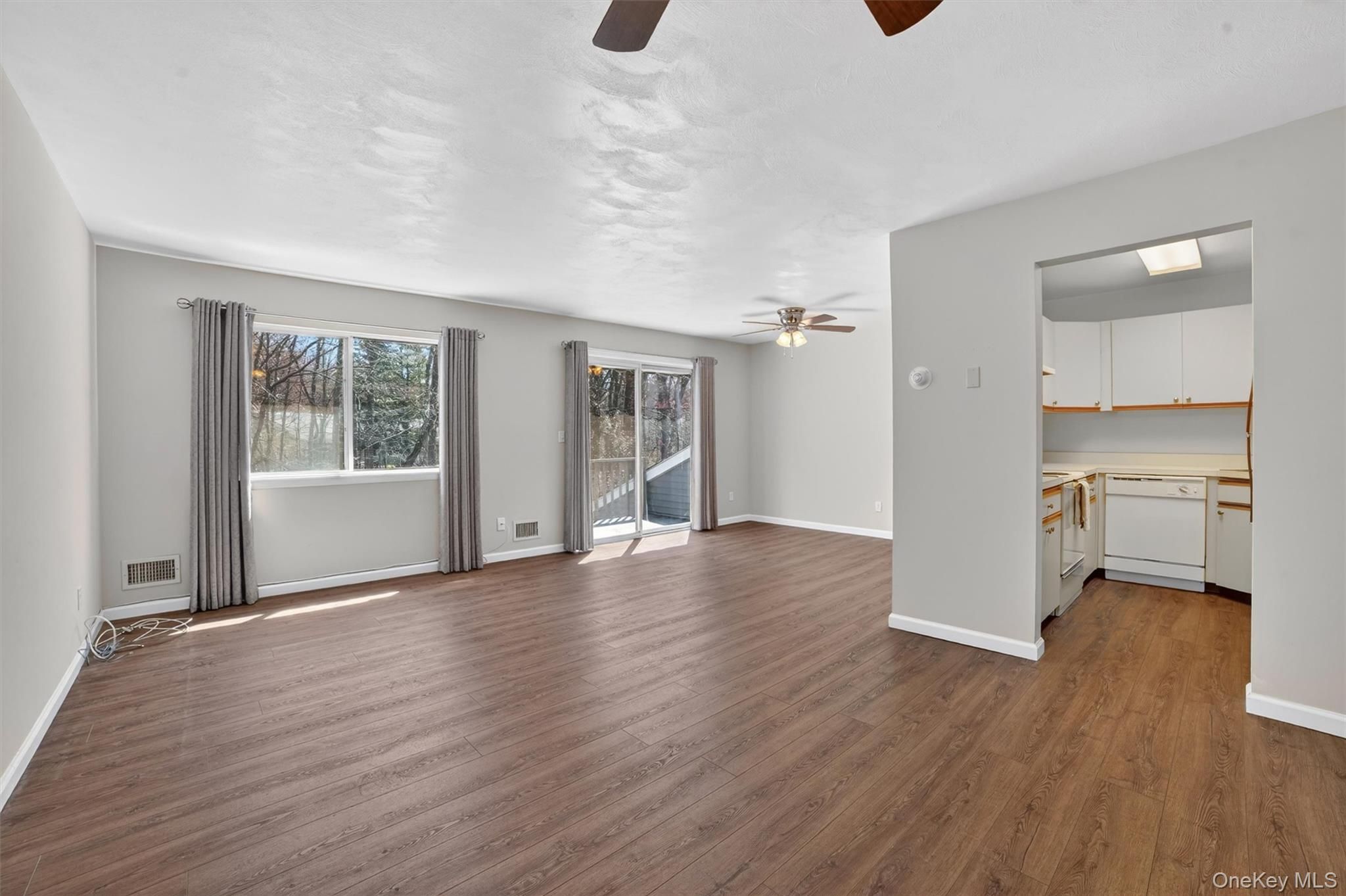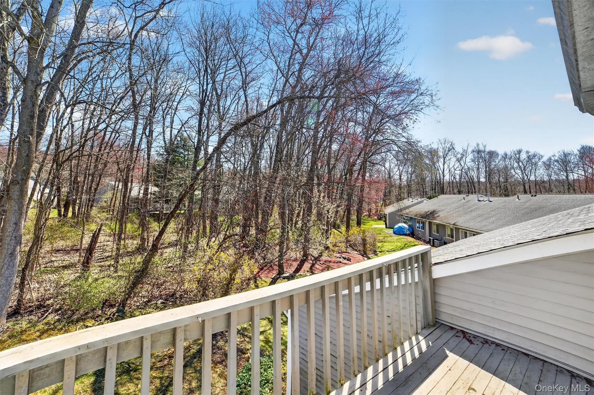 Welcome home to Jefferson Village, a highly desirable active 55+ community in Yorktown Heights, located in beautiful Westchester County. This upper-level end unit in sought-after Village XI offers privacy, natural light, and a peaceful setting. Featuring an open-concept floor plan, the spacious living and dining areas flow seamlessly and open through sliding glass doors to a private balcony overlooking tranquil woodlands perfect for relaxing or entertaining. The expansive bedroom boasts generous closet space and brand-new carpeting. The updated bathroom includes tiled finishes, a window for natural light, and grab bars for added convenience. A washer and dryer are tucked neatly into the hallway linen closet, along with additional storage and two guest closets. The home is enhanced with luxury vinyl plank cork-backed flooring throughout the foyer, hallways, kitchen, dining, and living areas. The kitchen offers ample cabinetry and counter space, and ceiling fans with lighting add comfort to the living room, dining room, and bedroom.Enjoy a beautifully updated clubhouse with all amenities, inground pool, tennis courts, bocce, community garden, fully stocked library, newly renovated fitness room, art classes, pickle ball, and so much more. Organized outings are an extra perk. Free shuttle service to shopping. Within walking distance to the Jefferson Valley Mall, and minutes to the Taconic Parkway, restaurants, and golf course. Move right in and enjoy the easy living this community has to offer. Don't miss this terrific opportunity for carefree living. Gas heat, hot water, and basic cable included in HOA of $348/month