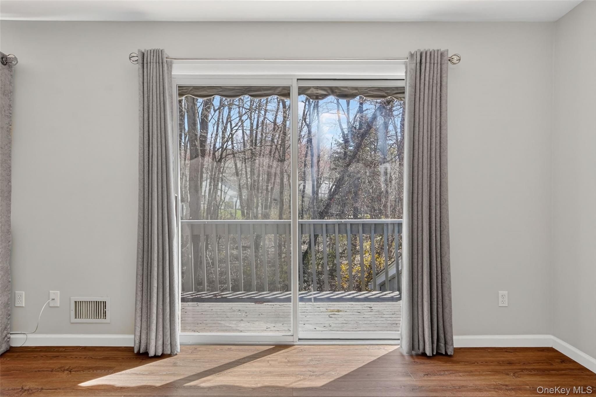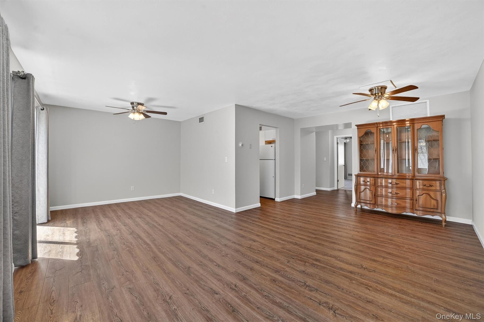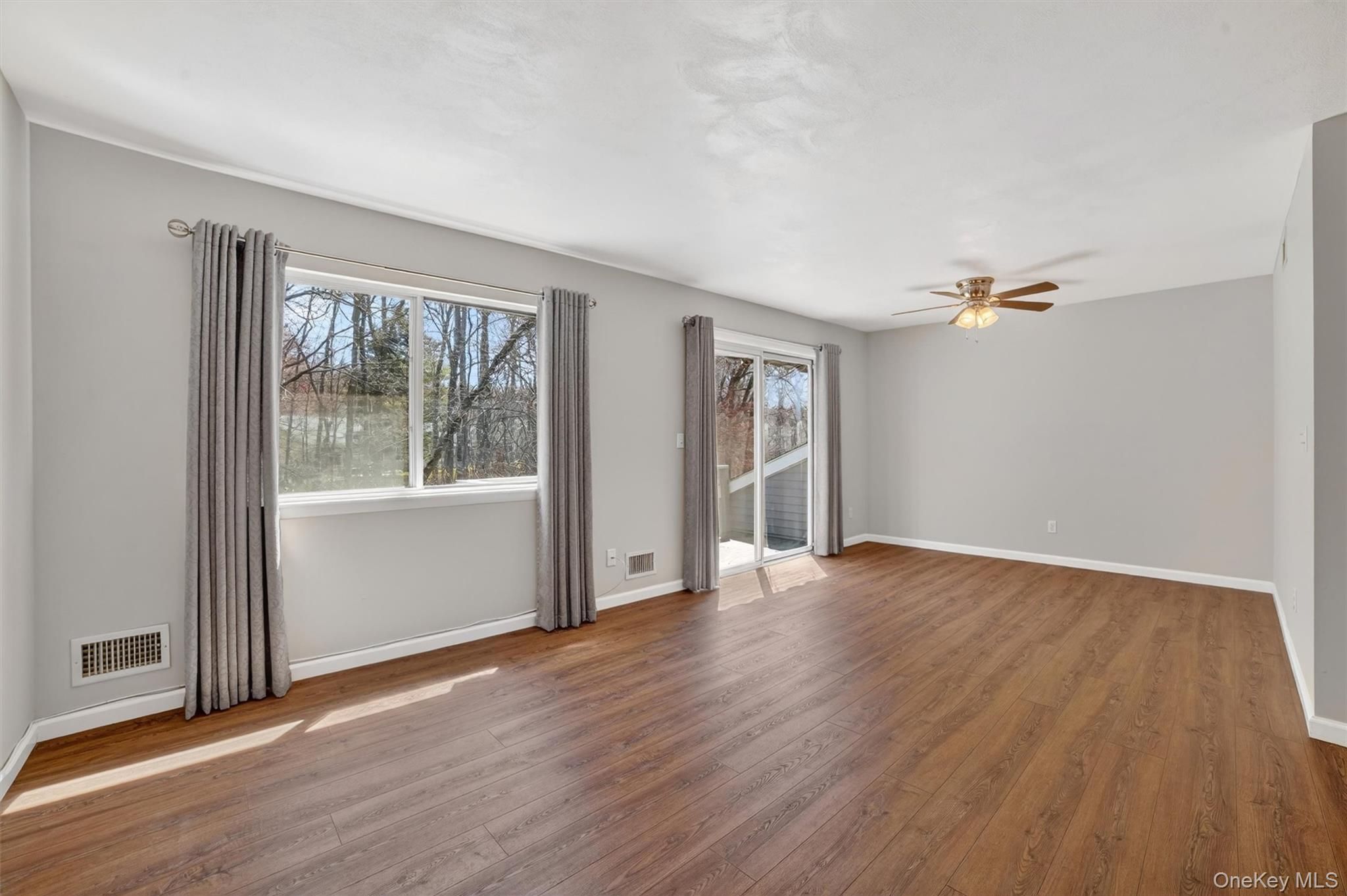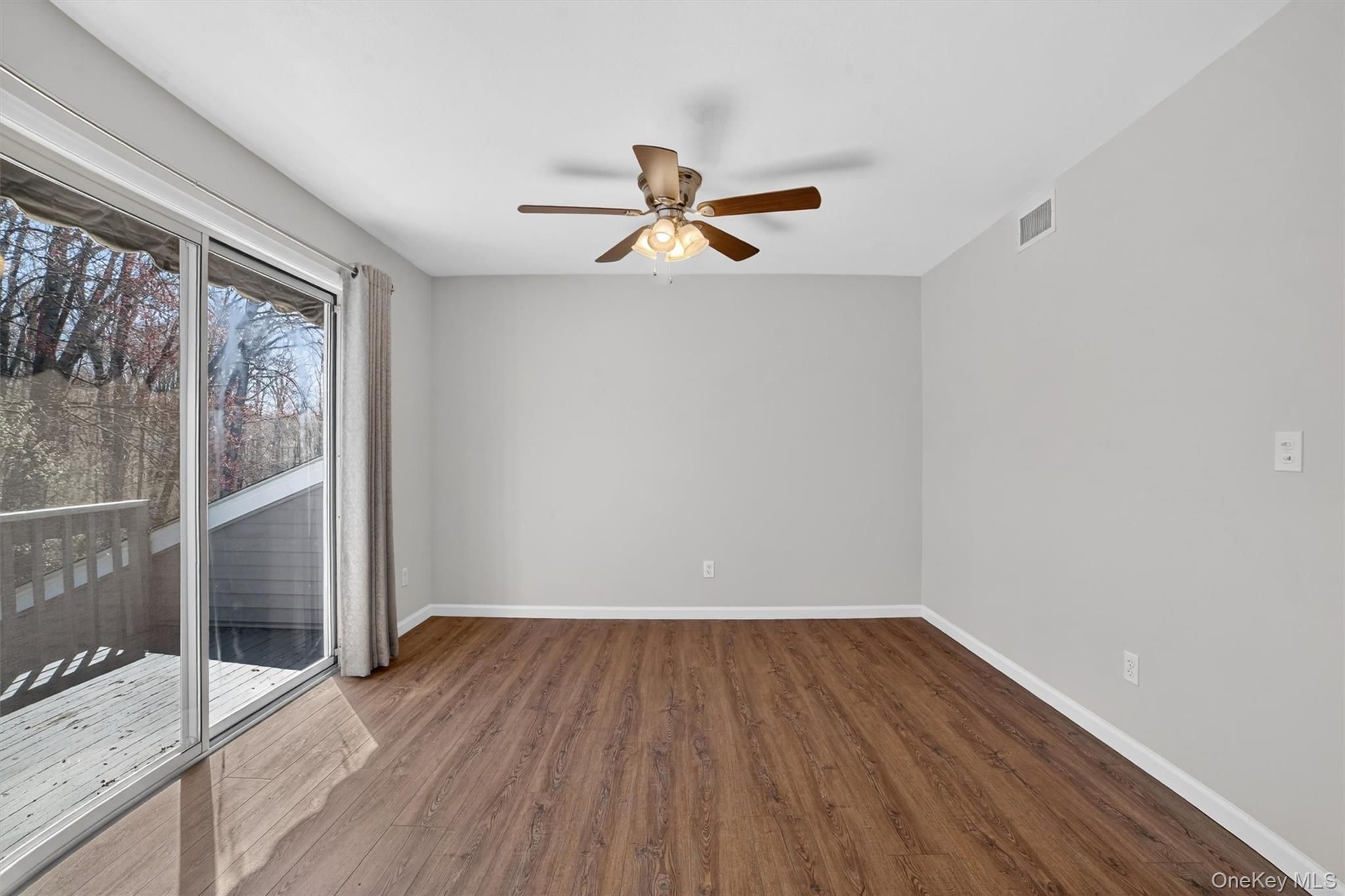 Welcome home to Jefferson Village, a highly desirable active 55+ community in Yorktown Heights, located in beautiful Westchester County. This upper-level end unit in sought-after Village XI offers privacy, natural light, and a peaceful setting. Featuring an open-concept floor plan, the spacious living and dining areas flow seamlessly and open through sliding glass doors to a private balcony overlooking tranquil woodlands perfect for relaxing or entertaining. The expansive bedroom boasts generous closet space and brand-new carpeting. The updated bathroom includes tiled finishes, a window for natural light, and grab bars for added convenience. A washer and dryer are tucked neatly into the hallway linen closet, along with additional storage and two guest closets. The home is enhanced with luxury vinyl plank cork-backed flooring throughout the foyer, hallways, kitchen, dining, and living areas. The kitchen offers ample cabinetry and counter space, and ceiling fans with lighting add comfort to the living room, dining room, and bedroom.Enjoy a beautifully updated clubhouse with all amenities, inground pool, tennis courts, bocce, community garden, fully stocked library, newly renovated fitness room, art classes, pickle ball, and so much more. Organized outings are an extra perk. Free shuttle service to shopping. Within walking distance to the Jefferson Valley Mall, and minutes to the Taconic Parkway, restaurants, and golf course. Move right in and enjoy the easy living this community has to offer. Don't miss this terrific opportunity for carefree living. Gas heat, hot water, and basic cable included in HOA of $348/month