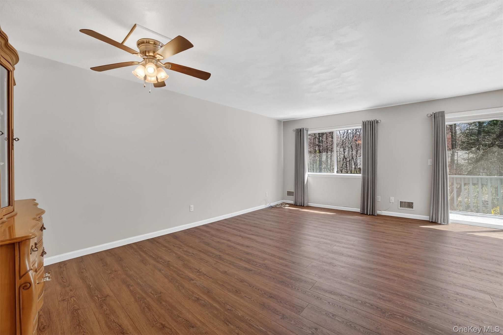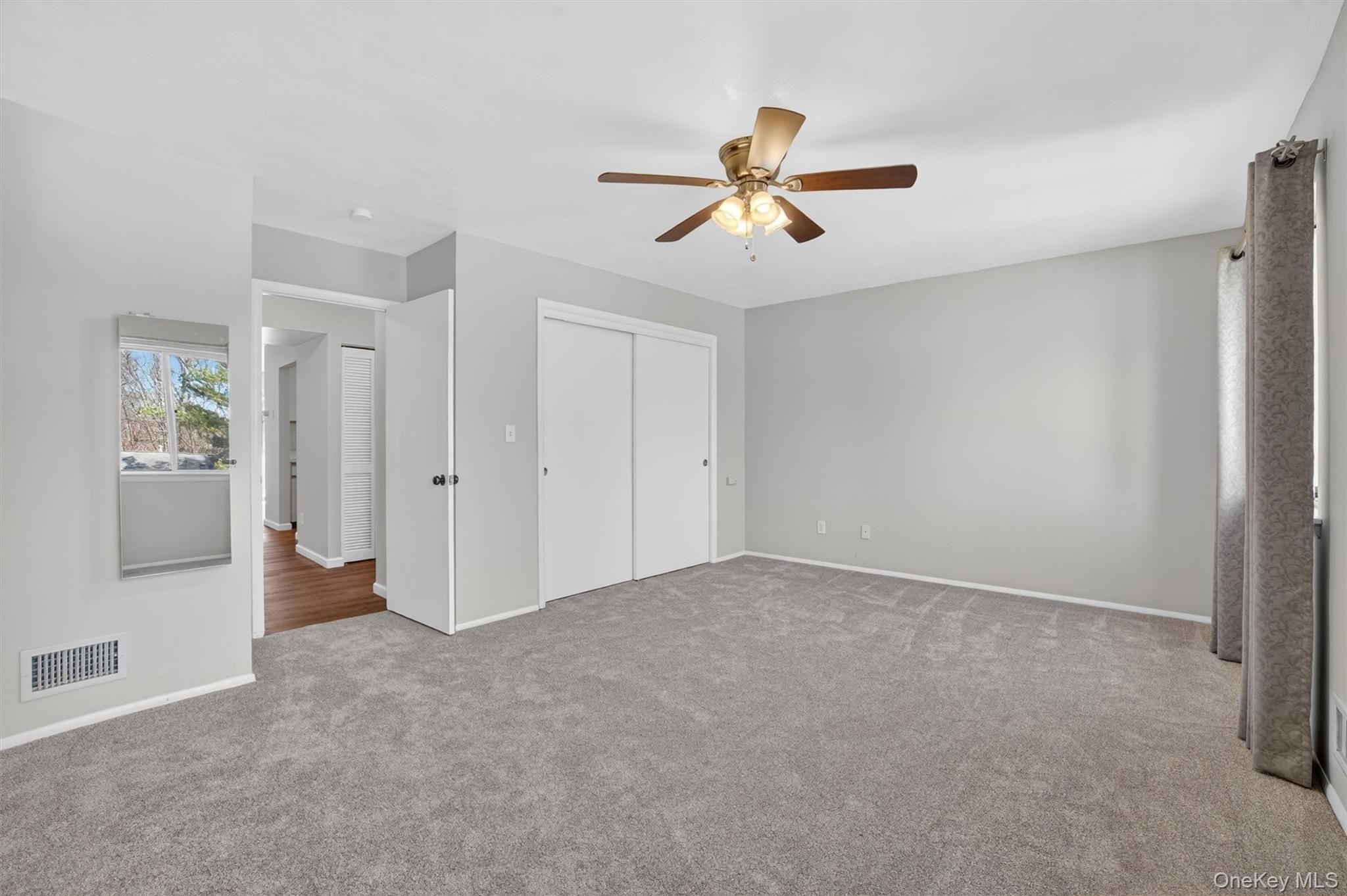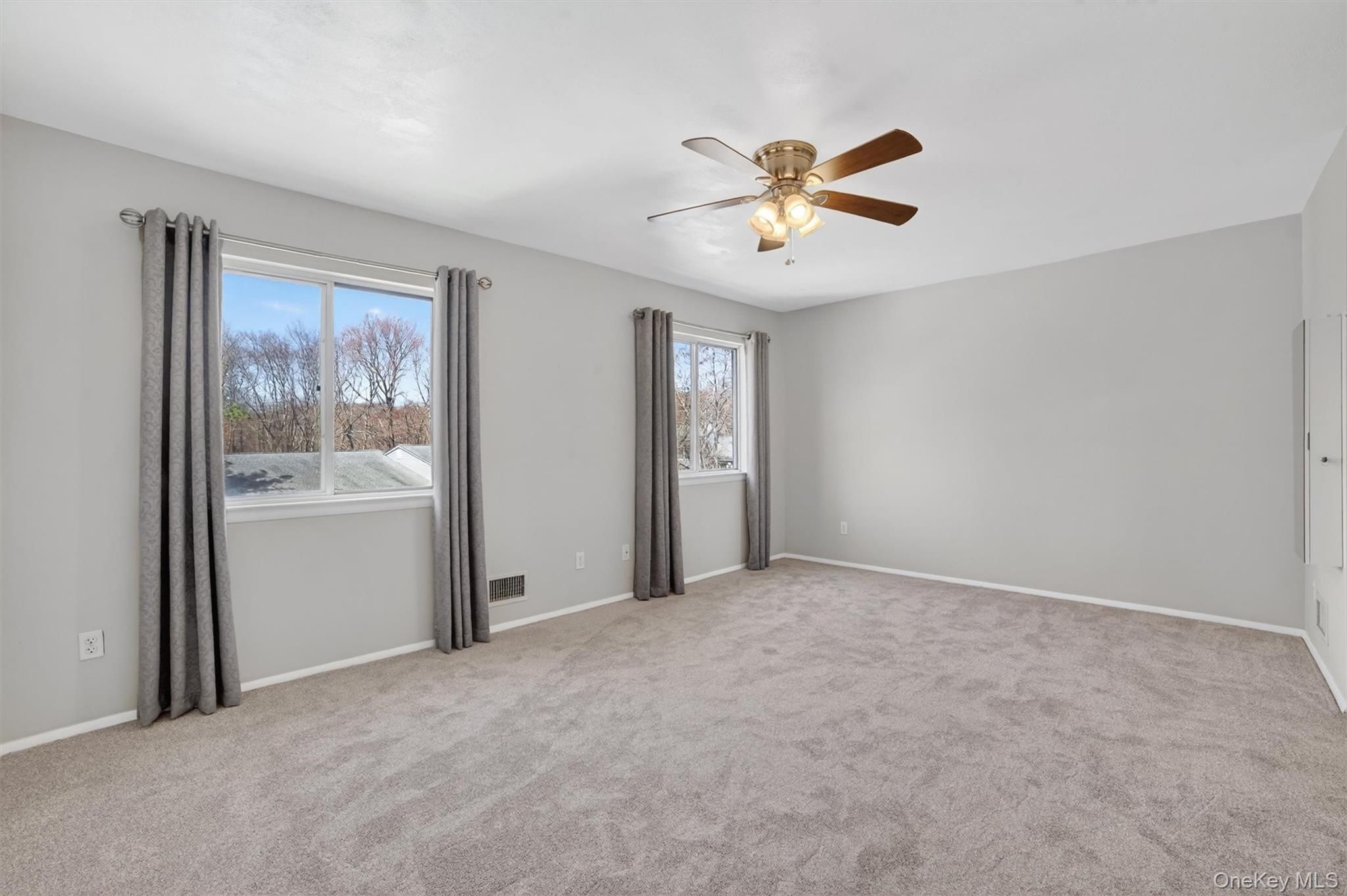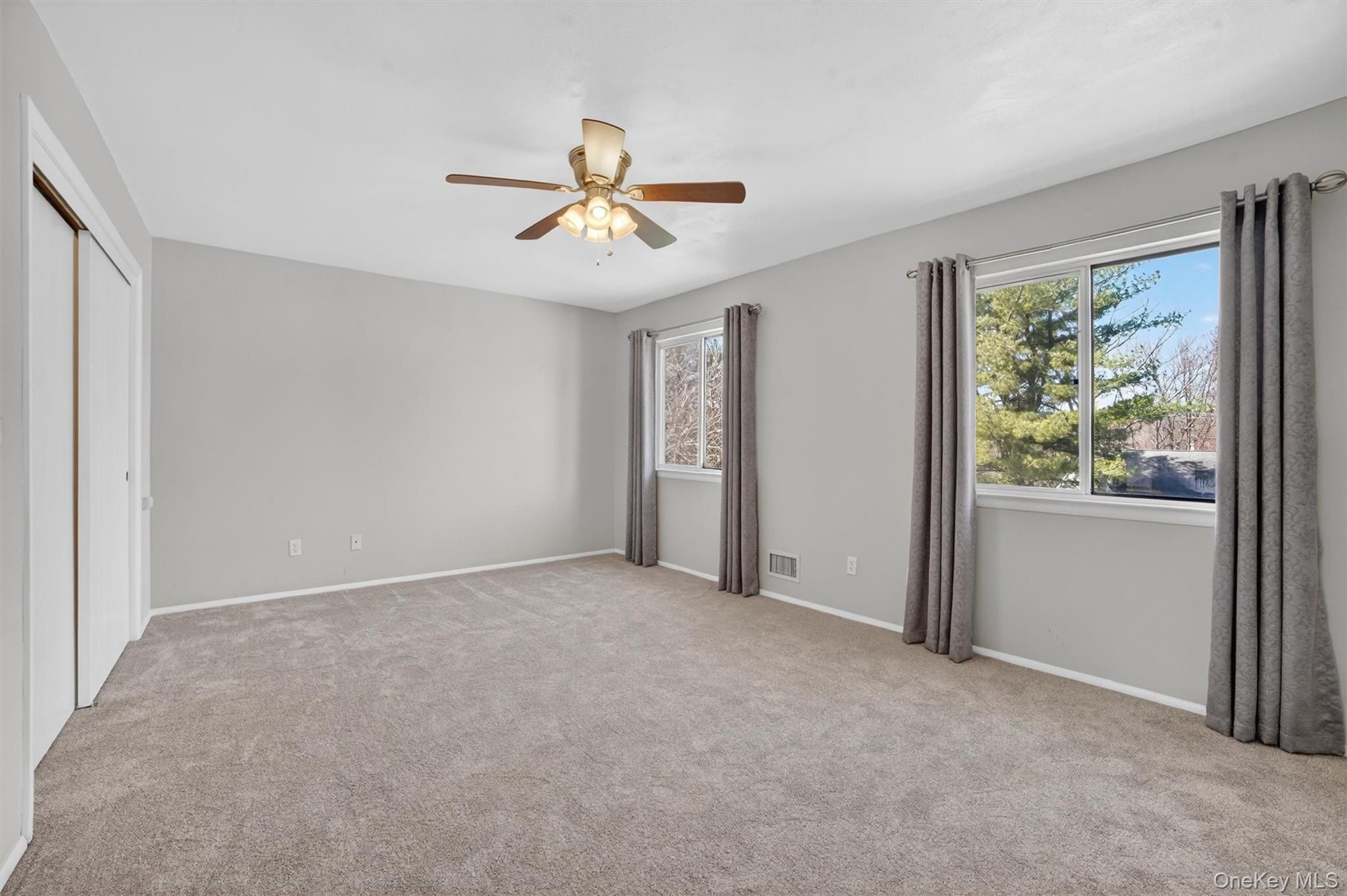 Welcome home to Jefferson Village, a highly desirable active 55+ community in Yorktown Heights, located in beautiful Westchester County. This upper-level end unit in sought-after Village XI offers privacy, natural light, and a peaceful setting. Featuring an open-concept floor plan, the spacious living and dining areas flow seamlessly and open through sliding glass doors to a private balcony overlooking tranquil woodlands perfect for relaxing or entertaining. The expansive bedroom boasts generous closet space and brand-new carpeting. The updated bathroom includes tiled finishes, a window for natural light, and grab bars for added convenience. A washer and dryer are tucked neatly into the hallway linen closet, along with additional storage and two guest closets. The home is enhanced with luxury vinyl plank cork-backed flooring throughout the foyer, hallways, kitchen, dining, and living areas. The kitchen offers ample cabinetry and counter space, and ceiling fans with lighting add comfort to the living room, dining room, and bedroom.Enjoy a beautifully updated clubhouse with all amenities, inground pool, tennis courts, bocce, community garden, fully stocked library, newly renovated fitness room, art classes, pickle ball, and so much more. Organized outings are an extra perk. Free shuttle service to shopping. Within walking distance to the Jefferson Valley Mall, and minutes to the Taconic Parkway, restaurants, and golf course. Move right in and enjoy the easy living this community has to offer. Don't miss this terrific opportunity for carefree living. Gas heat, hot water, and basic cable included in HOA of $348/month