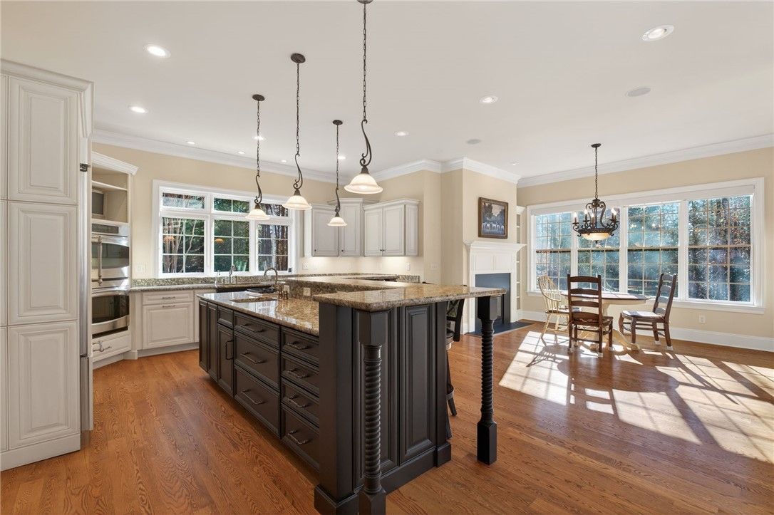 - Attic Access, Wet Bar, Bookcases, Built-in Features, Balcony, Butler Pantry, Ceiling Fan(s), Separate/Formal Dining Room, Double Vanity, Eat-in Kitchen, Granite Counters, High Ceilings, Jetted Tub, Kitchen Island, Pantry, Recessed Lighting, Steam Shower, Walk-In Closet(s), Window Treatments
