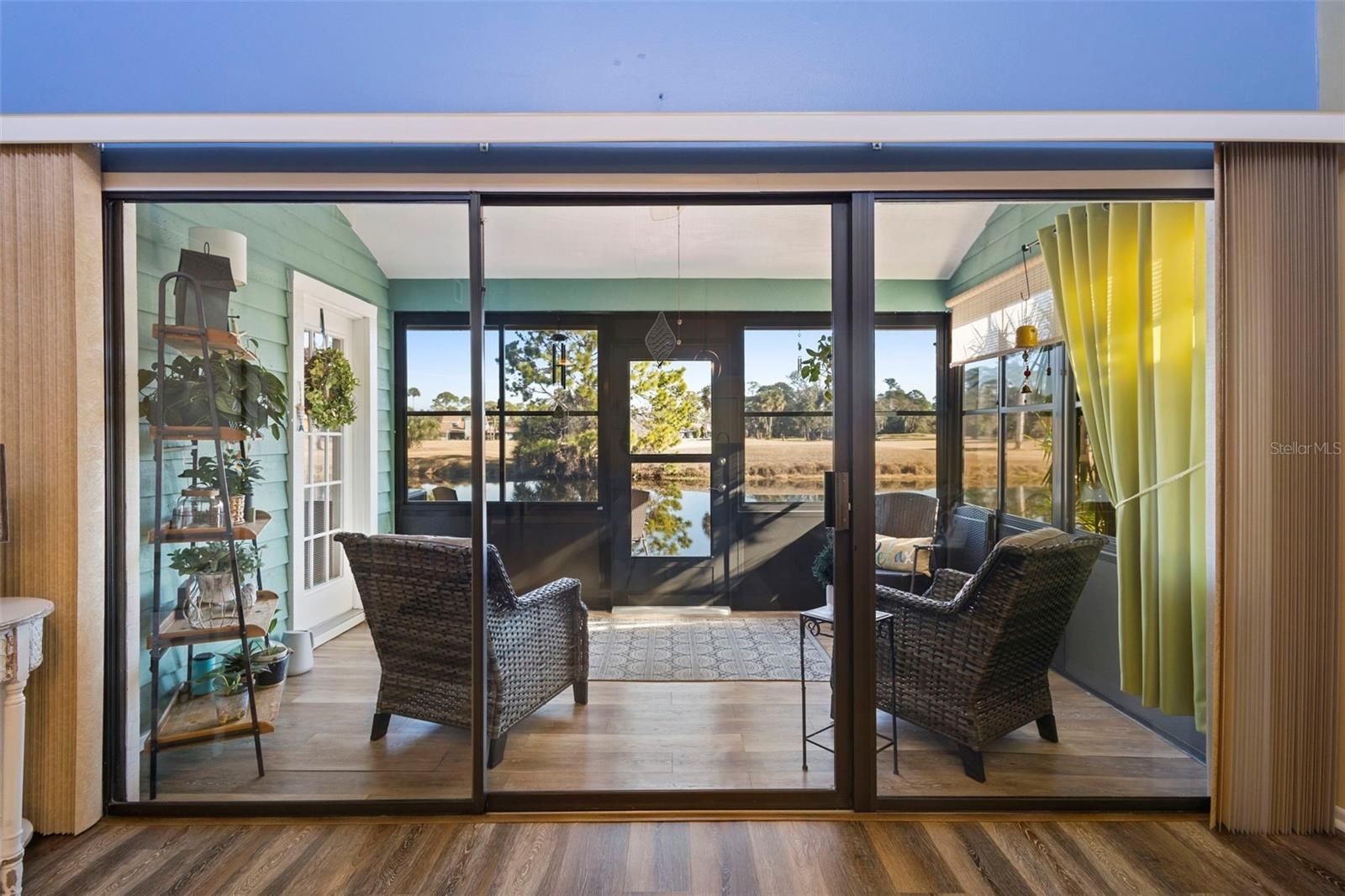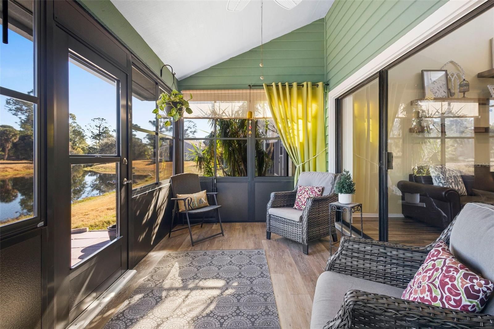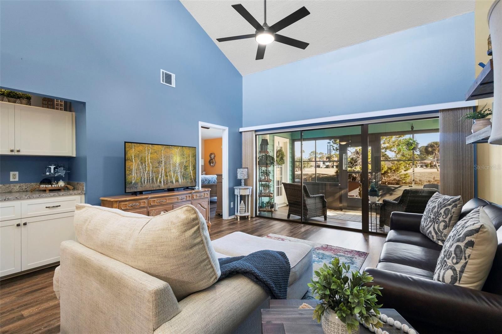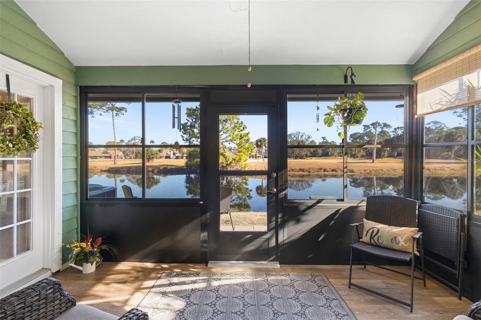 Welcome to your perfect Florida retreat in the sought-after Pelican Bay golf community of Daytona Beach. This beautifully updated 2-bedroom, 2-bath townhome offers tranquil canal water views and effortless, low-maintenance living—ideal for full-time residents or those ready to fly south for the season. Designed with comfort and convenience in mind, the home features tile and vinyl plank flooring throughout, and the bright, open layout is enhanced by the vaulted ceiling, skylight and modern kitchen. Enjoy peace of mind updates such as an LG stainless steel appliance package, a Carrier 14-SEER HVAC system (installed 2021), double pane window in the primary suite (2023), and shingle roof and skylight (2019). Enjoy the relaxing canal water views from all areas of the home including your screened lanai, creating a serene backdrop for morning coffee or sunset evenings after a day on the course. Pelican Bay is a guard-gated community offering resort-style amenities, including golf courses, a clubhouse, swimming pools, tennis and pickleball courts, and scenic walking and biking paths. Conveniently located near beaches, shopping, dining, and major roadways, this townhome is perfectly positioned for a seasonal escape or a year-round Florida lifestyle. Whether you’re looking for a lock-and-leave winter retreat or a place to land and stay awhile, this home is ready to welcome you—just unpack and enjoy the flight home.