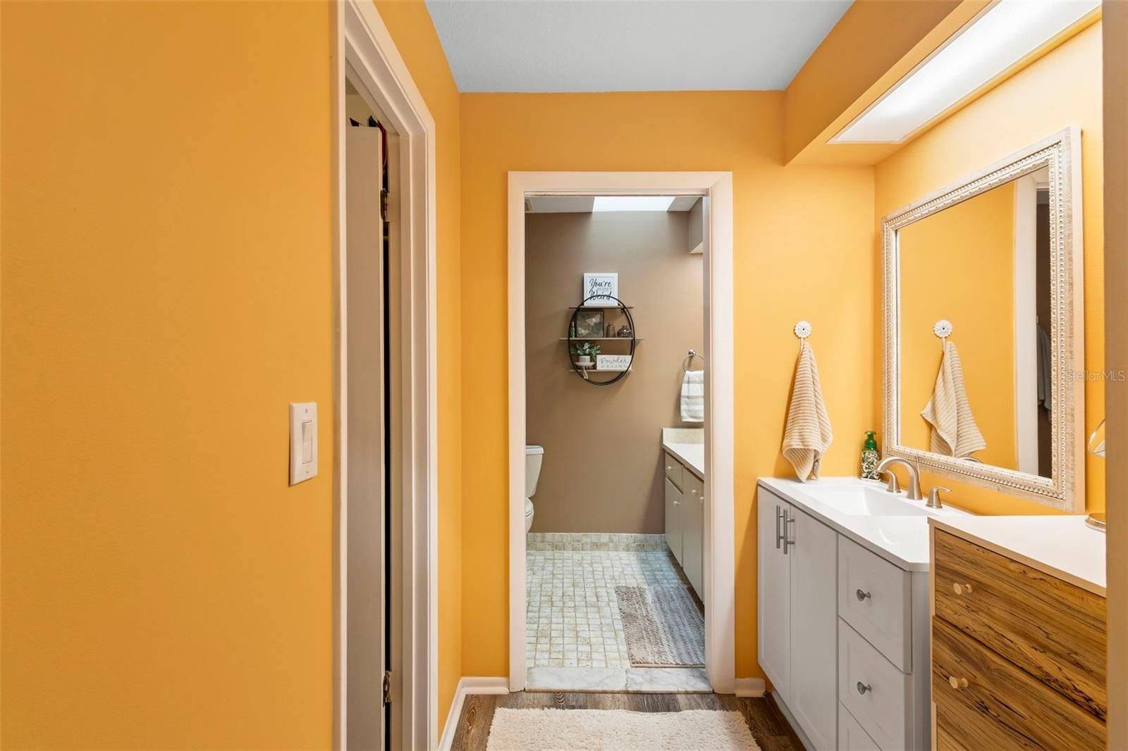 - Built-in Features, Ceiling Fan(s), Living/Dining Room, Open Floorplan, Main Level Primary, Solid Surface Counters, Thermostat, Vaulted Ceiling(s), Walk-In Closet(s)