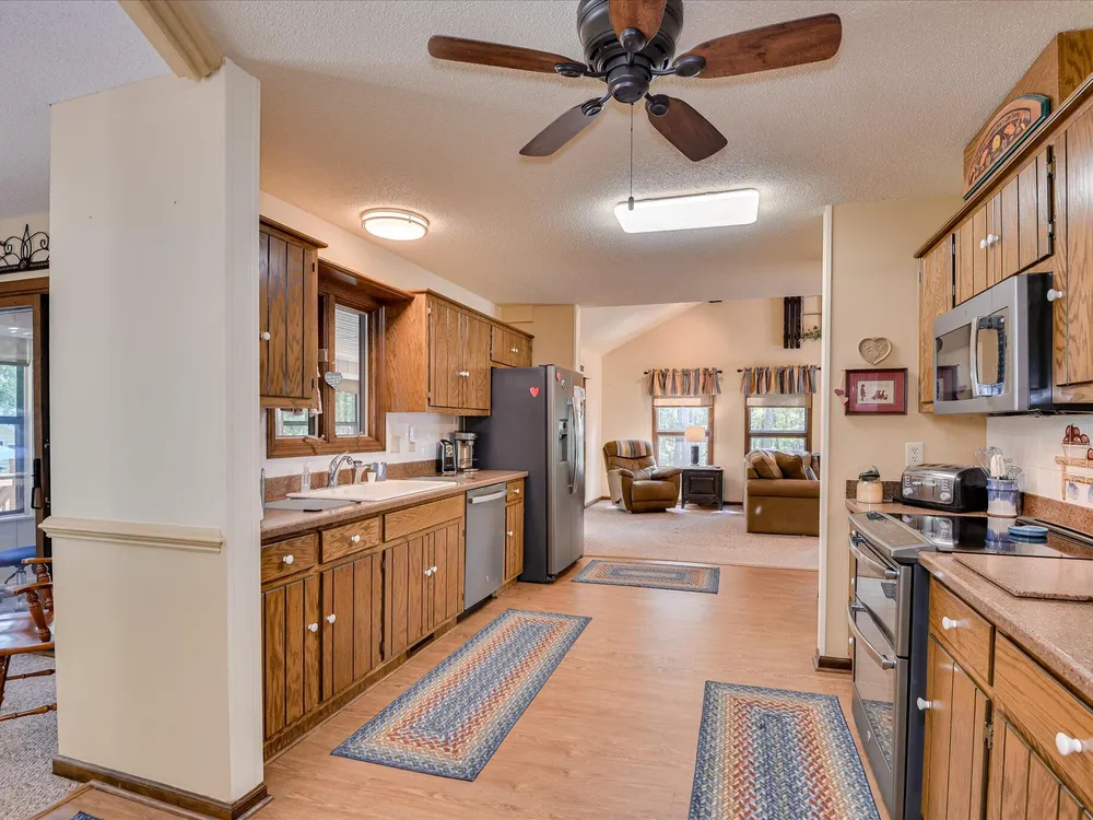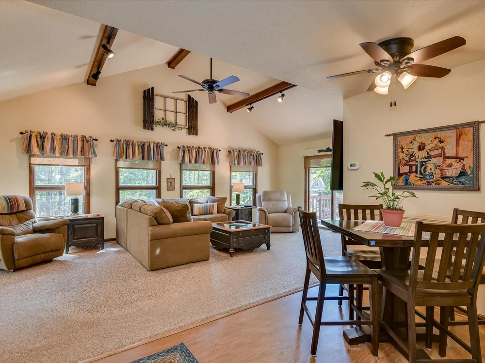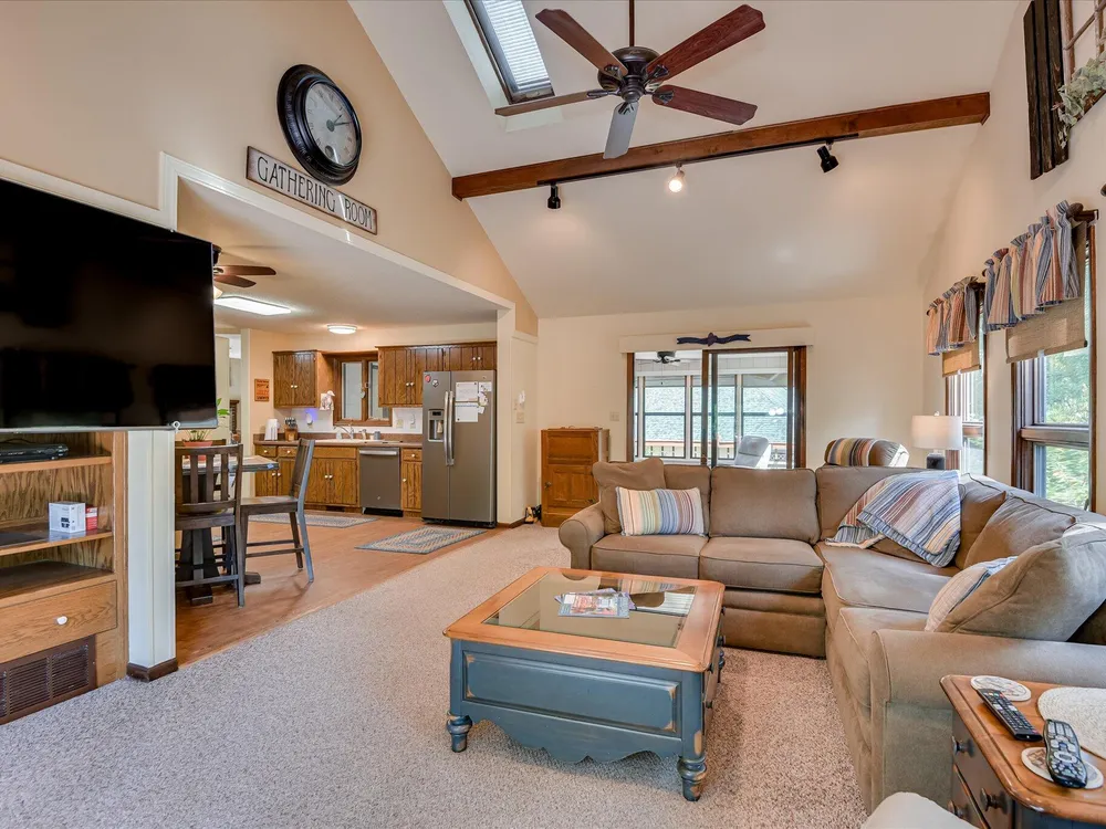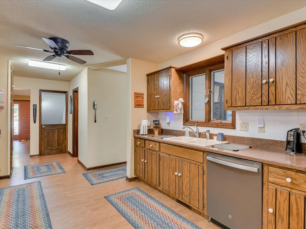A Timeless Lakeside Gem with Exceptional Character & Renovation Potential. Discover the exceptional character of this well-maintained rustic chalet-style home, where the charm of an older build meets the functionality of modern living. This spacious residence, offering 2,222 square feet of thoughtfully designed living space, provides a unique opportunity for those seeking a home with a story and the perfect canvas to update to their personal taste.Step inside to find yourself in love with the possibilities. The home also features a formal living room and dining room, offering elegant spaces for entertaining. A bright sunroom provides a peaceful spot to relax and take in the natural light.The true versatility of this home is revealed in its enormous, finished walk-out basement. This lower level is a world of its own, featuring:A craft room for your creative pursuits.A dedicated workshop for projects.A large laundry room for convenience.A versatile ''man cave'' that can easily serve as a guest suite or additional bedroom.Perhaps the most compelling feature is the seamless connection to the outdoors. A large deck, accessible from the primary bedroom, family room, and sunroom, provides multiple private vantage points to enjoy the serene setting. Just steps from the lake and dock slip a private outside sitting area awaits, offering a secluded spot to unwind.The property sits on a spacious lot with a simplistic, low-maintenance front and backyard, giving you more time to enjoy the lake and less time on yard work.This charming home is priced to allow new owners the freedom to personalize and update to their taste, ensuring they remain within a favorable price point for the neighborhood. It's more than just a house; it's a home with character and endless potential for creating memories.