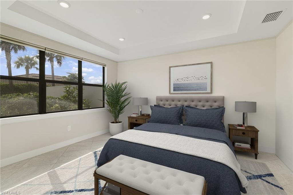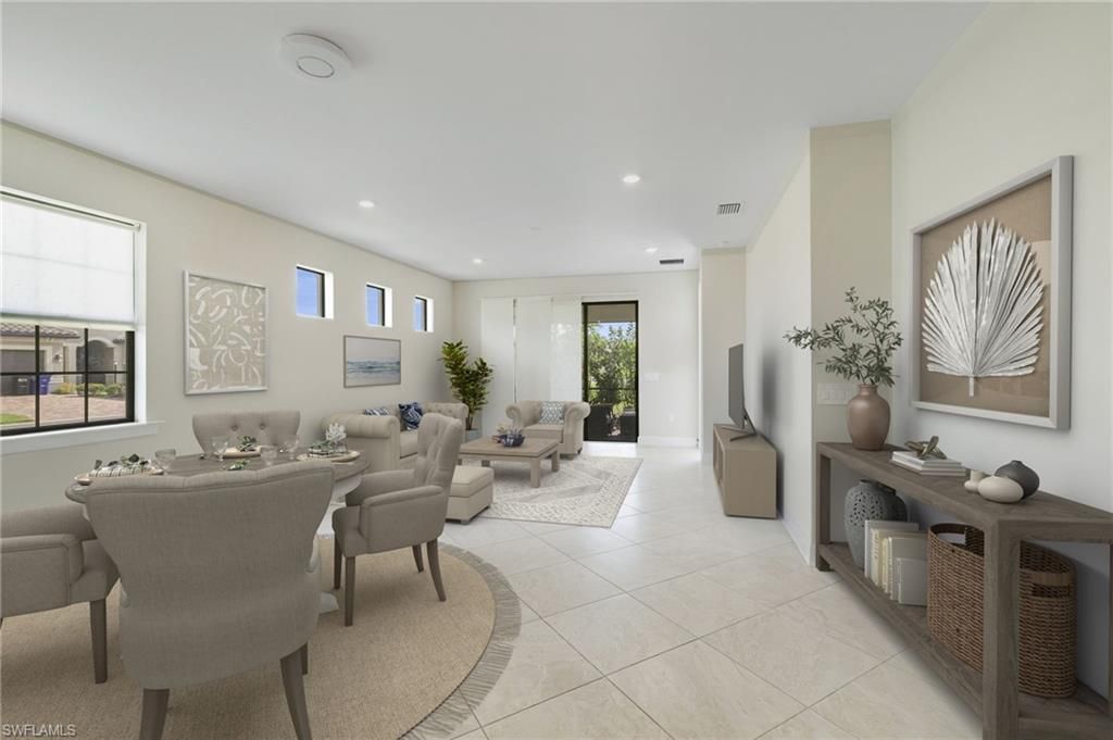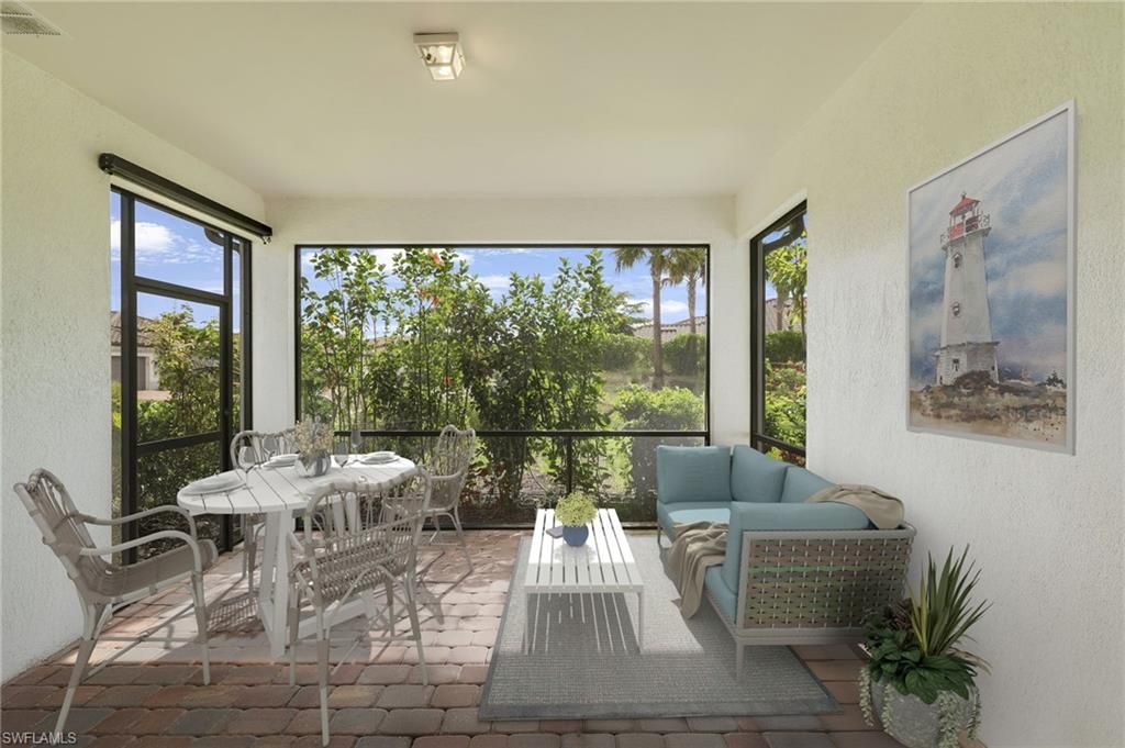Enjoy a laid-back resort-style lifestyle at the Esplanade Lake Club community with this beautifully maintained two-bedroom plus den, two-bath residence. This end-unit villa offers a thoughtfully designed floor plan featuring a bright great room that seamlessly connects to the breakfast area and chef-ready kitchen, complete with sleek stainless-steel gas appliances, quartz countertops, a walk-in pantry, and a handy island. The adjacent den is ideal as a home office, media space, or cozy reading nook. Step outside to an extended covered lanai that overlooks lush, landscaped grounds perfect for morning coffee or evening relaxation. With tile flooring throughout and tasteful finishes, the interior exudes an effortless, elegant feel. The primary suite features a walk-in closet and a private bathroom, while a second bedroom and full bath tucked across the villa offer privacy and convenience. A spacious laundry room and two-car attached garage add to daily comfort.Esplanade Lake Club is a gated, lakefront community spanning around a 700-acre lake. Amenities include a resort-style pool with Bahama Bar & Grille, sports courts (tennis, pickleball, bocce, basketball, volleyball), a community boat ramp and dock, kayak launch, dog park, fitness center, bike and jogging trails, and access to private beach areas. With close proximity to RSW Airport, award-winning golf, dining, and shopping, this villa offers an easy, upscale Florida lifestyle without the hassle of extensive upkeep.