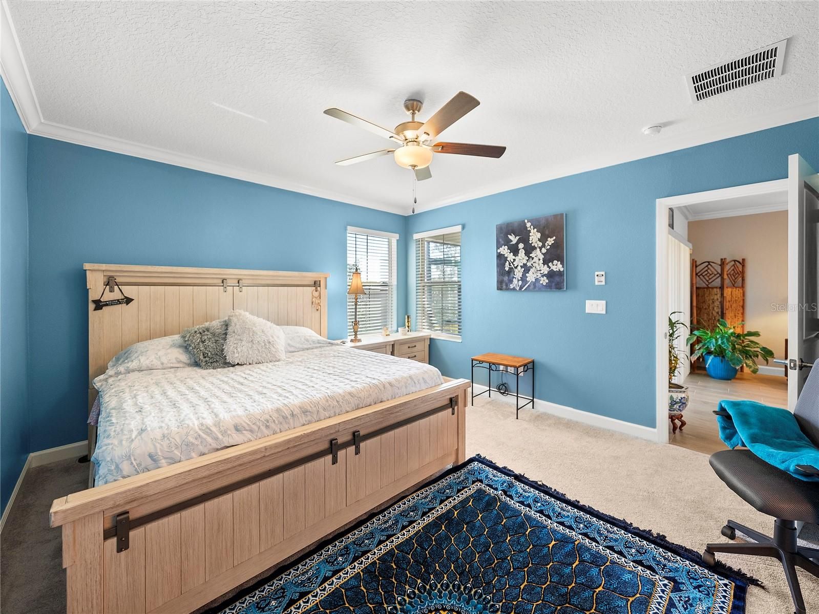 - Ceiling Fan(s), High Ceilings, In-Wall Pest Control, Kitchen/Family Room Combo, Open Floorplan, Main Level Primary, Solid Surface Counters, Walk-In Closet(s)