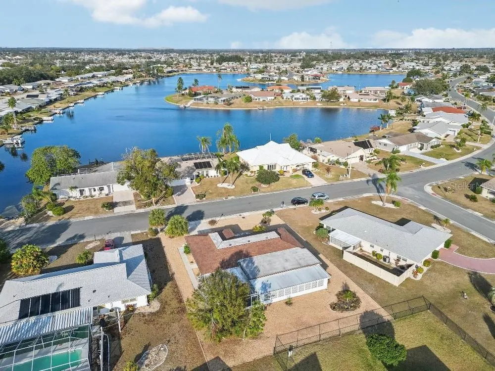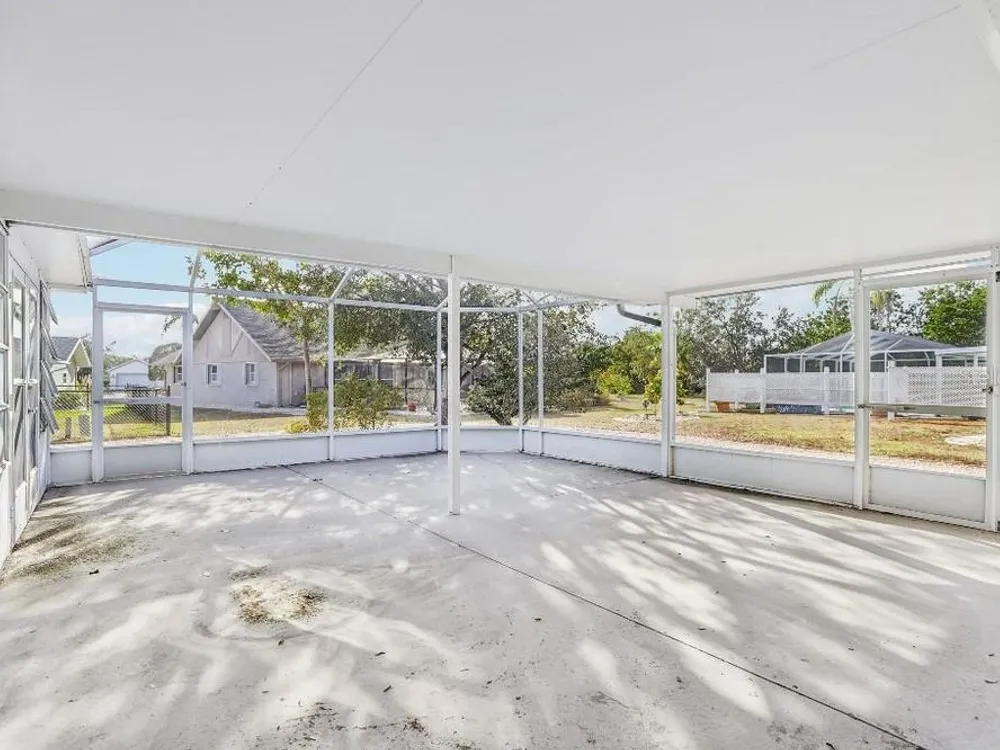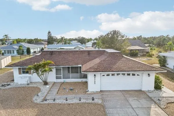 Spacious Florida home in a wonderful neighborhood. The floor plan has a living room, dining room, nice size family room and also a kitchen with an eating area. This home has a new-white wood kitchen cabinets, stainless appliances, luxury vinyl plank, bath vanities, plumbing, newer roof and A/C The outdoor spaces have a large sunroom, plus a screen room with a large covered eating area. A nice screen front porch with a view of pond.This is a move in ready home with all the amenities of Sun City Center!