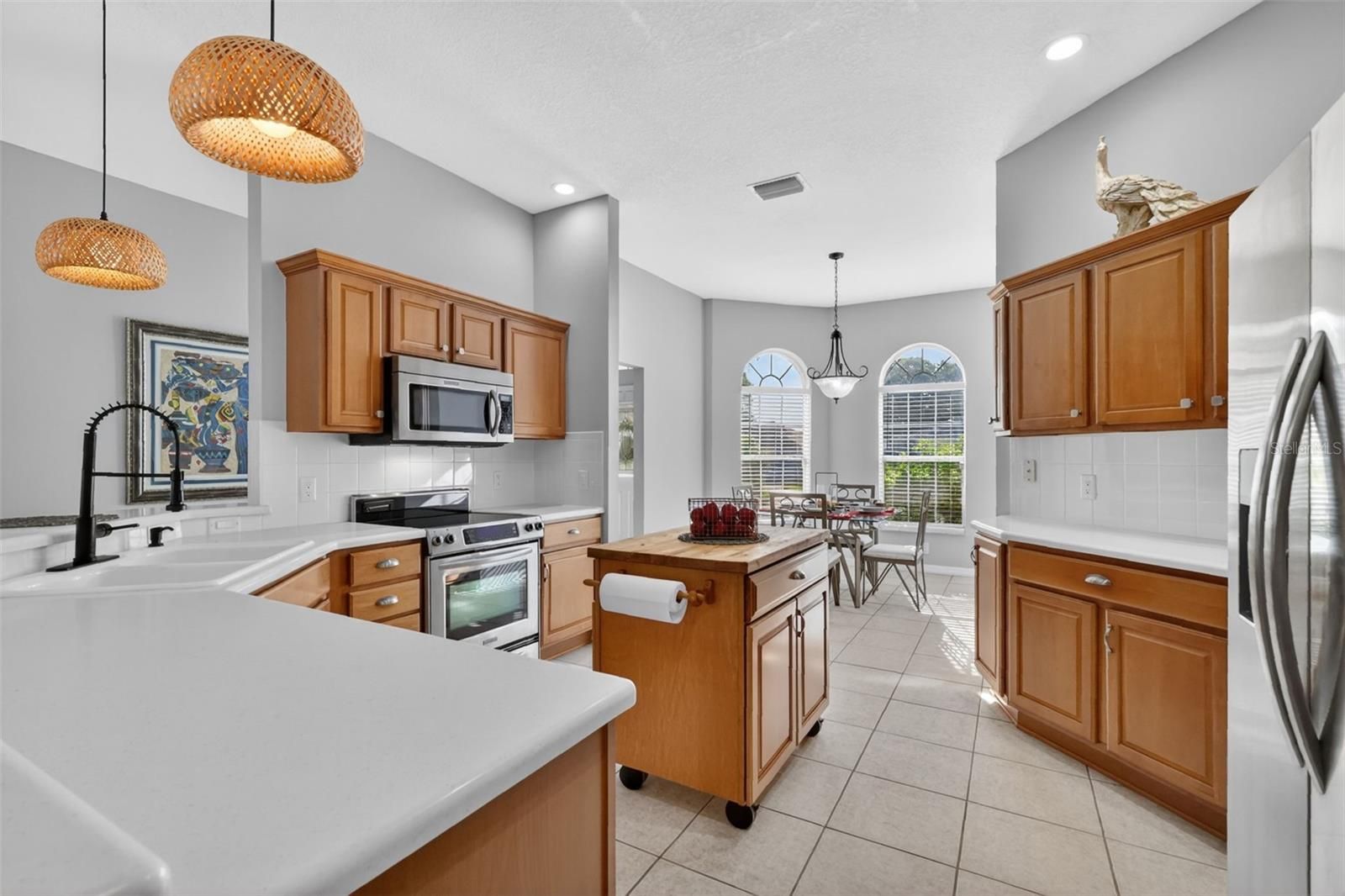 GORGEOUS, METICULOUSLY-MAINTAINED, 3/2 BLOCK and STUCCO Magnolia (Gardenia) nestled on a quiet CUL-DE-SAC in the highly sought after Village of Chatham! ROOF (2023). HVAC (2025). HWH (2023). DECORATIVELY PAINTED drive and walkways, MATURE landscaping with STONED beds, and a quaint ENTRY VESTIBULE with LEADED-GLASS door and sidelight welcome you into the BRIGHT, GENEROUS foyer featuring HIGH ceilings and TILE flooring. The EXPANSIVE kitchen is truly a chef’s delight, boasting WOOD cabinetry with ROLL-OUT SHELVING, TILE backsplash, STAINLESS STEEL appliances, built-in PANTRY, EAT-IN breakfast bar, and TILE flooring. The adjacent dinette is perfect for casual dining and offers ample NATURAL LIGHT with two windows with arched transoms. BEAUTIFUL LUXURY VINYL PLANK flooring and HIGH VOLUMINOUS ceilings grace the OPEN-CONCEPT living and dining rooms. Sliding glass doors from the main area lead you into the FABULOUS lanai. This wonderful OUTDOOR OASIS boasts a DECORATIVELY PAINTED floor, TINTED PRIVACY screening and shades, and an adjacent rear patio - perfect for grilling and enjoying the amazing Florida sunshine! Back inside, retreat to your luxurious primary suite boasting LUXURY VINYL PLANK flooring, HIGH VAULTED ceiling, and TWO SPACIOUS WALK-IN closets. Its en-suite bathroom features WOOD corner cabinetry with DUAL sinks, make-up vanity, TILE WALK-IN shower, and a LARGE LINEN closet. A SPLIT FLOOR PLAN places the additional bedrooms and second bathroom near the front of the house, creating a PRIVATE GUEST WING. Bedroom two offers LUXURY VINYL PLANK flooring, a BAY WINDOW, and a built-in closet. The second bathroom features TILE floors, WOOD cabinetry, TILED tub and shower combination, and a hallway LINEN closet. The third bedroom has LUXURY VINYL PLANK flooring and a built-in closet. A SPACIOUS, INTERIOR LAUNDRY ROOM showcases WOOD cabinetry with a built-in PANTRY for additional STORAGE needs, utility sink, and TILE floors. It leads you into the EXTRA-DEEP 24’ x 24’ TWO CAR GARAGE with painted floors, shelving, and attic access with stairs. Dryer and stove GAS hookup available! DON’T MISS YOUR OPPORTUNITY TO OWN THIS INCREDIBLE HOME! The Village of Chatham is IDEALLY LOCATED near the FABULOUS First Responders Recreation Center! Close to Nancy Lopez Legacy Country Club and Championship Golf Course; Glenview Country Club and Championship Golf Course; First Responders Pitch-N-Putt Golf Course; numerous executive golf courses; Chatham and Mulberry Grove Pools and Recreation Centers; Calumet Grove Neighborhood Pool; the Savannah Center; Springdale Fitness and Walking Trails; Mulberry Dog Park; the VA Hospital; and CR 42 with an abundance of shopping, restaurants, banking, medical, and more! PLEASE WATCH OUR WALKTHROUGH VIDEO of this AMAZING HOME and call today to schedule your Private Showing or Virtual Tour!