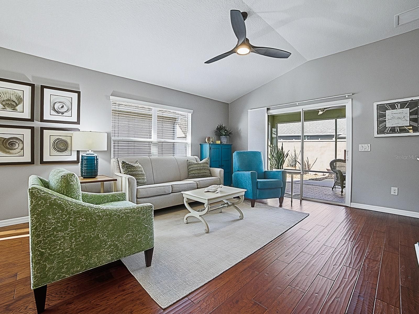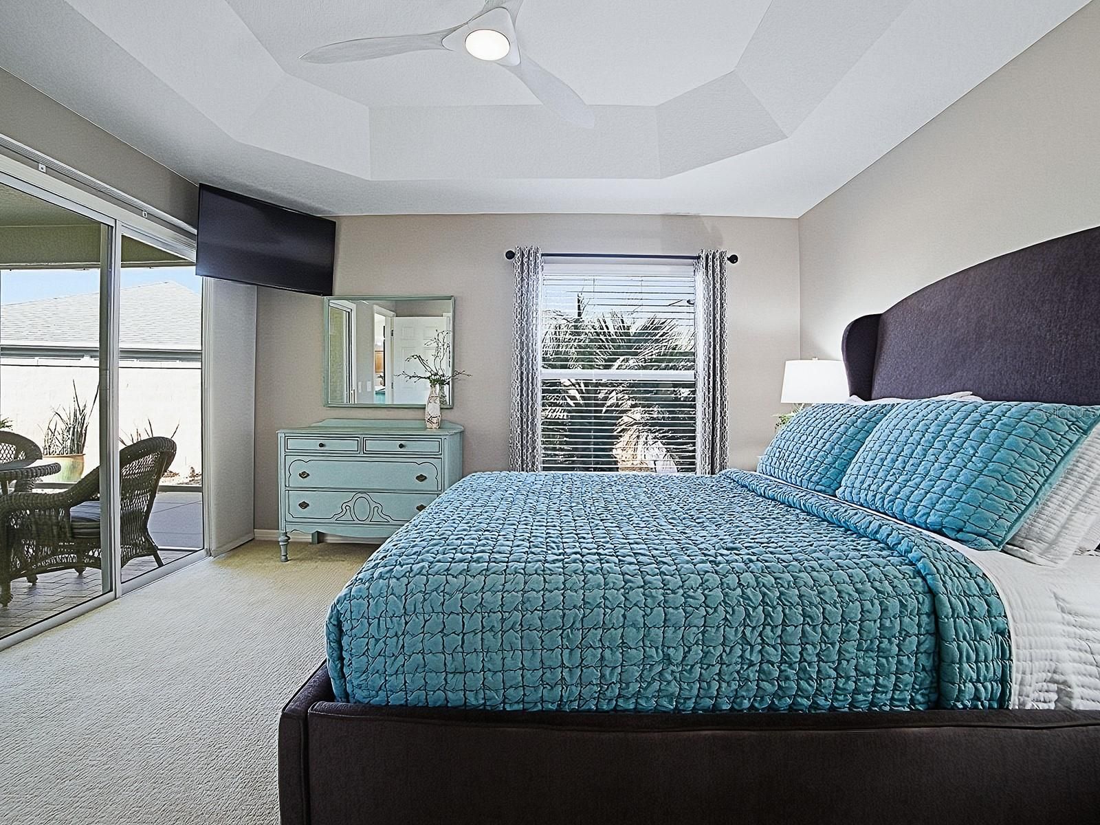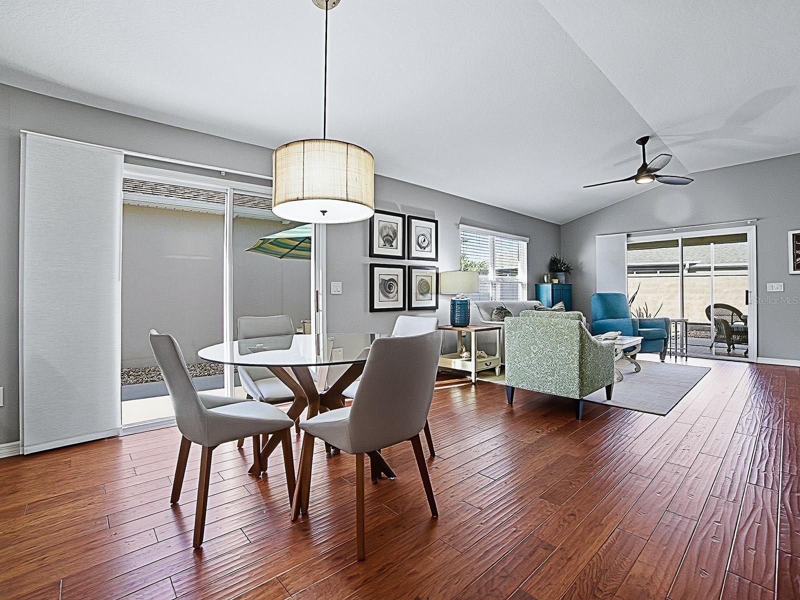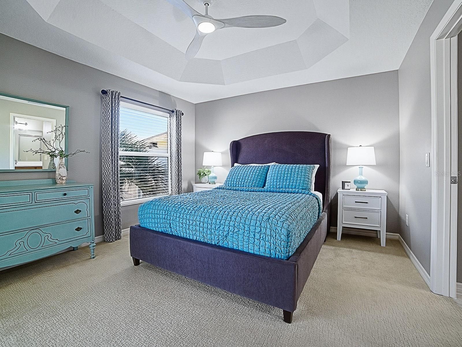 - Living/Dining Room, Open Floorplan, Main Level Primary, Stone Counters, Tray Ceiling(s), Vaulted Ceiling(s), Walk-In Closet(s), Window Treatments