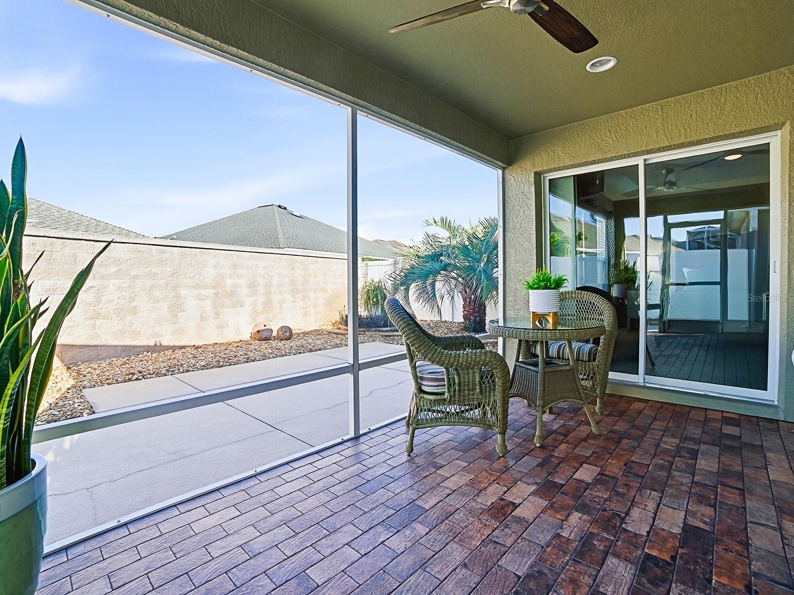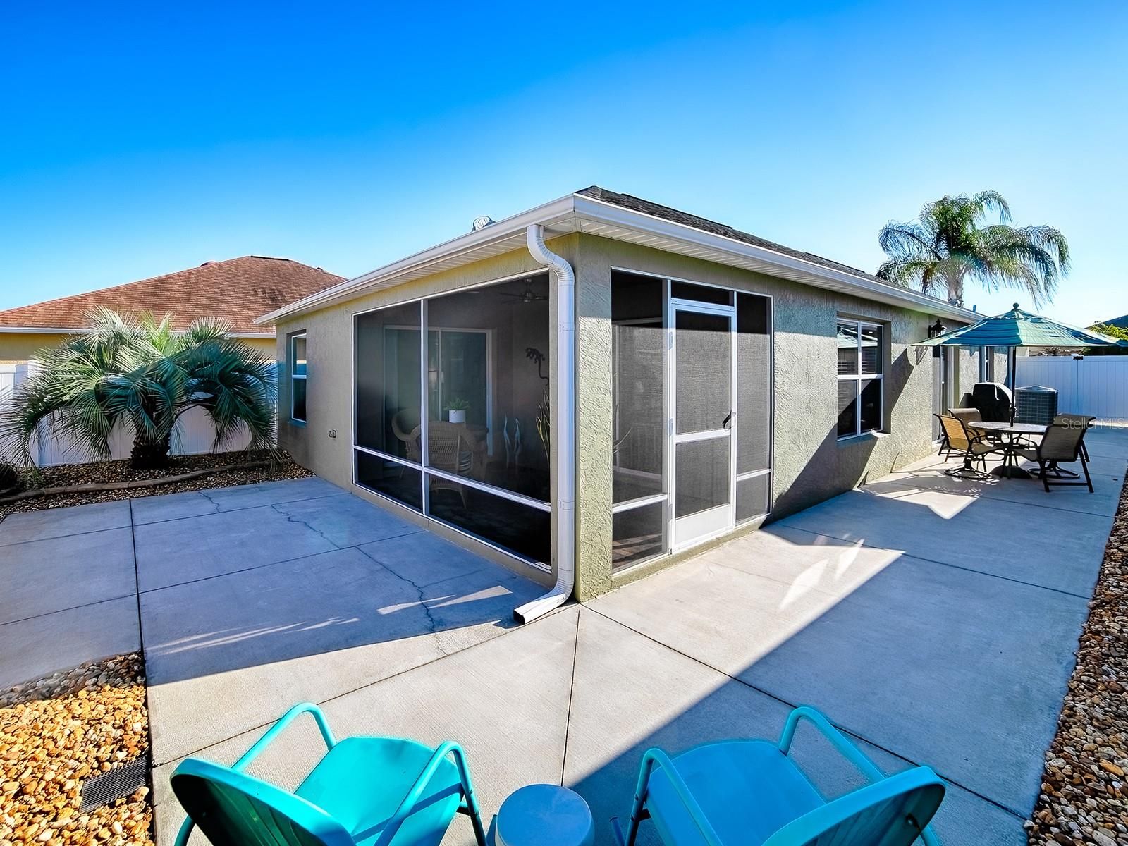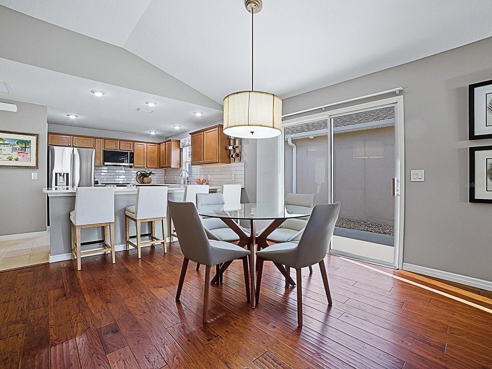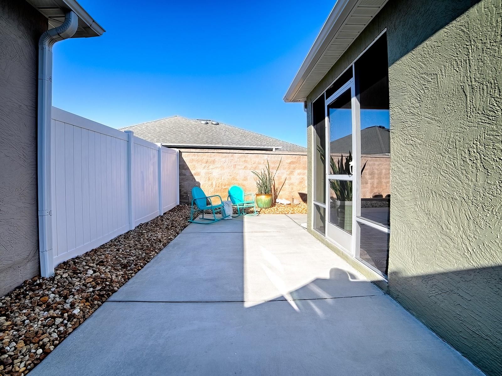 LOVELY 2-bedroom, 2-bath COURTYARD VILLA located in the VILLAGE of GILCHRIST, featuring an impressive list of recent UPGRADES. You'll appreciate the LOW MAINTENANCE landscaping - all hardscape around the entire home. Striking NEW LEADED GLASS front door offers an inviting entrance. The spacious kitchen has MAPLE cabinetry complemented by NEW QUARTZ countertops, NEW custom subway TILE BACKSPLASH, NEW LG refrigerator, microwave, and slide-in range, NEW sink and faucet, a CLOSET PANTRY, lots of storage and workspace, and a large breakfast bar! The living and dining areas showcase engineered HARDWOOD flooring, while both bedrooms feature NEW carpet. Throughout the home, you’ll find all-NEW light fixtures and ceiling fans! NEW custom PANEL TRACK BLINDS enhance both sets of sliding glass doors in the dining and living rooms. The primary bedroom has a tray ceiling, sliding glass doors that open out to the lanai, a large WALK-IN CLOSET, and an EN-SUITE BATH offering NEW QUARTZ countertops, NEW sink and faucet, NEW light fixture and TILED SHOWER - no fiberglass! A pocket door leads to the guest bath with NEW QUARTZ countertops, NEW sink and faucet, NEW framed mirror, NEW light fixture, and TILED shower and tub; the guest bedroom has a ceiling fan, and large closet. The SCREENED LANAI has been beautifully finished with "CHICAGO BRICK" flooring, creating a perfect space to relax. You’ll love the wrap around COURTYARD with a convenient place to dine and grill, or just relax and enjoy the FLORIDA sunshine! Additional highlights include NEW Carrier HVAC upsized to 2.5 Ton for added comfort and efficiency, fresh interior and exterior paint, the kitchen and baths tile flooring has newly refinished grout, French drain installed in courtyard, gutters around the entire home, added cabinet in laundry area, and FRONT LOAD washer and dryer which do convey with the home. Conveniently located between the Bonifay and Evans Prairie Golf and Country Clubs. And there’s plenty of recreation close by, including shopping and dining at Pinellas and Colony Plazas, and Brownwood Paddock Square! THIS MOVE-IN READY VILLA COMBINES STYLE, QUALITY UPDATES, AND EASY LIVING!