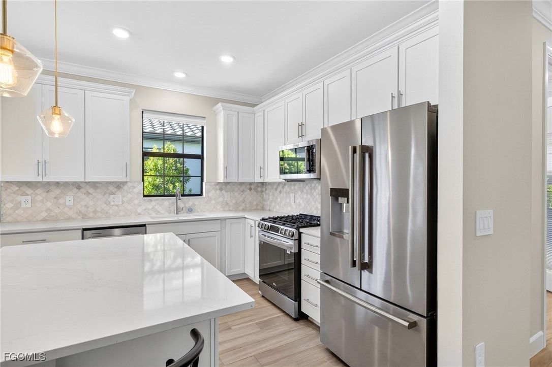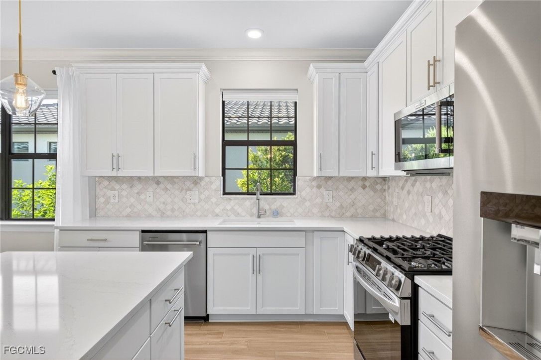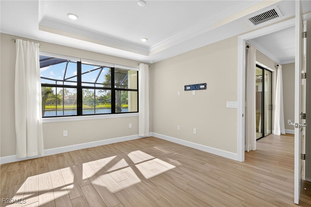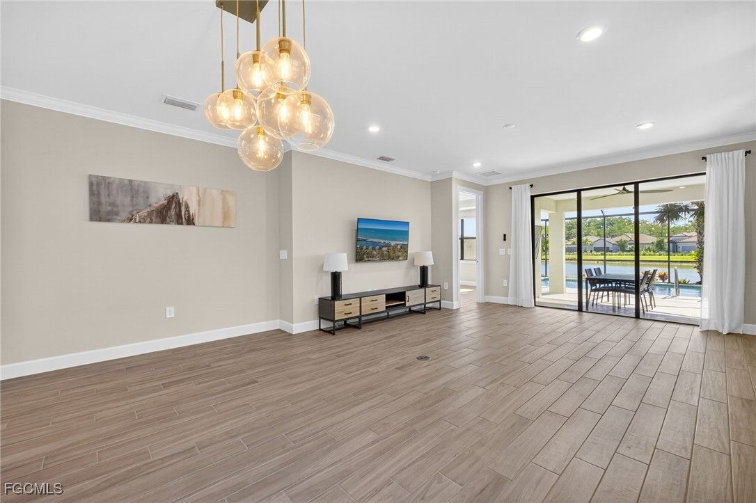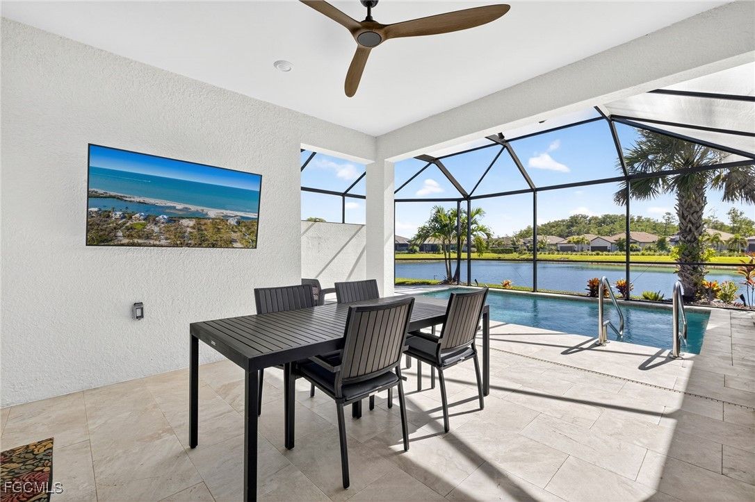 ***PRICE IMPROVEMENT***Welcome to Esplande Lake Club where modern design meets resort-style amenities in one of Southwest Florida’s most desirable gated communities. Built in 2022, this impeccably maintained Open Floor plan 2-bedroom + Den, 2-Bathroom home partially furnished offers both style and versatility. The open-concept layout is enhanced by sleek wood look tile flooring throughout, while the den provides the perfect opportunity to easily convert to a third bedroom, private office, or flex space to suit your lifestyle. Primary bedroom with en-suite has a large walk-in closet for all your storage needs. The gourmet kitchen is a standout feature, showcasing quartz countertops, a designer tiled backsplash, stainless steel appliances, natural gas cooktop and stove as well as ample cabinetry, ideal for both everyday living and entertaining. Step outside to your private screened lanai, where a sparkling pool with a travertine stone deck that overlooks a peaceful lake view creating the perfect backdrop for relaxation. This home also has an extended covered lanai for relaxing in the shade. Additional upgrades include a climate-controlled garage with epoxy flooring and mini-split system, and is full Generac ready capable for added convenience and peace of mind to easily install a generator. Residents of this exclusive gated community enjoy access to a full suite of luxury amenities including a clubhouse, Community Boat ramp, Tennis and Pickleball, on-site restaurant and coffee shop, resort-style pool and spa, private beach area, dog park and bocce ball. Located close to I-75, RSW and Gulf Coast town Center this home has it all! Schedule a showing today!