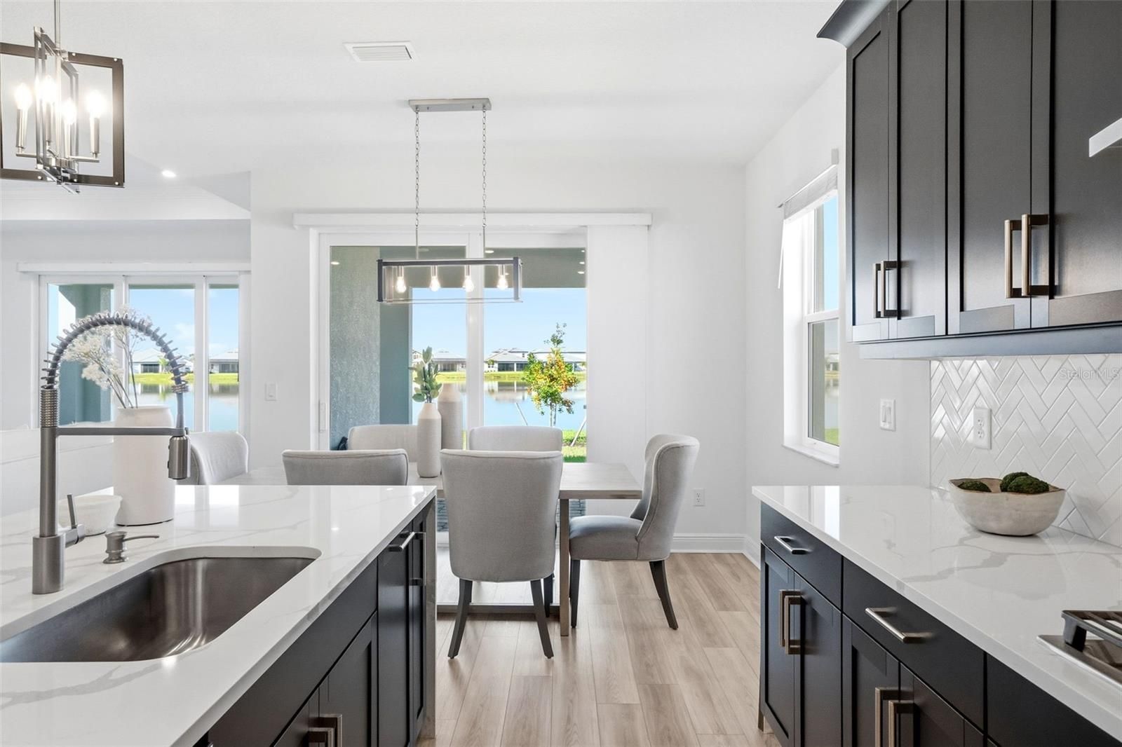 Experience refined Florida living in this exceptionally upgraded Calusa model by M/I Homes, perfectly situated on one of Sweetwater’s most desirable water front homesites. This 4-bedroom, 3-bath custom model quality home has over $117,000 in custom enhancements that elevate comfort and style! From its Sierra-style paver driveway and tropical landscaping to the sleek modern elevation, every detail exudes curb appeal. Impact-rated windows and sliders offer year-round peace of mind, no shutters required. Inside, the gourmet kitchen is a showpiece with a waterfall-edge quartz island, herringbone tile backsplash, Sonoma-painted cabinetry with light rail, and GE Profile stainless gas appliances. The owner’s suite provides a tranquil retreat featuring a spa-inspired bath with Cambria quartz counters, a frameless glass shower with matte black fixtures, and a custom-designed walk-in closet. An ensuite guest bedroom offers privacy and versatility, while also featuring a professionally installed custom closet. Elegant details continue throughout the home including, luxury vinyl plank flooring, 8’ interior doors, crown molding in tray ceilings, upgraded matte black hardware, lighting, tankless water heater, SmartShield structured wiring, and pre-plumbed outdoor kitchen rough in. Step outside to the expanded lanai, where peaceful water views set the stage for morning coffee or evening gatherings. Located within the vibrant Sweetwater community of Lakewood Ranch, residents enjoy resort-style amenities, walking trails, and convenient access to top-rated schools, dining, and entertainment.