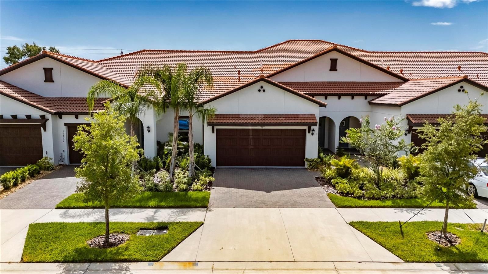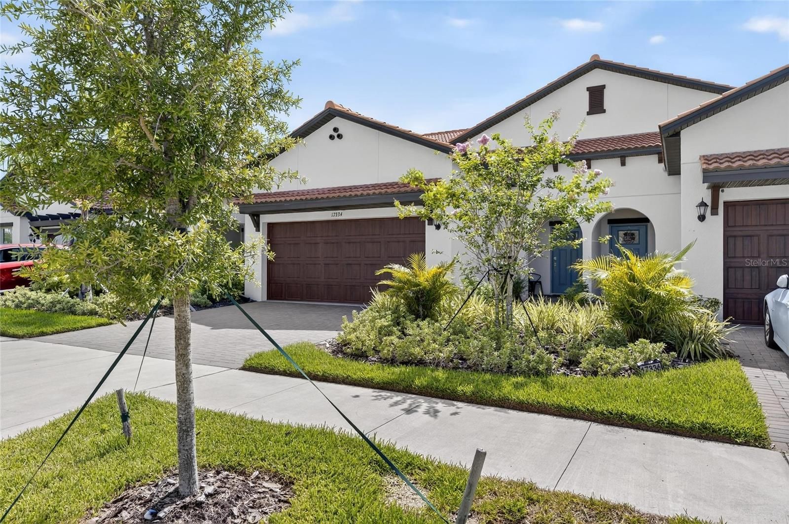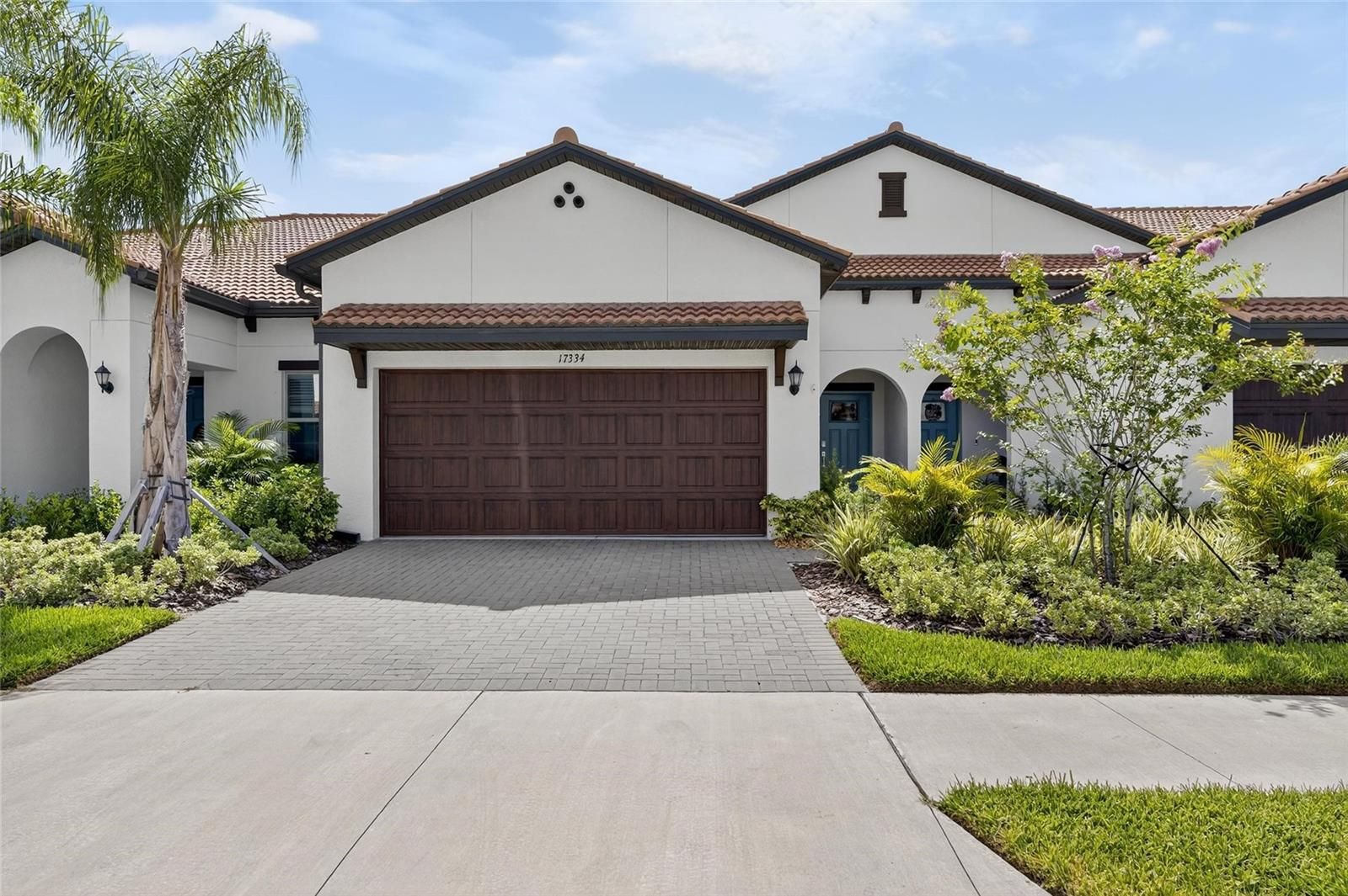 **ASSUMABLE VA 4.375% LOAN (loan can be assumed by either Veteran or Non-Veteran) Motivated Seller, Offering the PRISTINE condition of new construction WITHOUT the wait, this home has seen MINIMAL USE. Discover this stunning 1,737 SQFT, 2-bedroom, 2.5-bathroom, PARTIALLY FURNISHED home, in the vibrant and luxurious 55+ Active Adult Community that is Medley at Southshore Bay. This meticulously designed two-story Villa offers a perfect blend of comfort and style. Step inside via two-car garage or front door to an inviting OPEN-CONCEPT first level. Here, you'll find a spacious kitchen with MATCHING GE APPLIANCES, White Cabinets, and QUARTZ COUNTERTOPS. The GREAT ROOM with CROWN MOLDING throughout is ideal for ENTERTAINING. Enjoy seamless indoor-outdoor living with a TILED and SCREENED covered back PATIO, perfect for al fresco dining or simply relaxing with a cup of coffee. The owner's suite, conveniently located on the first floor, provides a PRIVATE OASIS with its en-suite bathroom and walk-in closets . Upstairs, a versatile LOFT space offers endless possibilities – a hobby room, home office, or media center – along with a comfortable guest bedroom and full bathroom, ensuring privacy and convenience for visitors. This home boasts desirable UPGRADES, including a WHOLE-HOUSE WATER SOFTENER for enhanced comfort and peace of mind. In the garage you will find EPOXY Floors, an ADDITIONAL SINK, CUSTOM SHELVING, TANKLESS WATER HEATER. In the home you'll find upgraded light fixtures. The community Southshore Bay offers a fantastic active adult lifestyle with amenities designed for leisure and social engagement. Additionally, HOA includes landscaping, internet and cable, private 55+ Clubhouse and access for you and your family into Southshore Bay LAGOON! Relax on the beach, swim in the clear blue water, and dive into the adventure with access to the WATER SLIDE, water OBSTACLE COURSE, KAYAKS, and PADDLE boards.