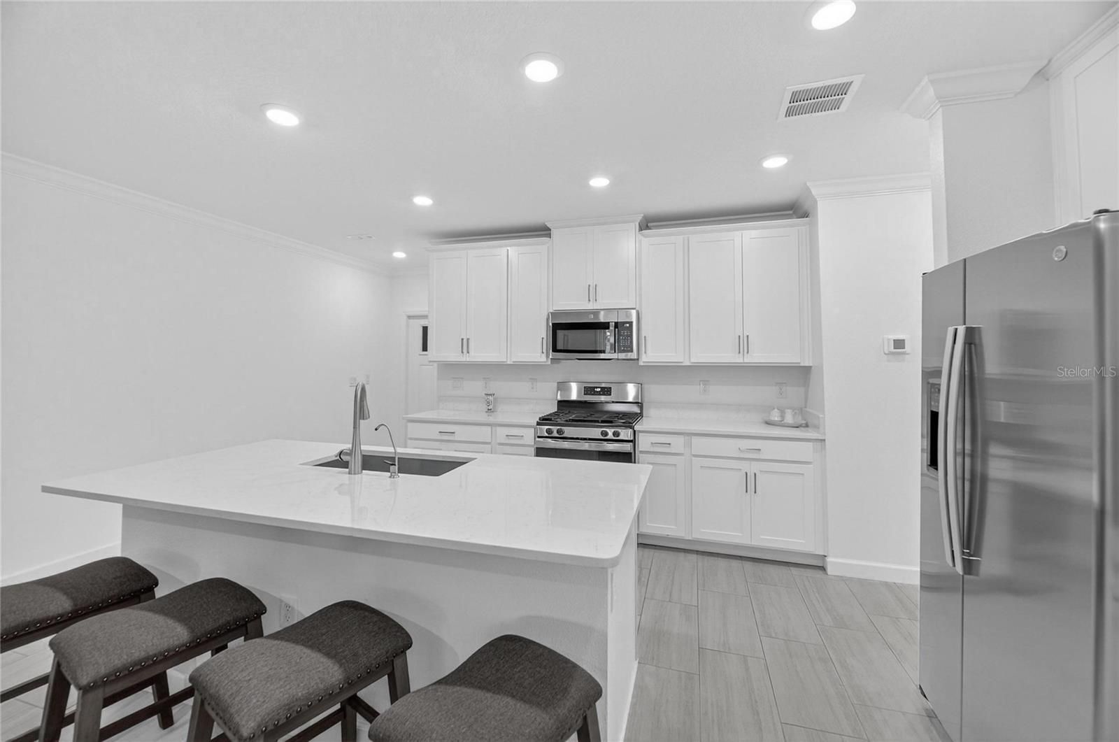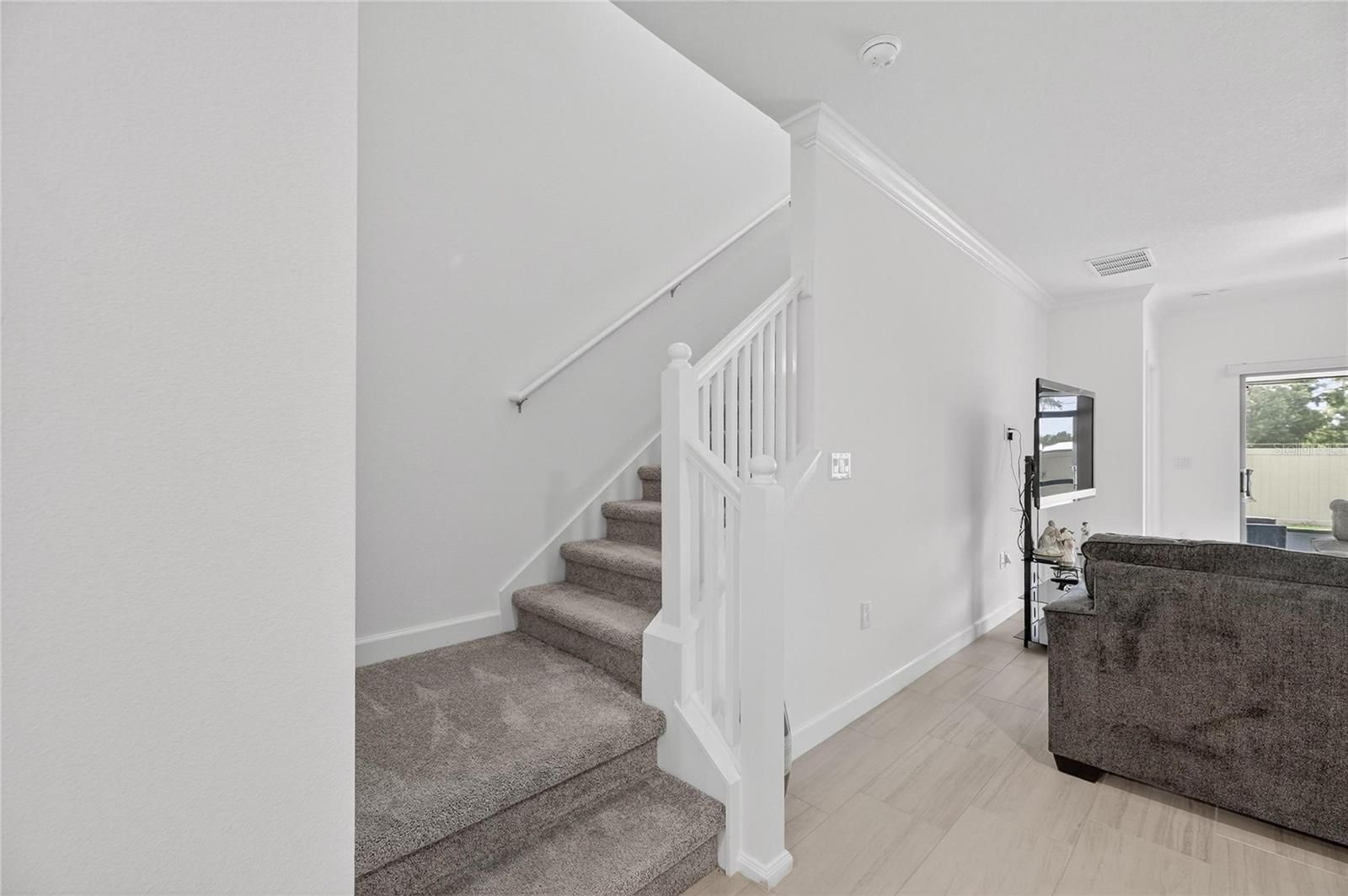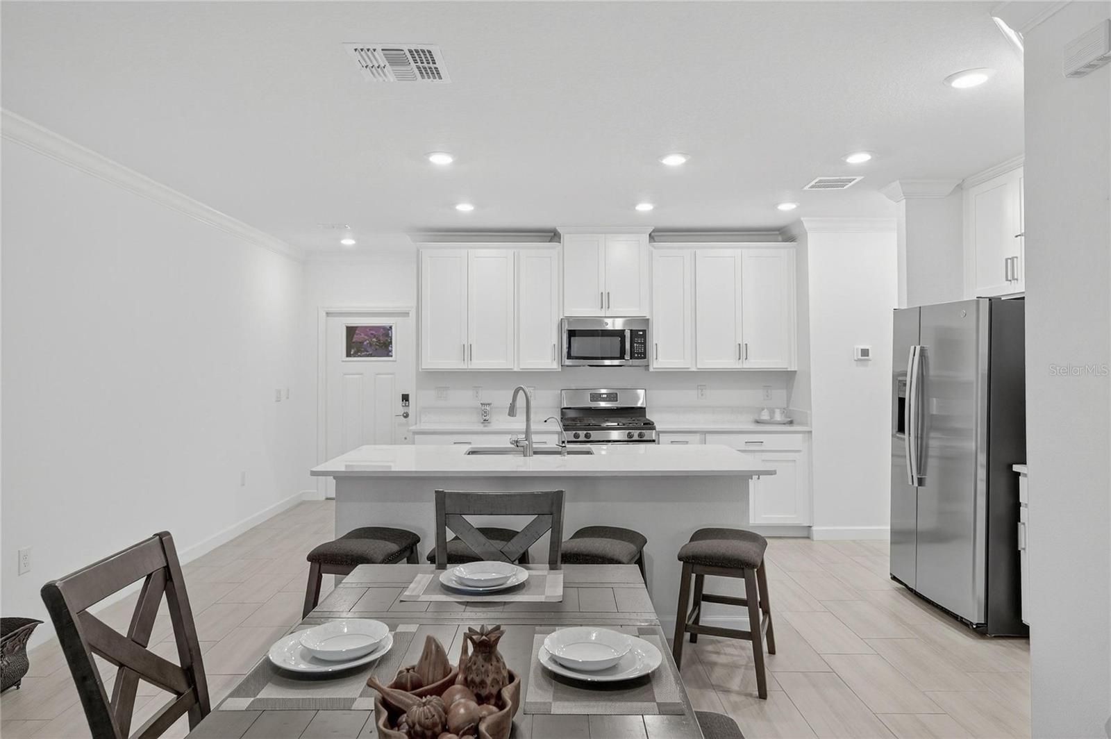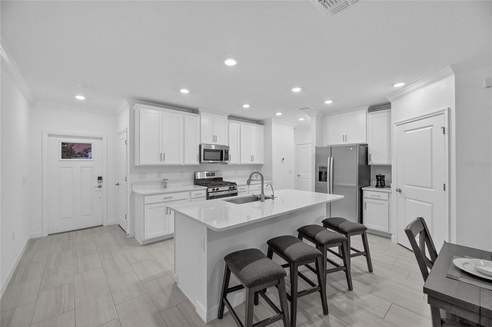 **ASSUMABLE VA 4.375% LOAN (loan can be assumed by either Veteran or Non-Veteran) Motivated Seller, Offering the PRISTINE condition of new construction WITHOUT the wait, this home has seen MINIMAL USE. Discover this stunning 1,737 SQFT, 2-bedroom, 2.5-bathroom, PARTIALLY FURNISHED home, in the vibrant and luxurious 55+ Active Adult Community that is Medley at Southshore Bay. This meticulously designed two-story Villa offers a perfect blend of comfort and style. Step inside via two-car garage or front door to an inviting OPEN-CONCEPT first level. Here, you'll find a spacious kitchen with MATCHING GE APPLIANCES, White Cabinets, and QUARTZ COUNTERTOPS. The GREAT ROOM with CROWN MOLDING throughout is ideal for ENTERTAINING. Enjoy seamless indoor-outdoor living with a TILED and SCREENED covered back PATIO, perfect for al fresco dining or simply relaxing with a cup of coffee. The owner's suite, conveniently located on the first floor, provides a PRIVATE OASIS with its en-suite bathroom and walk-in closets . Upstairs, a versatile LOFT space offers endless possibilities – a hobby room, home office, or media center – along with a comfortable guest bedroom and full bathroom, ensuring privacy and convenience for visitors. This home boasts desirable UPGRADES, including a WHOLE-HOUSE WATER SOFTENER for enhanced comfort and peace of mind. In the garage you will find EPOXY Floors, an ADDITIONAL SINK, CUSTOM SHELVING, TANKLESS WATER HEATER. In the home you'll find upgraded light fixtures. The community Southshore Bay offers a fantastic active adult lifestyle with amenities designed for leisure and social engagement. Additionally, HOA includes landscaping, internet and cable, private 55+ Clubhouse and access for you and your family into Southshore Bay LAGOON! Relax on the beach, swim in the clear blue water, and dive into the adventure with access to the WATER SLIDE, water OBSTACLE COURSE, KAYAKS, and PADDLE boards.