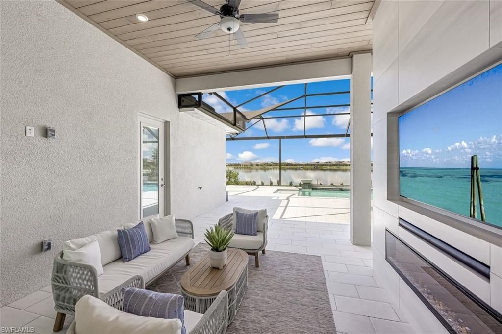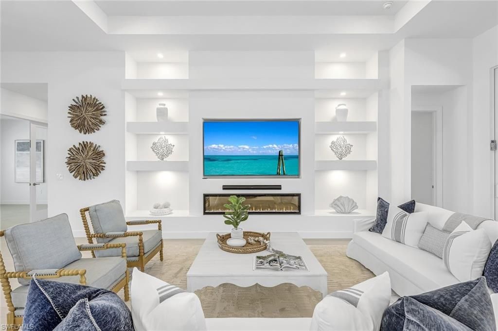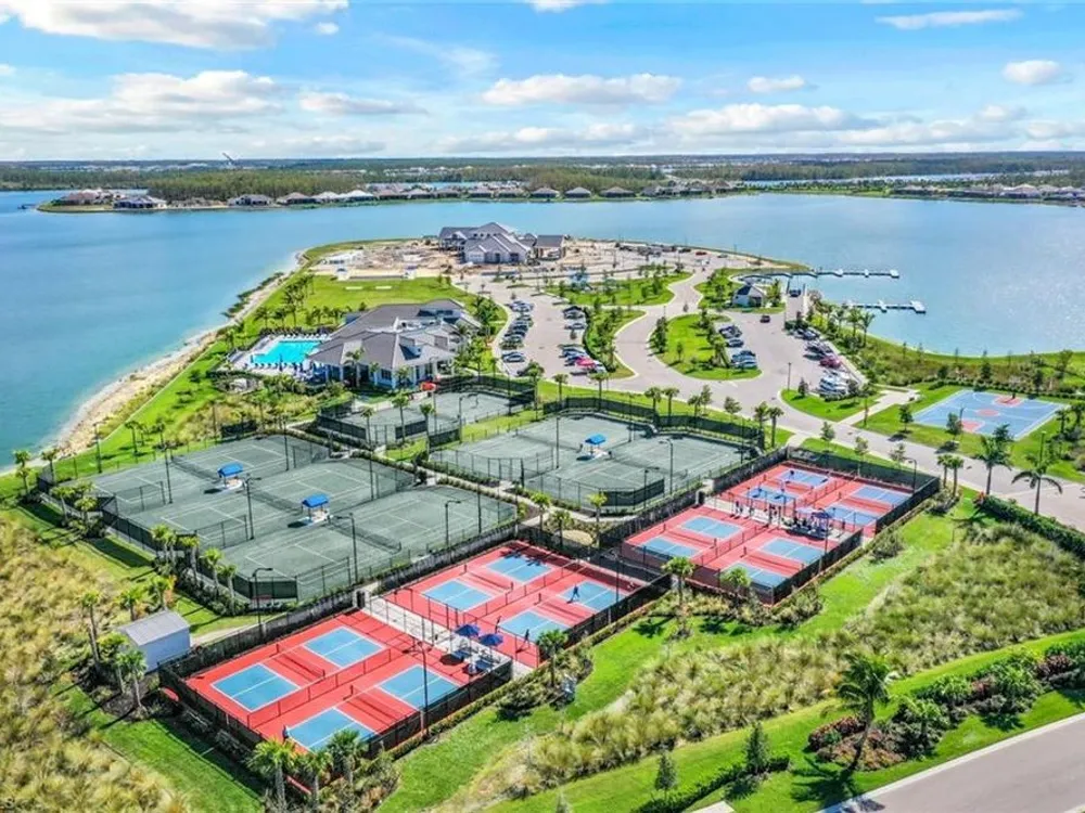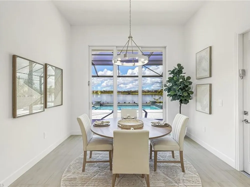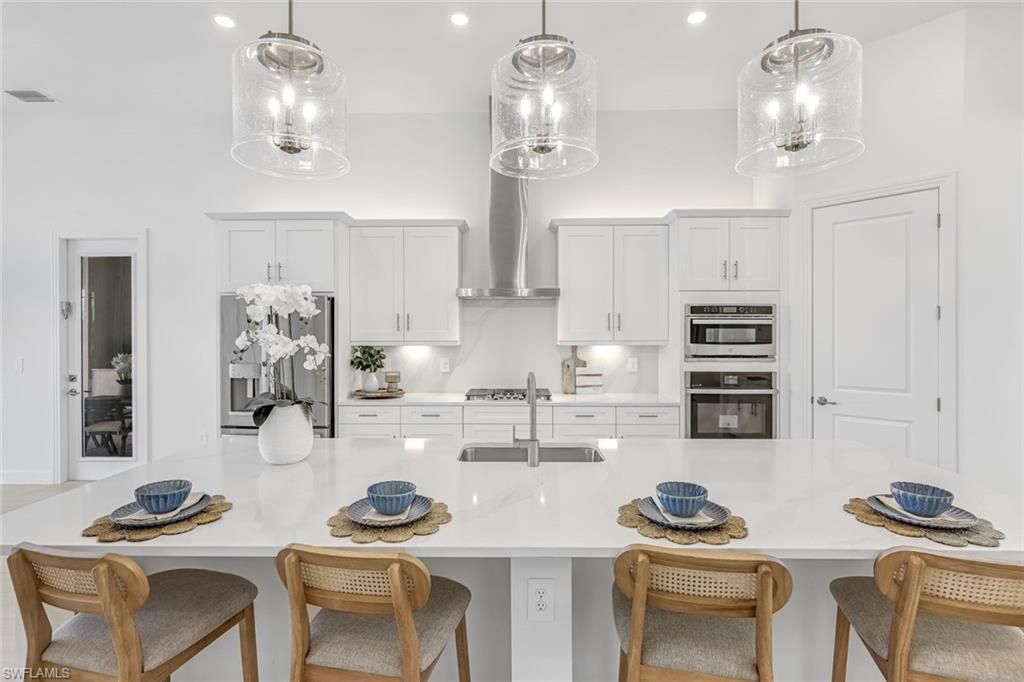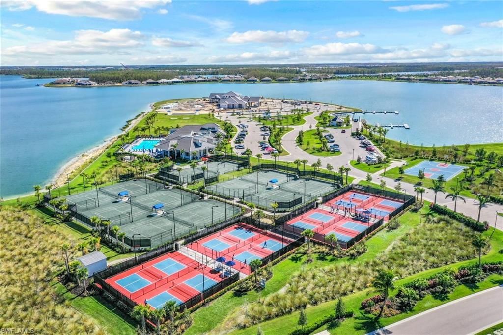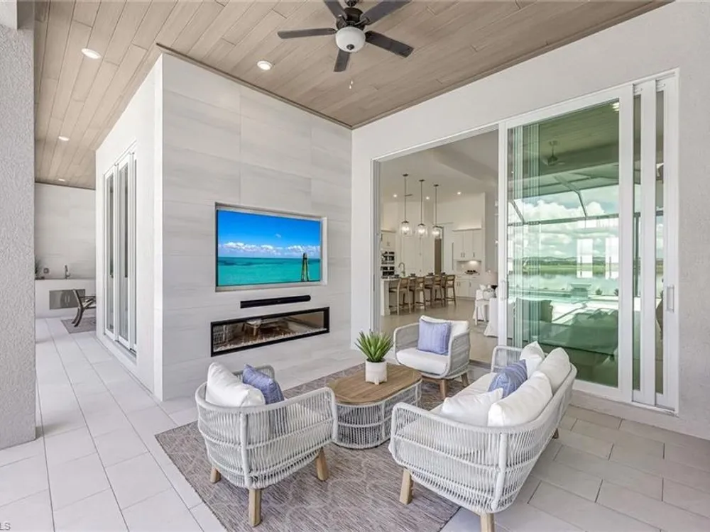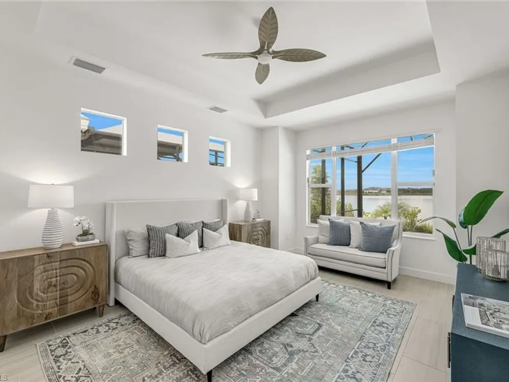 Discover refined waterfront living in this New, Never-Lived-In, 3,178 sq. ft. 4-bedroom, 3.5-bath estate home, perfectly situated on the shimmering shores of WildBlue’s 450 - acre boatable lake - the largest in the community. This residence is the best-selling Baneberry floorplan, WCI’s largest single-story home built in WildBlue, offering the perfect balance of space, elegance, and function in one of Southwest Florida’s most coveted addresses. Set on a quiet, dead-end street within the community, the home enjoys a peaceful location with minimal through traffic, offering added privacy and safety. From the back, you’ll love the incredible lake view, the perfect backdrop for relaxing evenings or entertaining friends and family. No detail has been overlooked in the $250,000+ in upgrades showcased throughout. The home welcomes you with soaring 12-foot ceilings, impact windows and doors, and solid core interior doors that reflect both craftsmanship and quality. The spacious open layout is anchored by a custom built-in feature wall in the living room, enhancing both beauty and function. Step outside to your private oasis: an extended lanai with outdoor kitchen, saltwater pool with striking spillover bowls, and a beautifully upgraded landscape design complete with professional uplighting. Whether entertaining or simply relaxing lakeside, the outdoor living space is designed for year-round enjoyment. Additional highlights include: Natural gas cooking, Custom outdoor living area built-in, Impact windows and doors throughout, Quartz countertops and many other luxury finishes throughout. WildBlue offers world-class amenities, including resort-style pools, a private clubhouse, multiple dining options, fitness center, tennis, pickleball, and direct access to a boatable lake lifestyle - making every day feel like a vacation. This is more than a home; it’s a lifestyle. Schedule your private tour of 17338 Blue Sapphire Drive today and experience WildBlue lakefront luxury at its finest.
