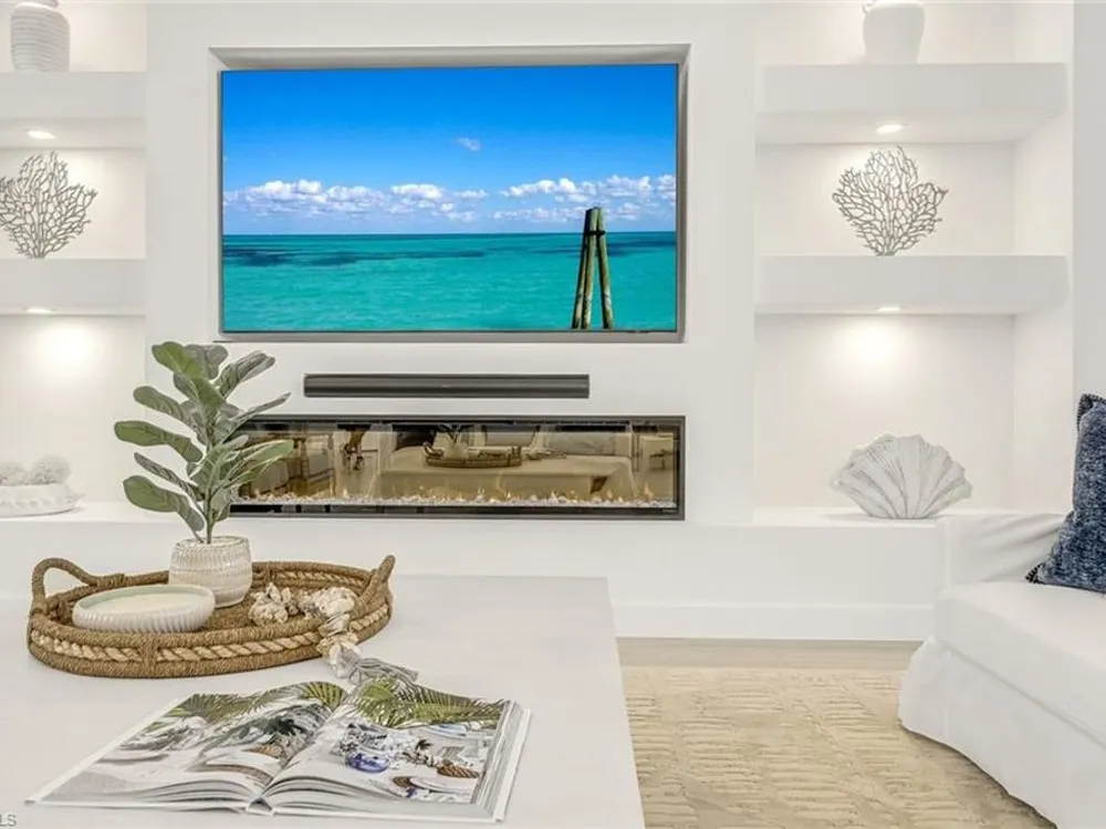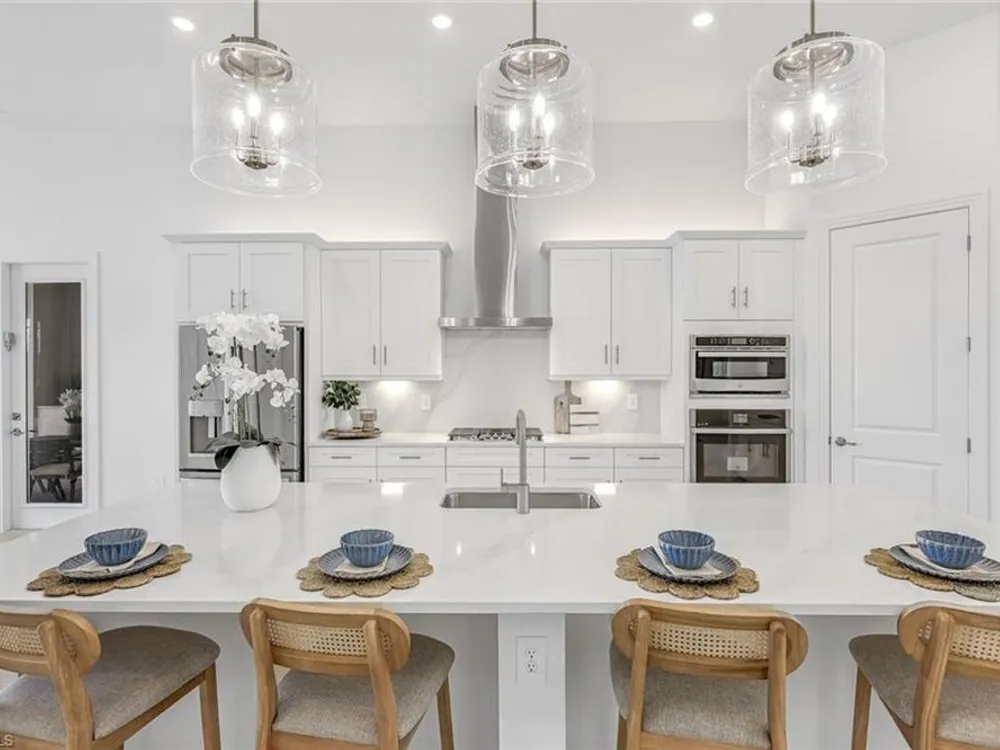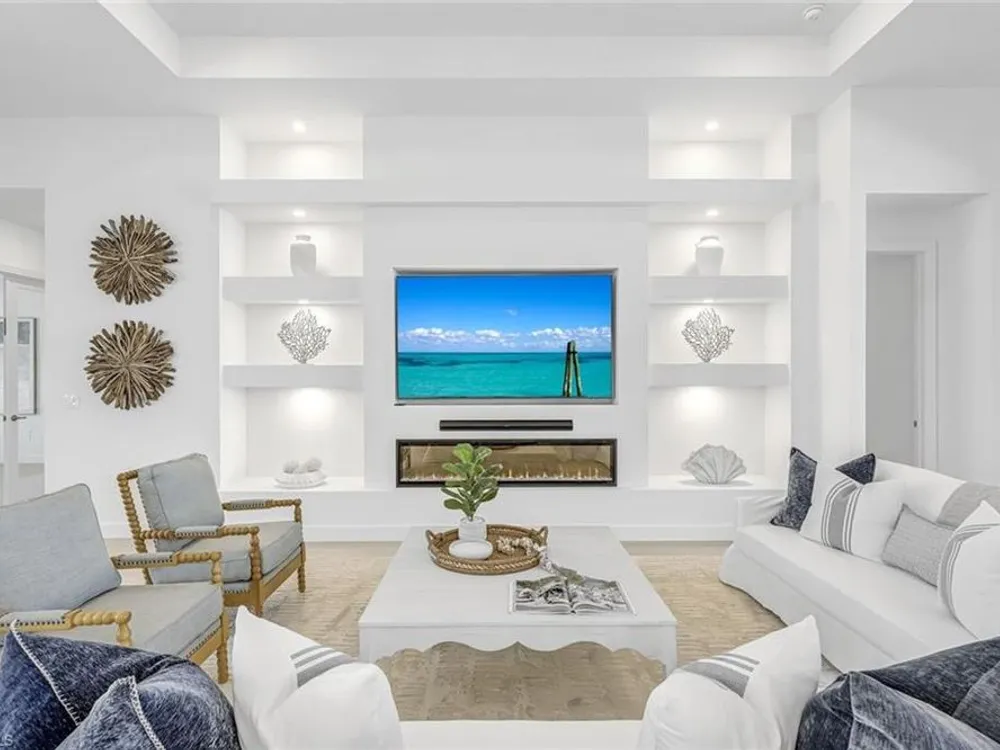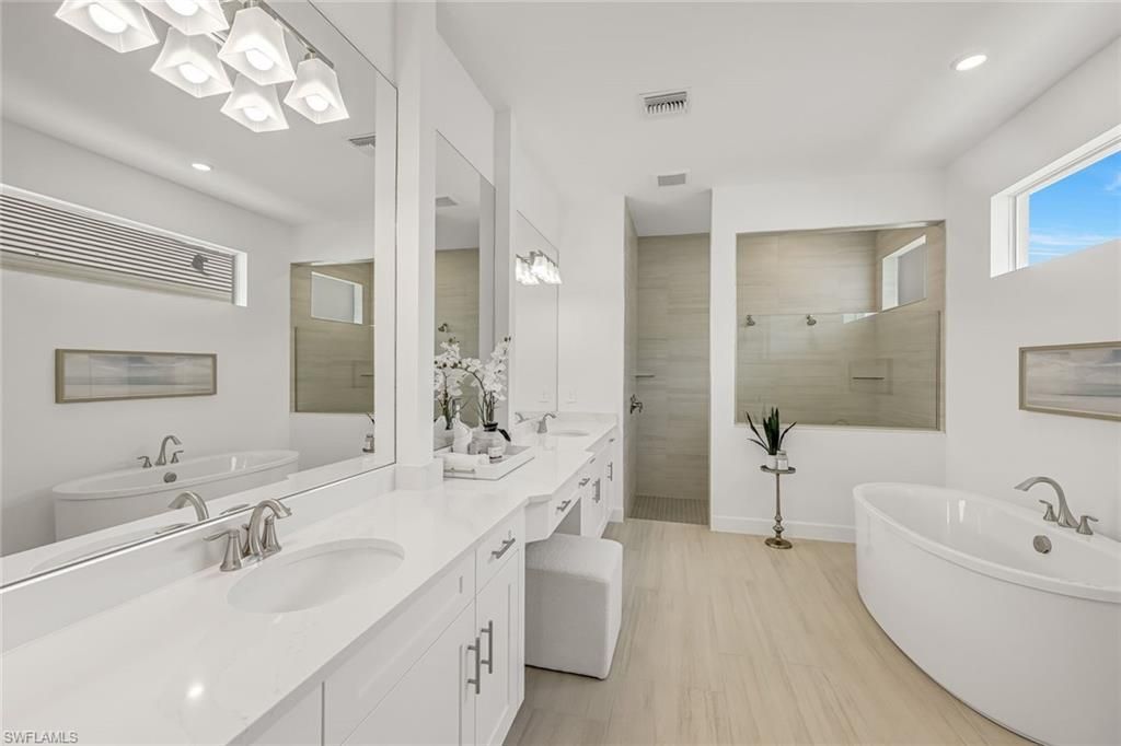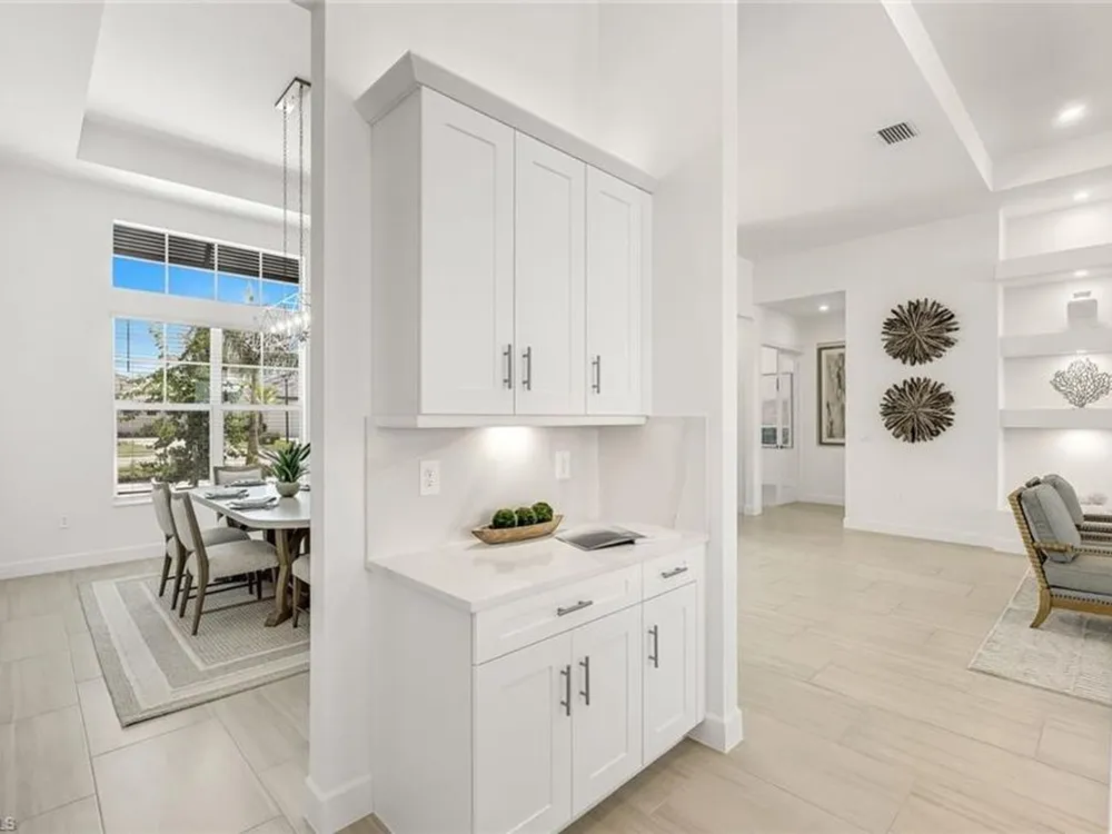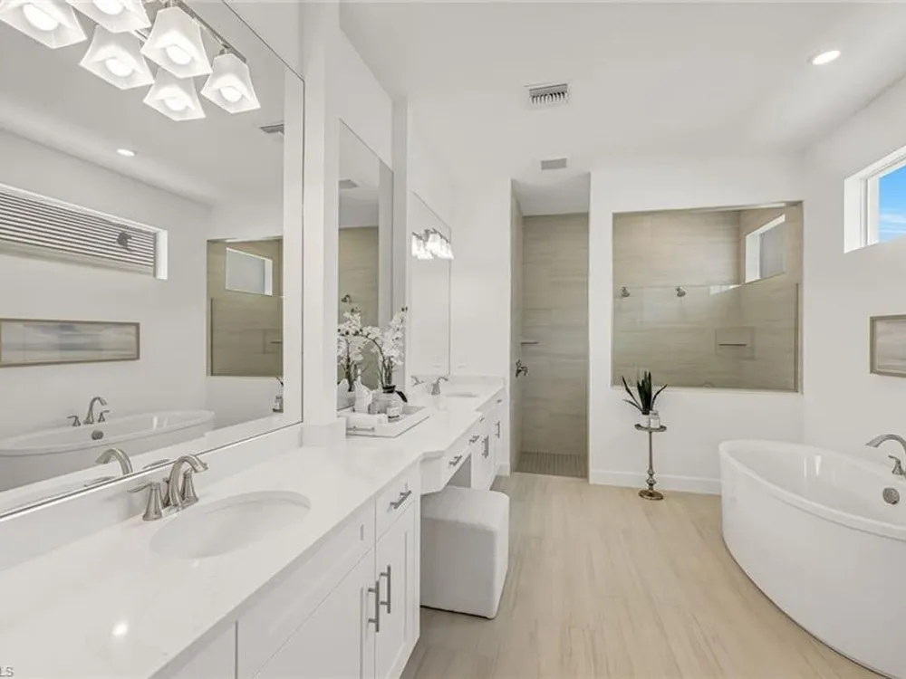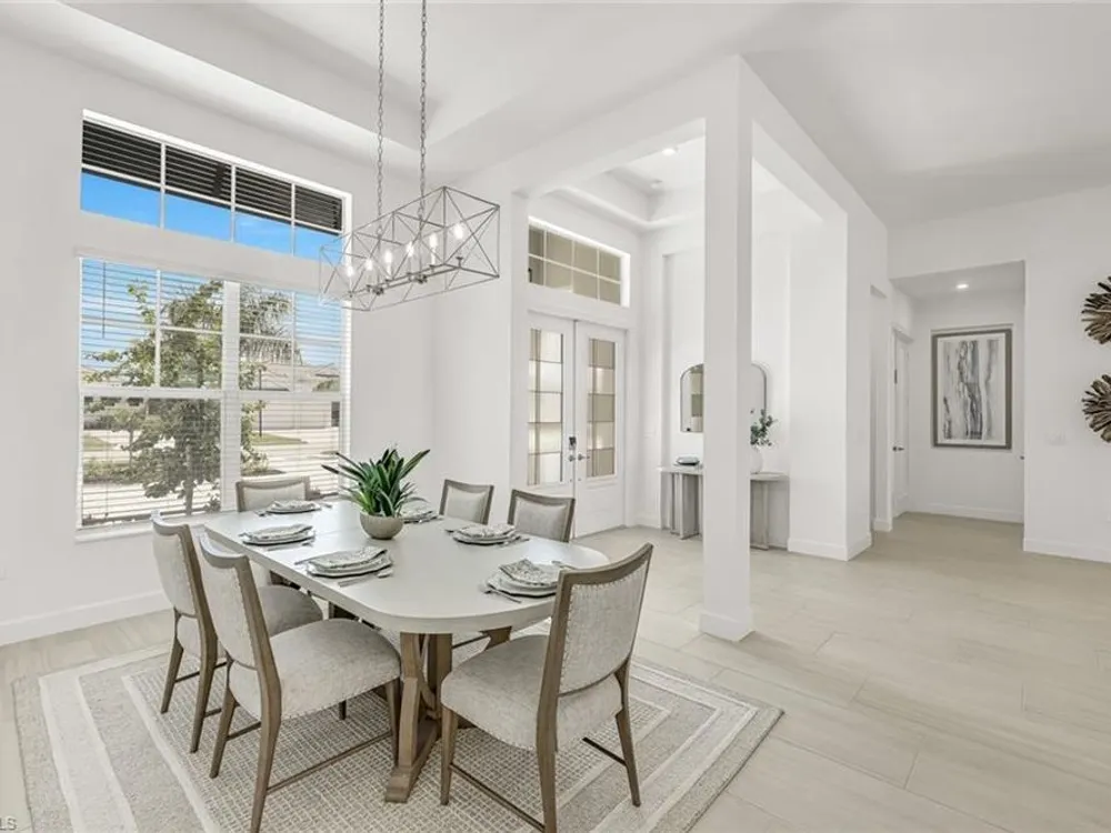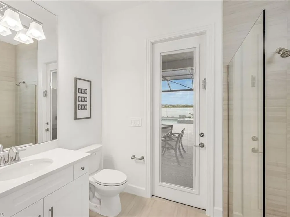 Discover refined waterfront living in this New, Never-Lived-In, 3,178 sq. ft. 4-bedroom, 3.5-bath estate home, perfectly situated on the shimmering shores of WildBlue’s 450 - acre boatable lake - the largest in the community. This residence is the best-selling Baneberry floorplan, WCI’s largest single-story home built in WildBlue, offering the perfect balance of space, elegance, and function in one of Southwest Florida’s most coveted addresses. Set on a quiet, dead-end street within the community, the home enjoys a peaceful location with minimal through traffic, offering added privacy and safety. From the back, you’ll love the incredible lake view, the perfect backdrop for relaxing evenings or entertaining friends and family. No detail has been overlooked in the $250,000+ in upgrades showcased throughout. The home welcomes you with soaring 12-foot ceilings, impact windows and doors, and solid core interior doors that reflect both craftsmanship and quality. The spacious open layout is anchored by a custom built-in feature wall in the living room, enhancing both beauty and function. Step outside to your private oasis: an extended lanai with outdoor kitchen, saltwater pool with striking spillover bowls, and a beautifully upgraded landscape design complete with professional uplighting. Whether entertaining or simply relaxing lakeside, the outdoor living space is designed for year-round enjoyment. Additional highlights include: Natural gas cooking, Custom outdoor living area built-in, Impact windows and doors throughout, Quartz countertops and many other luxury finishes throughout. WildBlue offers world-class amenities, including resort-style pools, a private clubhouse, multiple dining options, fitness center, tennis, pickleball, and direct access to a boatable lake lifestyle - making every day feel like a vacation. This is more than a home; it’s a lifestyle. Schedule your private tour of 17338 Blue Sapphire Drive today and experience WildBlue lakefront luxury at its finest.