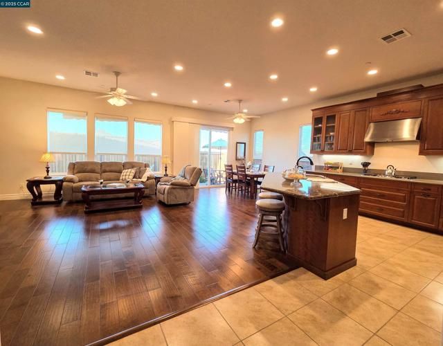 Experience luxurious resort-style living at Trilogy at The Vineyards! This stunning home offers 2-3 bedrooms with an open-concept layout, soaring ceilings, and beautiful hardwood floors. The designer kitchen is a chef's dream, featuring rich mahogany cabinets, slab stone counters, and an oversized island perfect for entertaining. Enjoy thoughtful upgrades like a dramatic turret entry, custom archways, solar, and a tankless water heater. The low-maintenance outdoor space includes a stamped concrete patio and a private courtyard, ideal for unwinding. Trilogy's exclusive amenities provide a vacation lifestyle every day—from tennis and bocce to indoor and outdoor pools, a state-of-the-art gym, and a working vineyard. All with breathtaking views of Mt. Diablo. This isn't just a home; it's a new way of life!