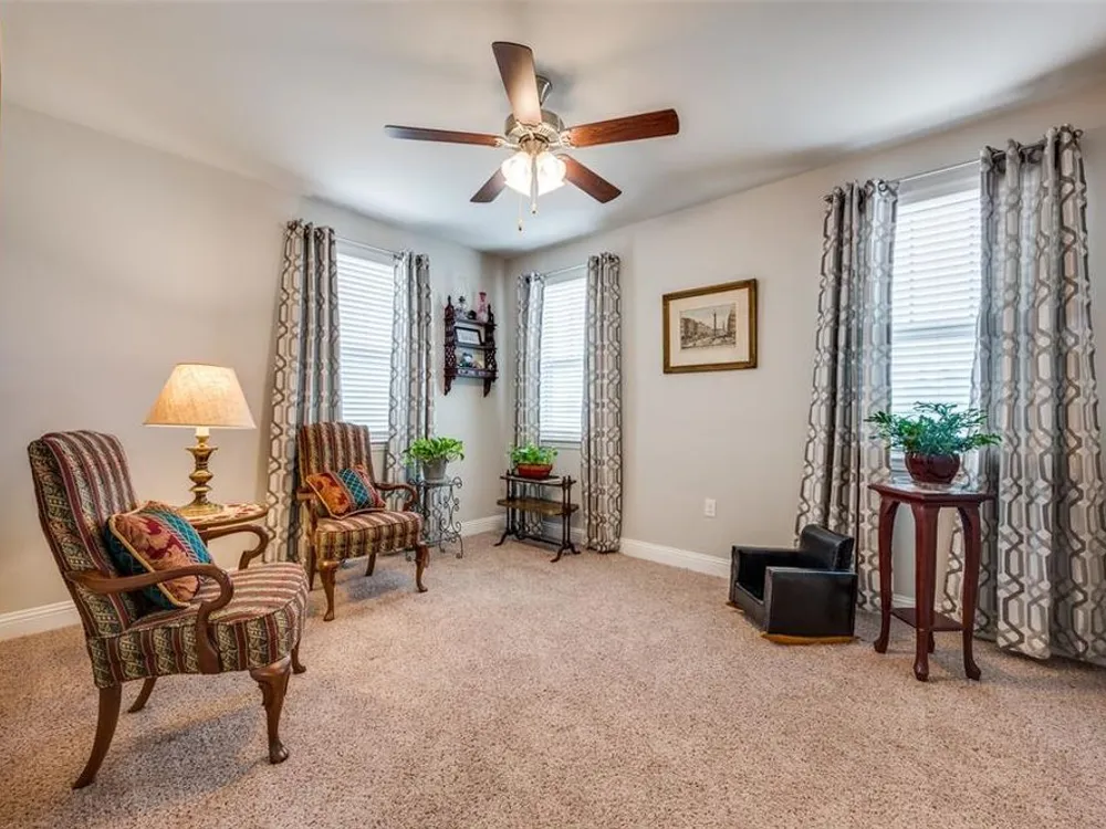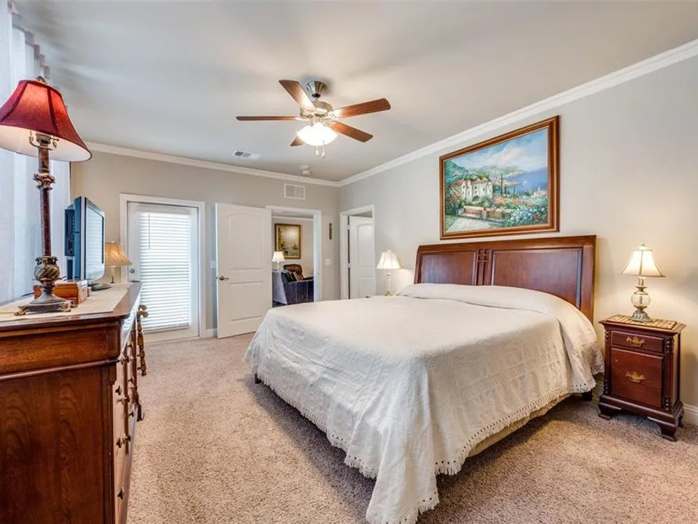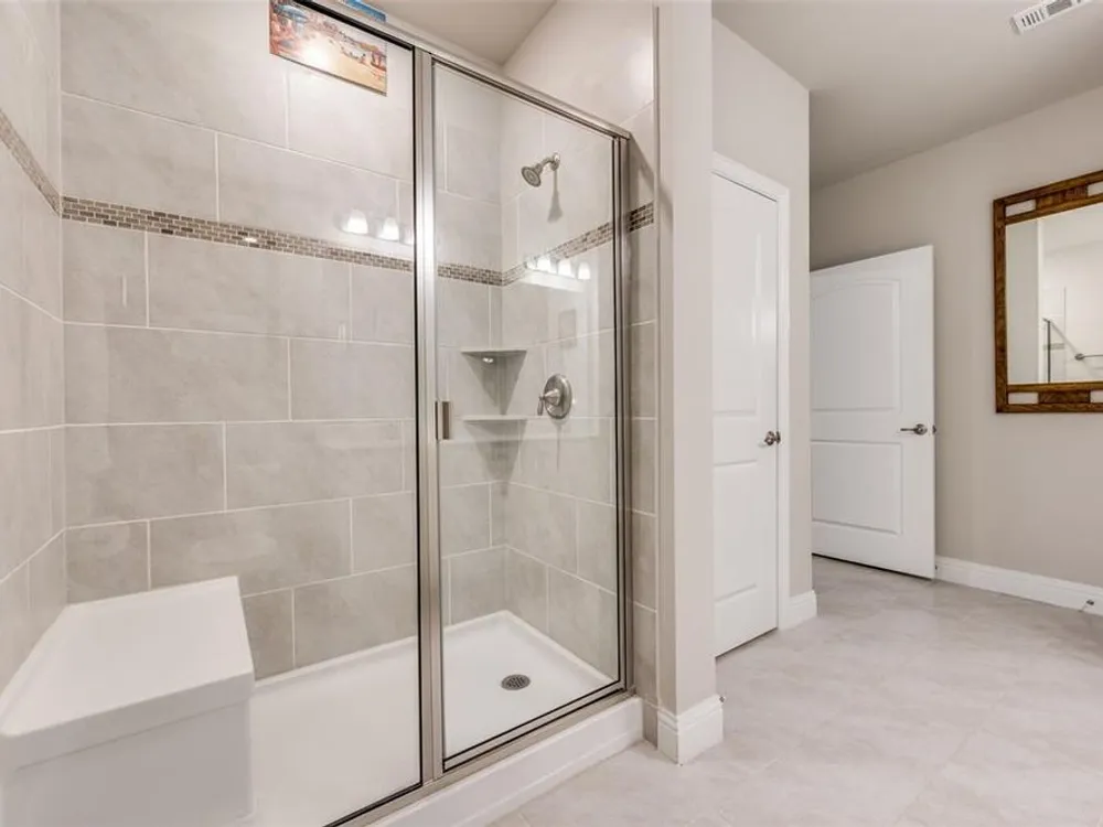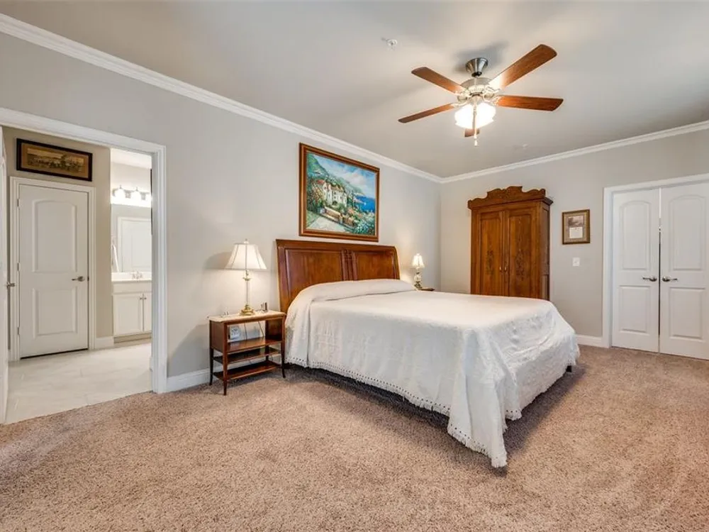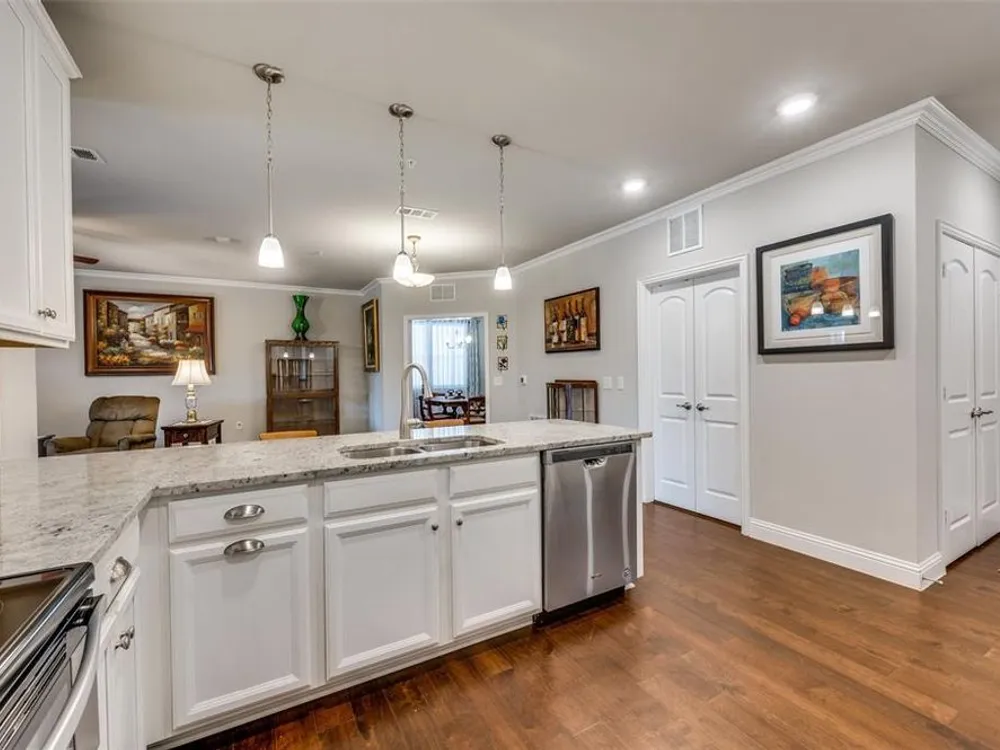 Experience effortless living in this stunning second-floor condo at The Gatherings at Mercer Crossing—a premier 55+ community just minutes from Las Colinas. With only three buildings and about 80 residences, this intimate neighborhood offers a warm, connected feel along with top-notch amenities including multiple fitness centers, a sparkling pool, clubhouse, and social activities. Inside, you'll love the open-concept design filled with natural light and elevated by luxury finishes—quartz countertops, rich hardwood flooring, and designer lighting throughout. The spacious layout includes a dedicated laundry room with room for full sized washer and dryer, abundant storage, and a private balcony complete with storage closet and water heater enclosure. The serene primary suite boasts a custom walk-in closet and a beautifully designed, wheelchair-accessible bath with a large shower and built-in vanity. Enjoy the convenience of garage parking with space for shelving and additional storage. Take in the community’s peaceful ambiance with lakeside walking trails, pocket parks, outdoor grilling areas, and even a greenhouse. This is low-maintenance luxury living at its finest. The garage is on the west side of the building.