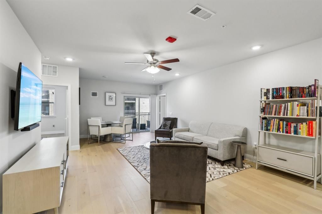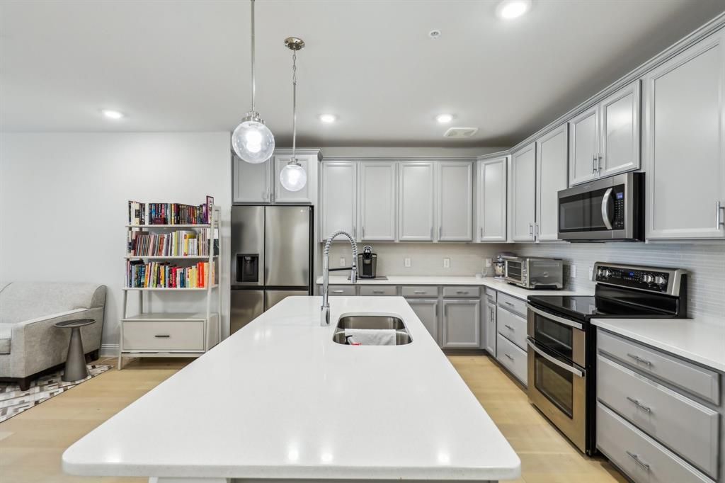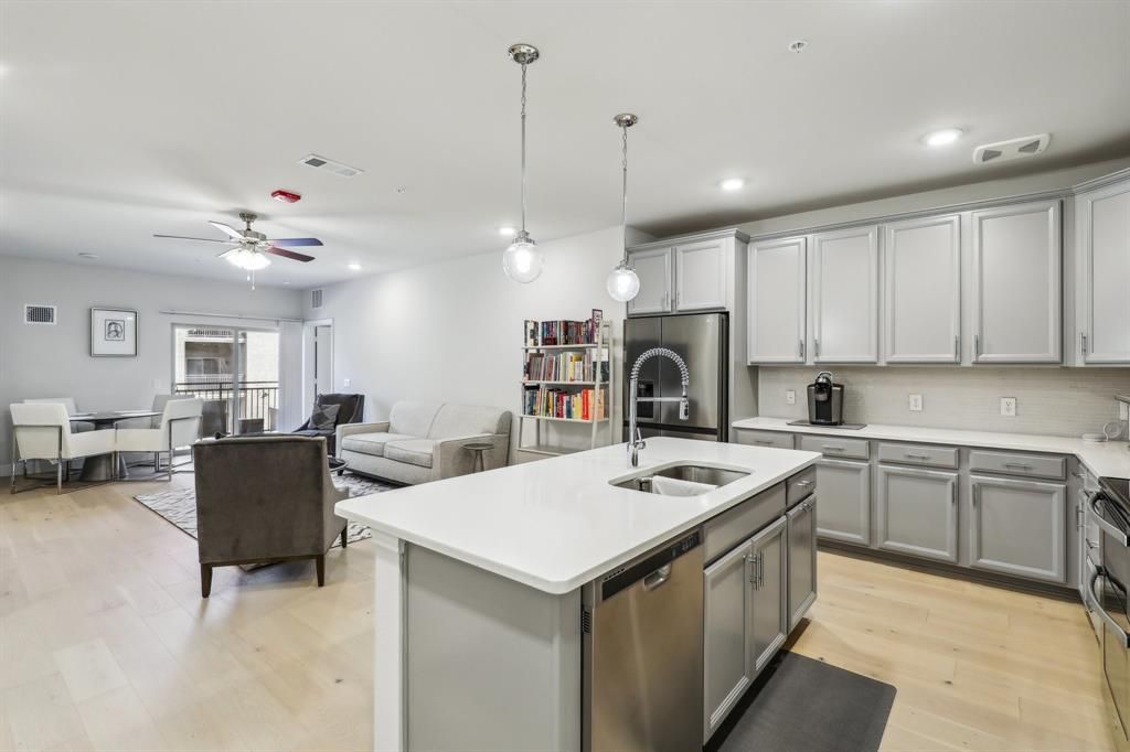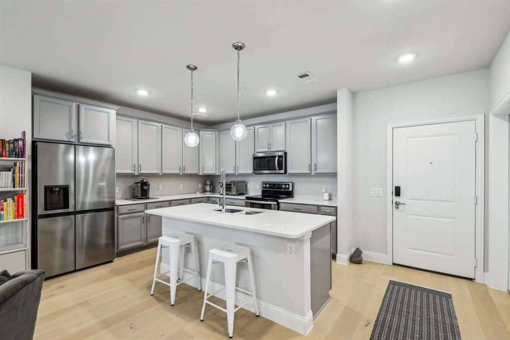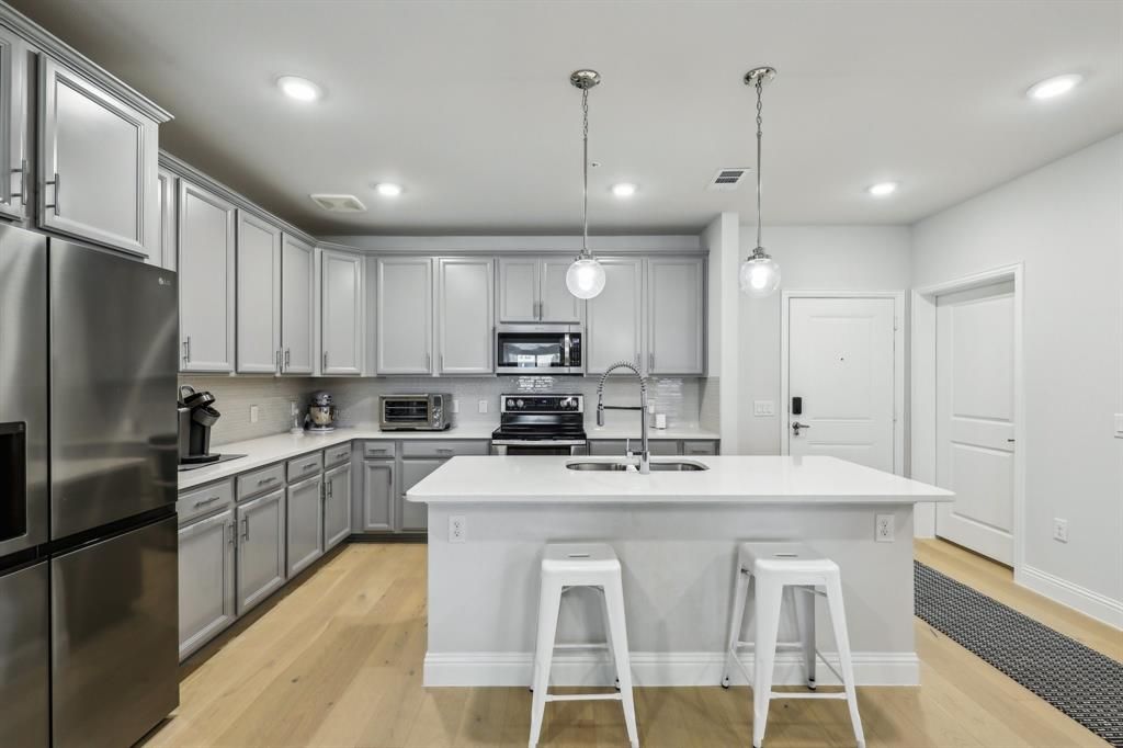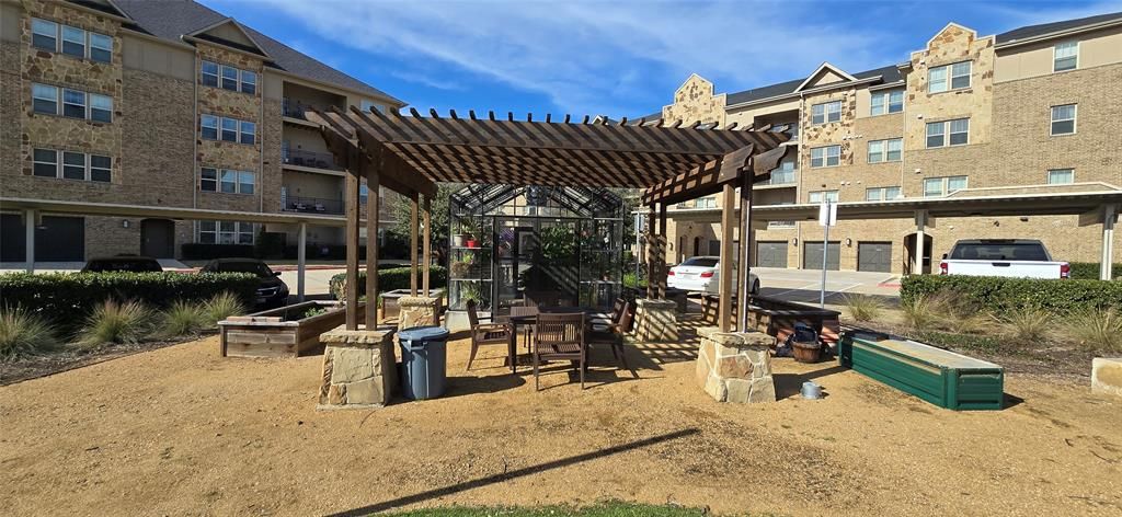 Welcome in to this warm, inviting, and meticulously maintained condo in a 55+ community conveniently located from food, shopping, DFW Airport and North Dallas proper! Over 1500 square feet featuring a GORGEOUS chefs kitchen complete with near infinite cabinet space and an oversized pantry. Generous sized bedrooms and bathroom are accompanied by massive closet space. This spacious home glows with light and welcoming finishes top to bottom from the flooring to the quartz countertops to the paint and lighting. This unit also includes a detached 1 car garage! The development includes a Social Space, gym, greenhouse, outdoor kitchen space. There's even an optional agreement to use a neighboring community pool! So much space and so much to offer will not last long. Reach out for a private tour TODAY.