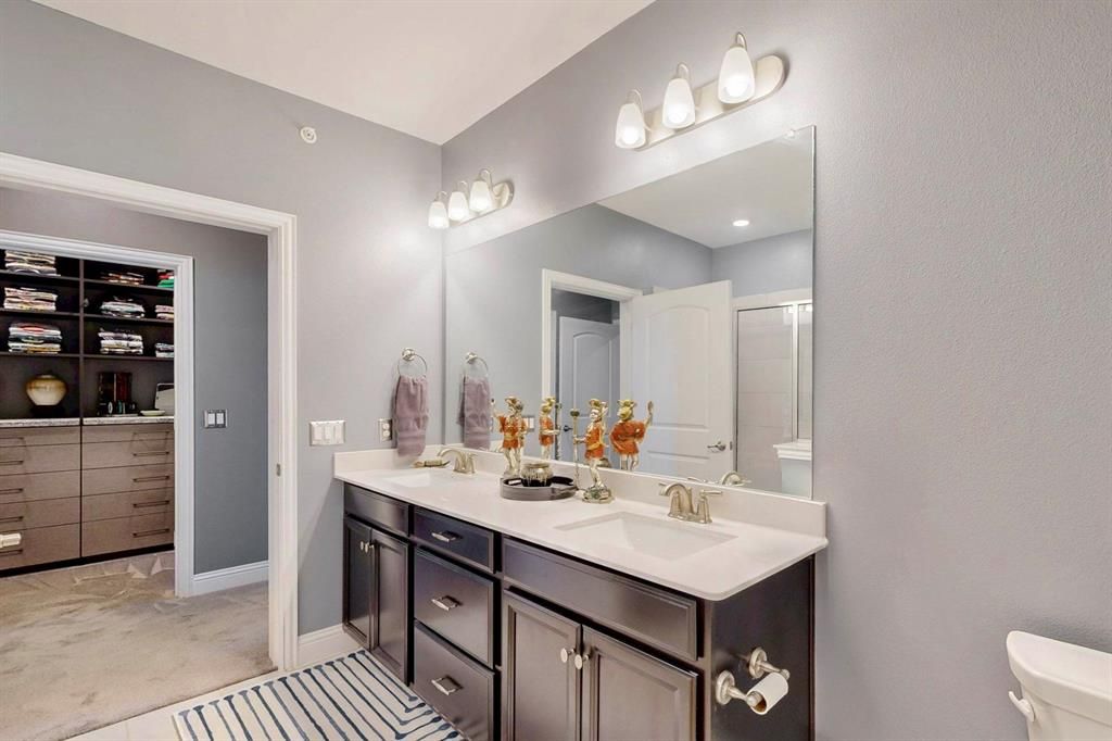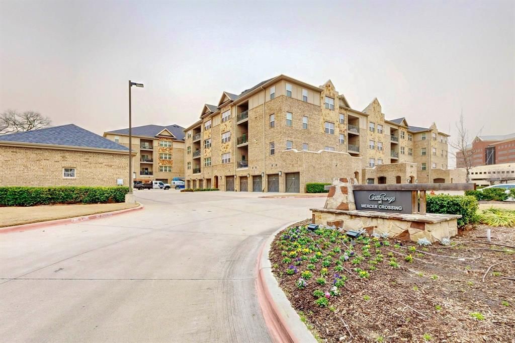 Enjoy the benefits of a 55+ community! The HOA maintains flexibility and may allow a limited number of residents under 55 on a case-by-case basis—a perfect opportunity for those seeking a vibrant, active-adult lifestyle without being strictly age-confined. Offering the lock-and-leave lifestyle in an unbeatable Farmers Branch location packed with amenities—community greenhouse & gardening, fitness center, Bocce Ball courts, social club, outdoor grilling, dog run & scenic green space—plus all exterior home maintenance & landscaping handled by the HOA! Located on the building's top floor in close proximity to the elevator, this meticulously maintained condo boasts an open floor plan with an array of premium features: high 9-FT ceilings, premium blinds, stainless steel appliances, walk-in pantry, large kitchen island, hardwood floors (+upgraded carpet in bedrooms), walk-in storage area, and your own private balcony equipped with solar shades. Oversized primary suite is a private retreat—stunning ensuite has dual sinks, a soaking tub, separate glass shower & a MASSIVE custom walk-in closet. Remaining full bath is easily accessible from main living areas & secondary bedroom. Versatile flex room can be used as office space or a 3rd bedroom! Full in-unit laundry room with built-in cabinets. Plus, private garage parking & the option to purchase an additional storage unit in the building. With roughly 80 units across 3 buildings in the community, Gatherings at Mercer Crossing promotes a neighborly atmosphere with ample opportunity to form new relationships. Located 20 minutes from Dallas with easy access to I-635, I-35 & DFW Airport, near shopping & dining, local hospitals, golf courses & parks. Come see all the amazing perks this community has to offer!