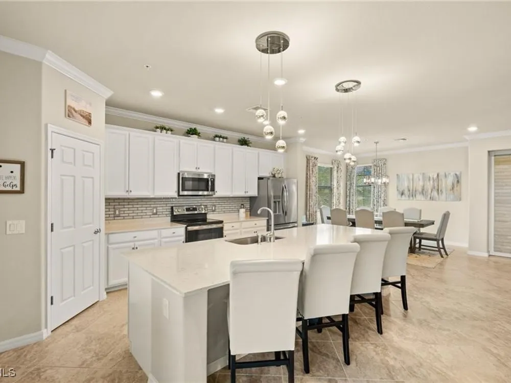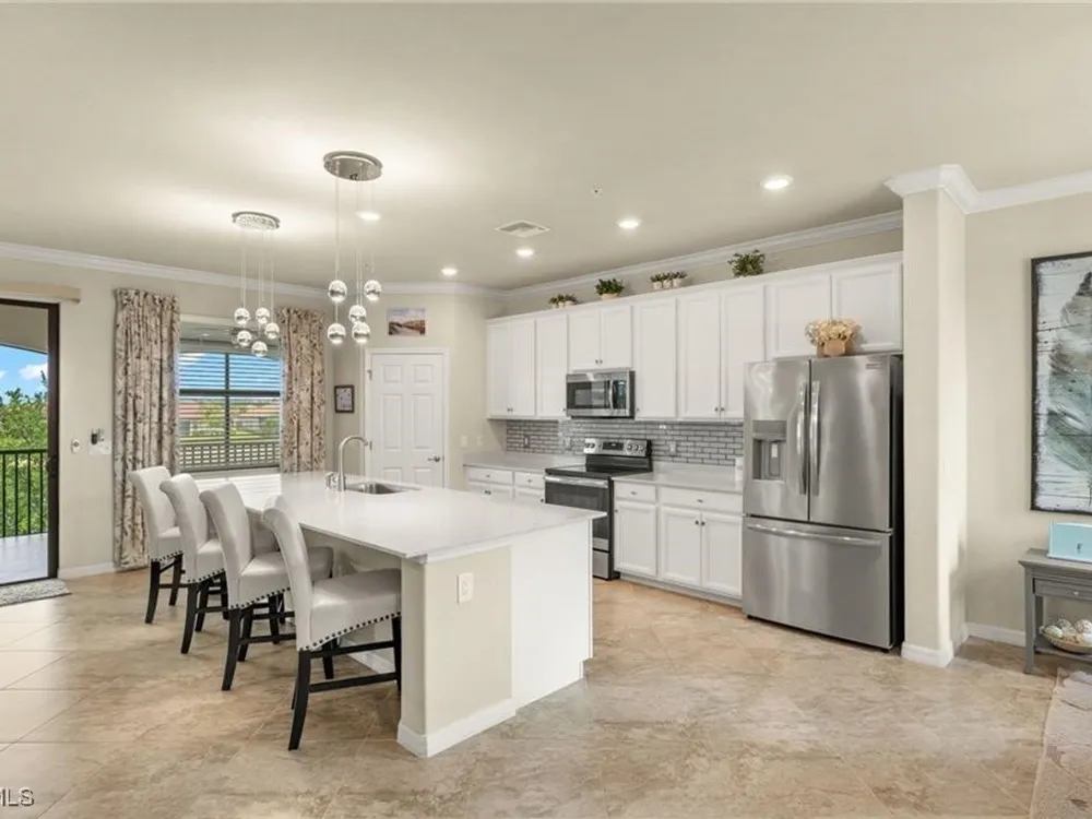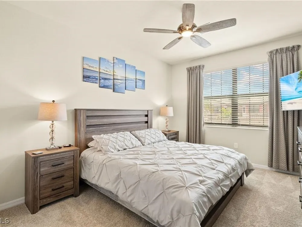 COME SEE THIS "WOW" COACH HOME!! This is an impressive second floor, 3 bedroom/2 bath/2 car oversized garage condo with a big lanai and sweeping sunset views. What enjoyable evenings you will have sitting on your west rear facing lanai watching our gorgeous Florida sunsets! Beautifully furnished and decorated with 3 big bedrooms - Located in Bonita National Golf & Country Club - Social Membership includes all amenities except golf. (Golf is available May through November/off season for Social memberships). Being sold Turnkey/everything included and golf cart is negotiable. This condo is very well stocked from kitchen to bathrooms and everything in between! Current owner has contacts for past renters if new owner is interested. Plenty of storage space: walk-in closets in all 3 bedrooms plus three extra storage closets and the oversize 2 car garage gives plenty of room for bike storage, 2nd refrigerator, etc. Walking distance to the clubhouse with amazing amenities: gorgeous resort style pool - poolside bar and grill - state of the art workout facility - formal & veranda dining - tennis - plus "coming soon" pickleball & bocce ball! - Utopia skin, nails, & massage spa. The LOCATION is really perfect! Just ten miles straight down Bonita Beach Road lands you in the sand and surf at Barefoot/Bonita Beach. Plenty of places to eat, drink, or get ice cream along Bonita Beach Road! Those ten miles inland get you out of the heavy traffic congestion and no flooding worries. Just 5 miles to Publix grocery and within 20 miles of Fort Myers International Airport, Downtown Fort Myers Beach, and Naples.