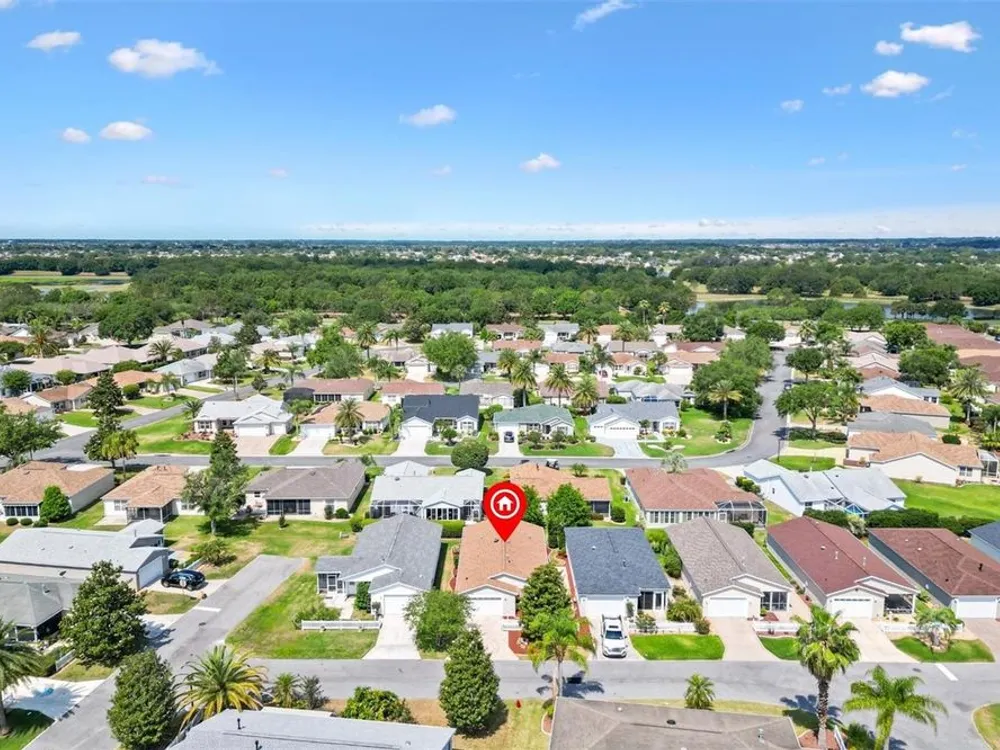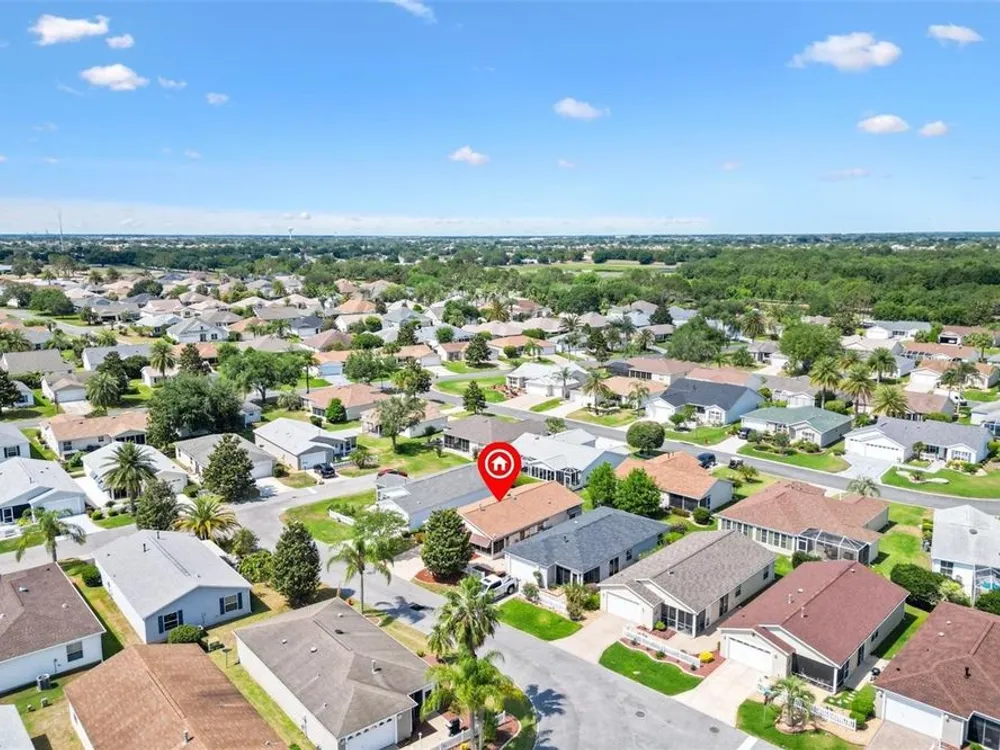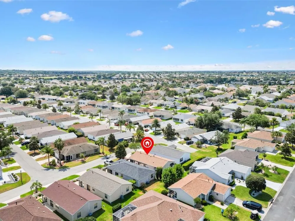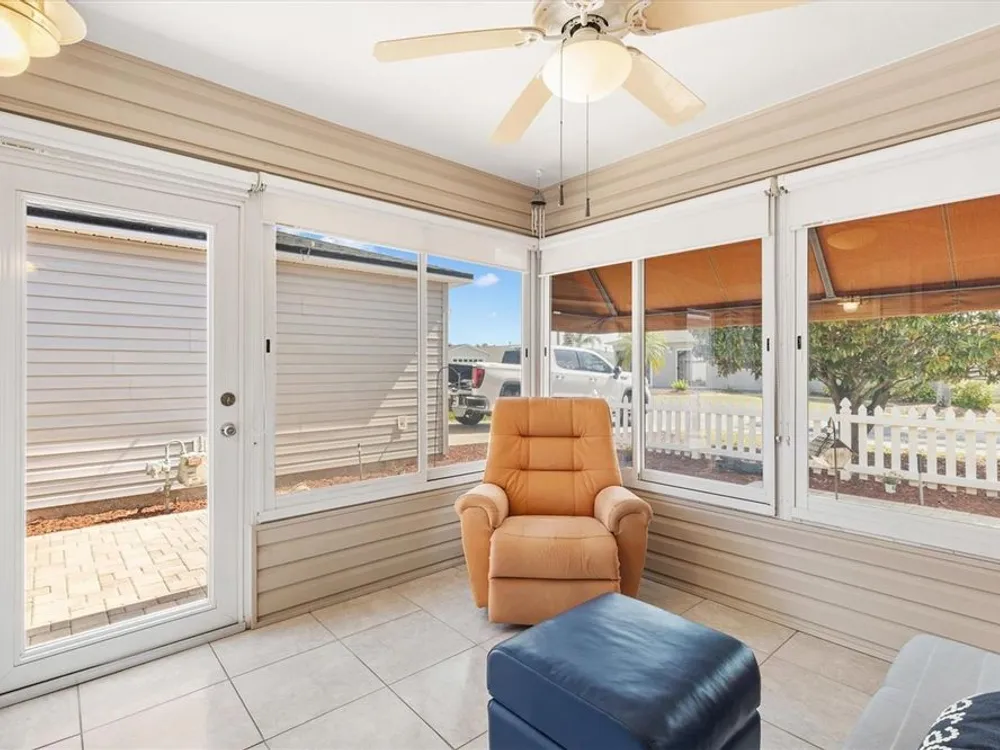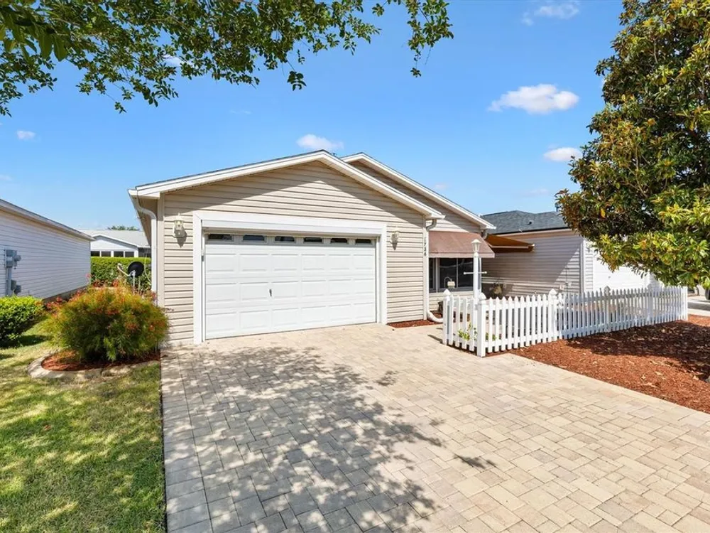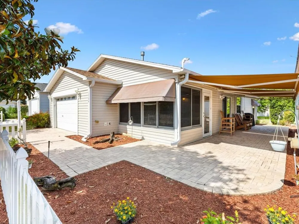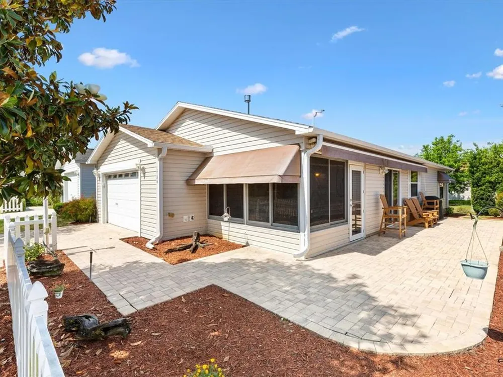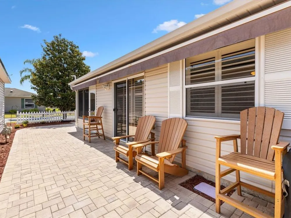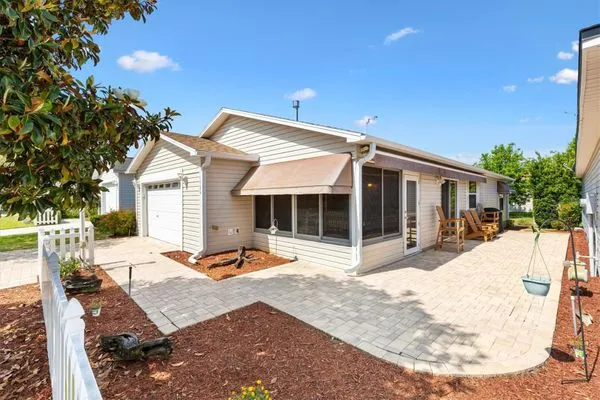 Welcome to your dream retirement haven in THE VILLAGES, Florida, just minutes from the vibrant LAKE SUMTER LANDING! NO BOND! This beautifully maintained 2 Bedroom, 2 Bath patio villa with TILE FLOORS throughout, no carpet, offers the perfect blend of comfort, charm, and convenience for those looking to embrace the carefree lifestyle The Villages is famous for. From the moment you arrive, you’ll appreciate the curb appeal of the brick paver driveway and patio. Step inside to discover an inviting interior that radiates coastal charm with a breezy beach-themed décor, offered fully furnished so you can move right in and begin enjoying life. The villa features abundant natural light enhanced by 3 strategically placed SOLAR TUBES, PLANTATION SHUTTERS throughout the home provide elegance and privacy, while an ELECTRIC SUNSHADE on the side of the home adds comfort and energy efficiency. The kitchen is as functional as it is stylish, with CUSTOM BUILT CABINETS, a unique TILE countertop, and a breakfast bar perfect for morning coffee or casual dining. The open-concept layout flows seamlessly into the living area, ideal for relaxing or entertaining. The primary suite offers a peaceful retreat with a wall-mounted TV, a TILE vanity, and a spacious walk-in shower. The second bedroom is a versatile space with a MURPHY BED and BUILT-IN DESK featuring a FOLD OUT TABLE, perfect for guests or hobbies. A second bathroom includes a DEEP SOAKING TUB and TILE countertops, offering a touch of spa-like indulgence. Outdoor living is just as delightful! A sliding glass door leads to a private brick paver patio with ELECTRIC SUNSHADE, perfect for enjoying Florida's sunshine in comfort. The ENCLOSED LANAI at the front of the home provides a cozy spot to unwind with a good book or a morning cup of coffee, complete with SUNSHADES for added relaxation. The garage houses the laundry area, complete with a utility sink for added convenience. Recent updates include a NEW ROOF (2021), HVAC (2013) and WATER HEATER (2019), giving you peace of mind for years to come. And with all the essentials already here, INCLUDING FURNISHINGS, you’ll only need to bring your toothbrush. Living in The Villages means embracing a lifestyle where every day feels like a weekend. With free access to executive golf courses, golf cart-friendly streets, endless recreation, and social opportunities at your fingertips, you’ll never run out of ways to enjoy your days. Whether it's golf in the morning, live music in the evening, or simply relaxing in your beautiful new home, this is the retirement you’ve earned. This isn’t just a house; it’s the next chapter of your best life! Welcome home.