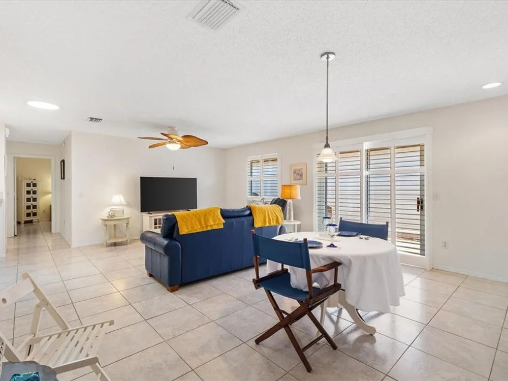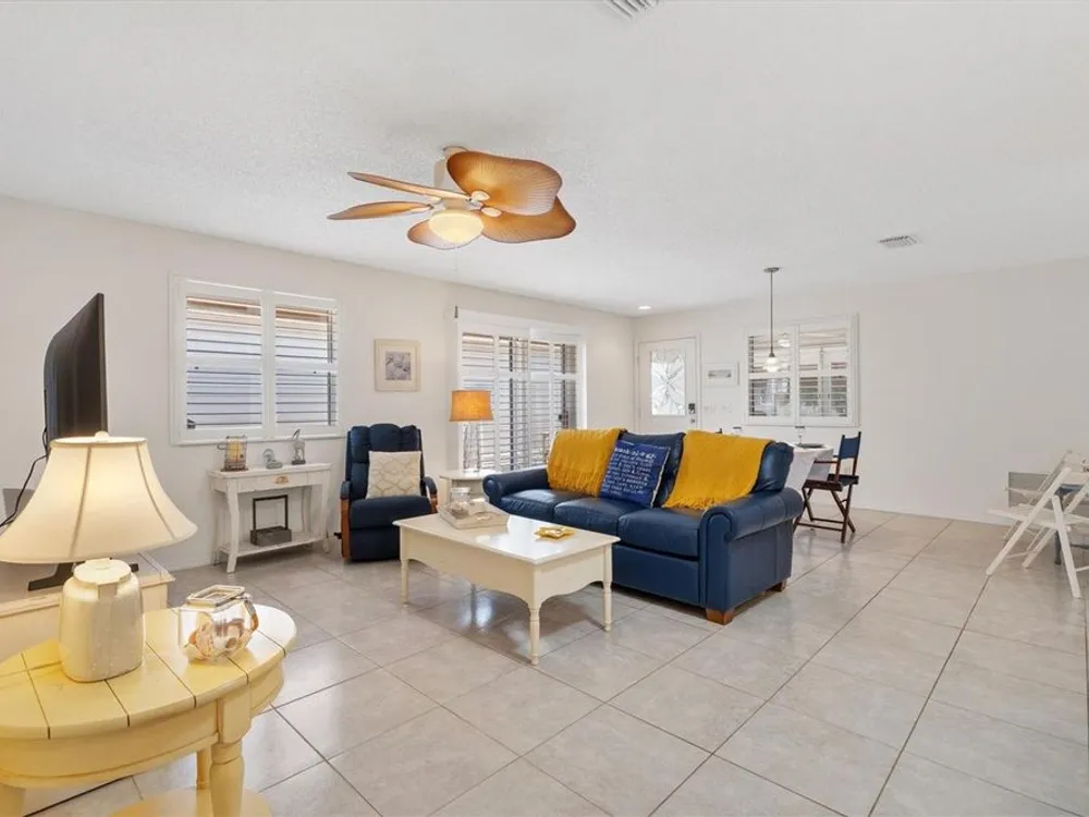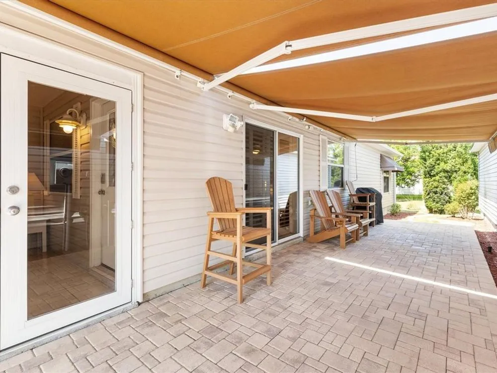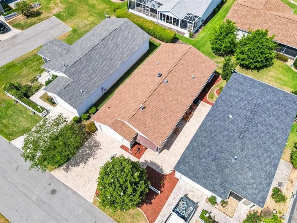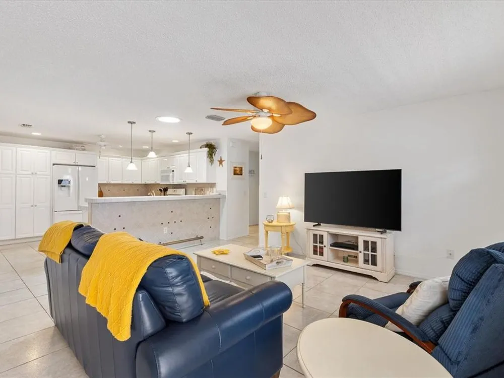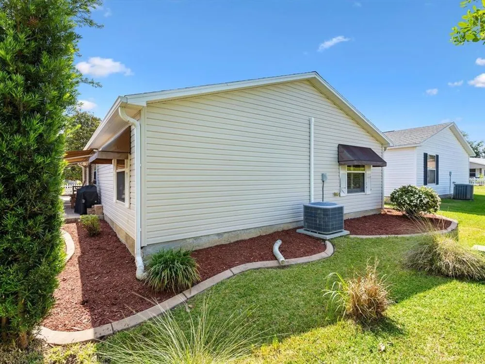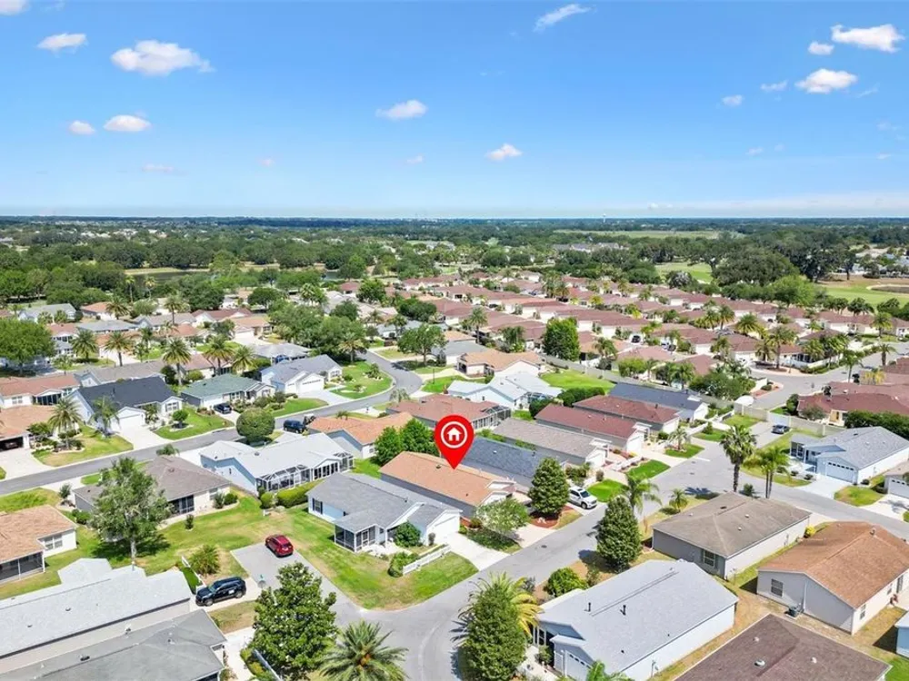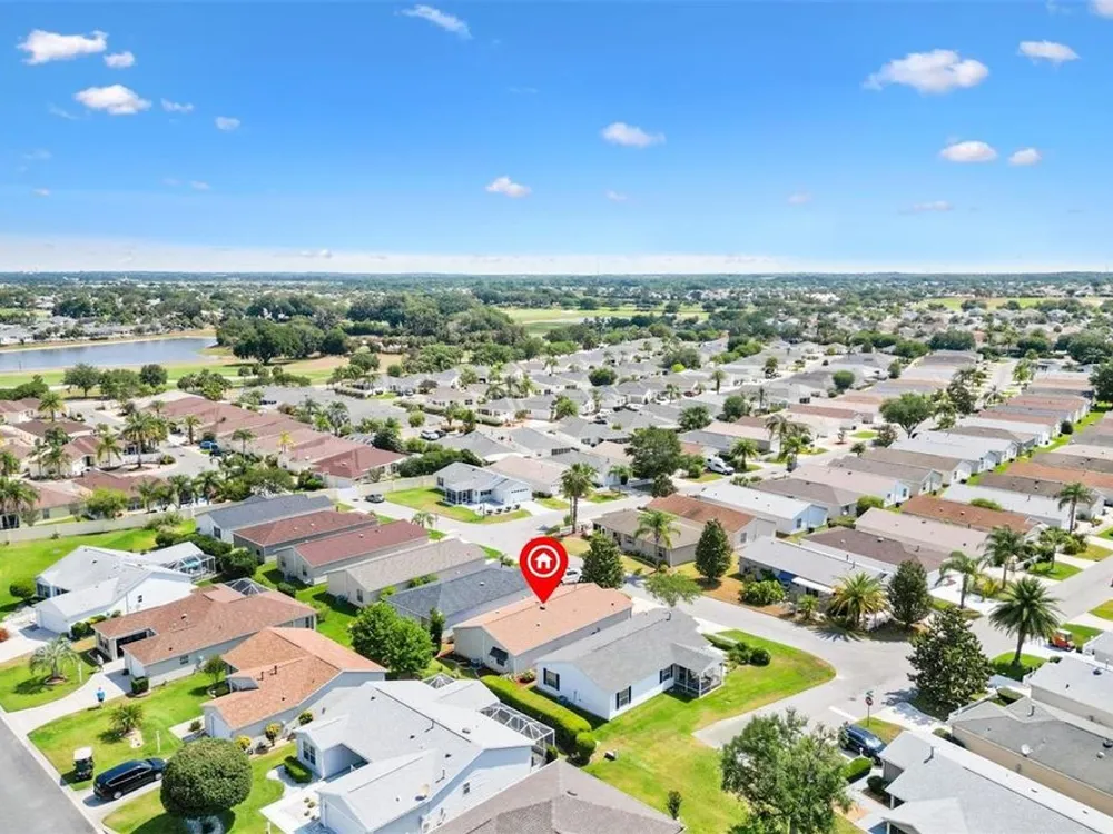 Welcome to your dream retirement haven in THE VILLAGES, Florida, just minutes from the vibrant LAKE SUMTER LANDING! NO BOND! This beautifully maintained 2 Bedroom, 2 Bath patio villa with TILE FLOORS throughout, no carpet, offers the perfect blend of comfort, charm, and convenience for those looking to embrace the carefree lifestyle The Villages is famous for. From the moment you arrive, you’ll appreciate the curb appeal of the brick paver driveway and patio. Step inside to discover an inviting interior that radiates coastal charm with a breezy beach-themed décor, offered fully furnished so you can move right in and begin enjoying life. The villa features abundant natural light enhanced by 3 strategically placed SOLAR TUBES, PLANTATION SHUTTERS throughout the home provide elegance and privacy, while an ELECTRIC SUNSHADE on the side of the home adds comfort and energy efficiency. The kitchen is as functional as it is stylish, with CUSTOM BUILT CABINETS, a unique TILE countertop, and a breakfast bar perfect for morning coffee or casual dining. The open-concept layout flows seamlessly into the living area, ideal for relaxing or entertaining. The primary suite offers a peaceful retreat with a wall-mounted TV, a TILE vanity, and a spacious walk-in shower. The second bedroom is a versatile space with a MURPHY BED and BUILT-IN DESK featuring a FOLD OUT TABLE, perfect for guests or hobbies. A second bathroom includes a DEEP SOAKING TUB and TILE countertops, offering a touch of spa-like indulgence. Outdoor living is just as delightful! A sliding glass door leads to a private brick paver patio with ELECTRIC SUNSHADE, perfect for enjoying Florida's sunshine in comfort. The ENCLOSED LANAI at the front of the home provides a cozy spot to unwind with a good book or a morning cup of coffee, complete with SUNSHADES for added relaxation. The garage houses the laundry area, complete with a utility sink for added convenience. Recent updates include a NEW ROOF (2021), HVAC (2013) and WATER HEATER (2019), giving you peace of mind for years to come. And with all the essentials already here, INCLUDING FURNISHINGS, you’ll only need to bring your toothbrush. Living in The Villages means embracing a lifestyle where every day feels like a weekend. With free access to executive golf courses, golf cart-friendly streets, endless recreation, and social opportunities at your fingertips, you’ll never run out of ways to enjoy your days. Whether it's golf in the morning, live music in the evening, or simply relaxing in your beautiful new home, this is the retirement you’ve earned. This isn’t just a house; it’s the next chapter of your best life! Welcome home.