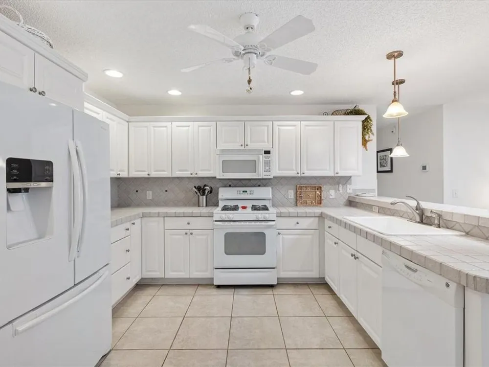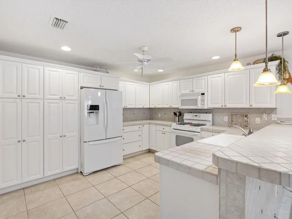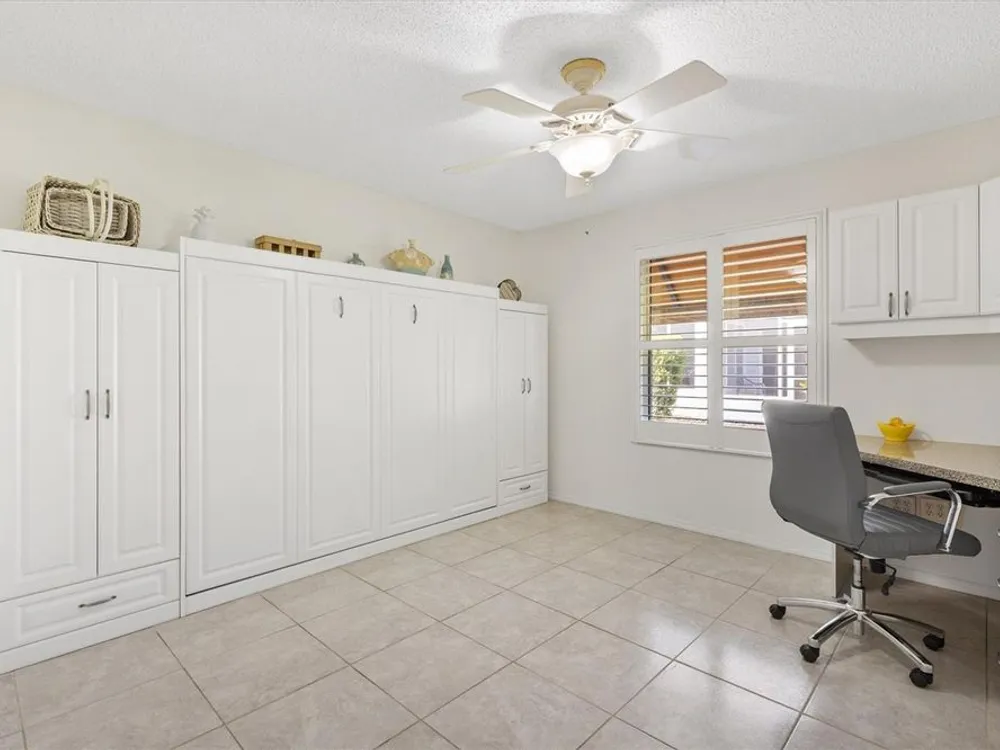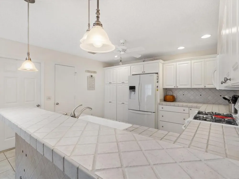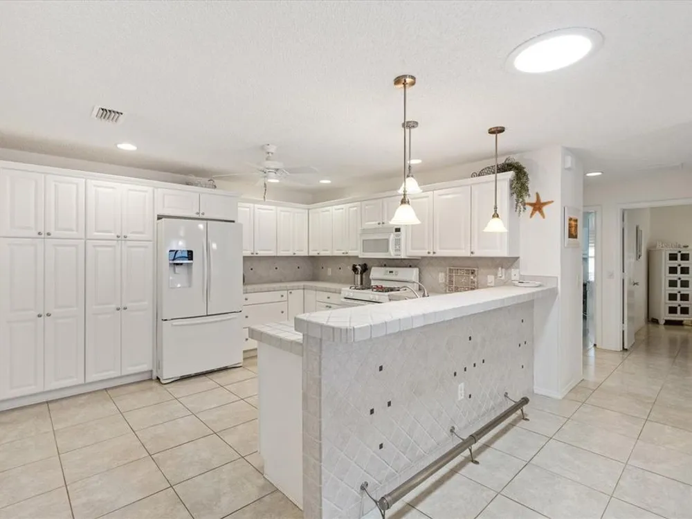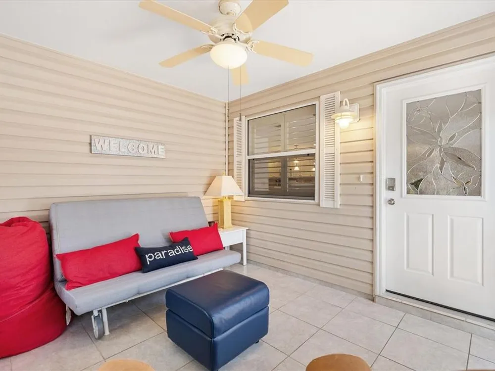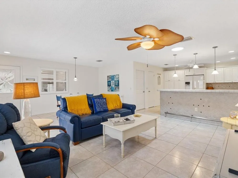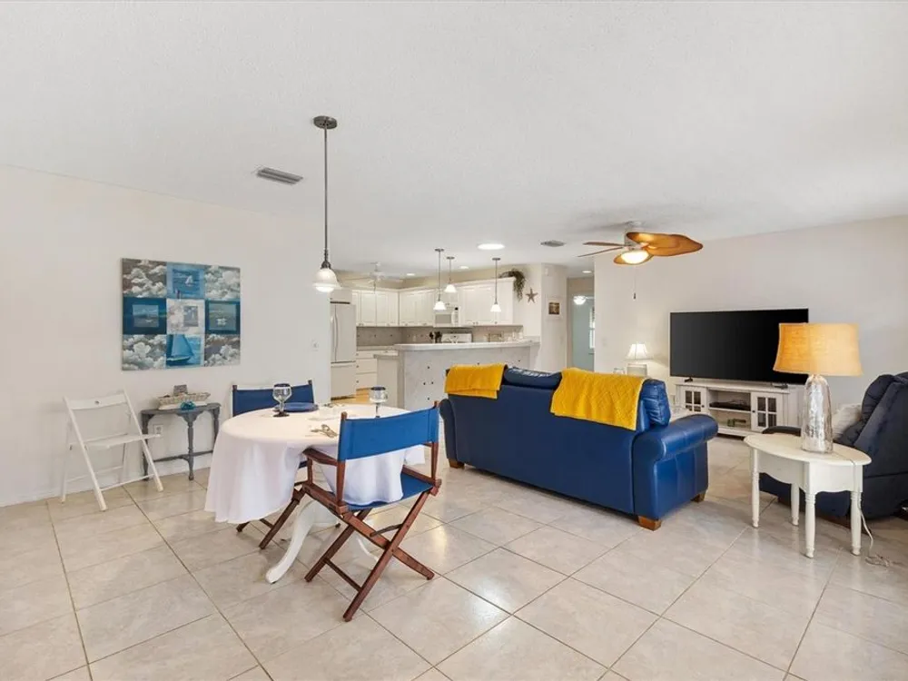 Welcome to your dream retirement haven in THE VILLAGES, Florida, just minutes from the vibrant LAKE SUMTER LANDING! NO BOND! This beautifully maintained 2 Bedroom, 2 Bath patio villa with TILE FLOORS throughout, no carpet, offers the perfect blend of comfort, charm, and convenience for those looking to embrace the carefree lifestyle The Villages is famous for. From the moment you arrive, you’ll appreciate the curb appeal of the brick paver driveway and patio. Step inside to discover an inviting interior that radiates coastal charm with a breezy beach-themed décor, offered fully furnished so you can move right in and begin enjoying life. The villa features abundant natural light enhanced by 3 strategically placed SOLAR TUBES, PLANTATION SHUTTERS throughout the home provide elegance and privacy, while an ELECTRIC SUNSHADE on the side of the home adds comfort and energy efficiency. The kitchen is as functional as it is stylish, with CUSTOM BUILT CABINETS, a unique TILE countertop, and a breakfast bar perfect for morning coffee or casual dining. The open-concept layout flows seamlessly into the living area, ideal for relaxing or entertaining. The primary suite offers a peaceful retreat with a wall-mounted TV, a TILE vanity, and a spacious walk-in shower. The second bedroom is a versatile space with a MURPHY BED and BUILT-IN DESK featuring a FOLD OUT TABLE, perfect for guests or hobbies. A second bathroom includes a DEEP SOAKING TUB and TILE countertops, offering a touch of spa-like indulgence. Outdoor living is just as delightful! A sliding glass door leads to a private brick paver patio with ELECTRIC SUNSHADE, perfect for enjoying Florida's sunshine in comfort. The ENCLOSED LANAI at the front of the home provides a cozy spot to unwind with a good book or a morning cup of coffee, complete with SUNSHADES for added relaxation. The garage houses the laundry area, complete with a utility sink for added convenience. Recent updates include a NEW ROOF (2021), HVAC (2013) and WATER HEATER (2019), giving you peace of mind for years to come. And with all the essentials already here, INCLUDING FURNISHINGS, you’ll only need to bring your toothbrush. Living in The Villages means embracing a lifestyle where every day feels like a weekend. With free access to executive golf courses, golf cart-friendly streets, endless recreation, and social opportunities at your fingertips, you’ll never run out of ways to enjoy your days. Whether it's golf in the morning, live music in the evening, or simply relaxing in your beautiful new home, this is the retirement you’ve earned. This isn’t just a house; it’s the next chapter of your best life! Welcome home.