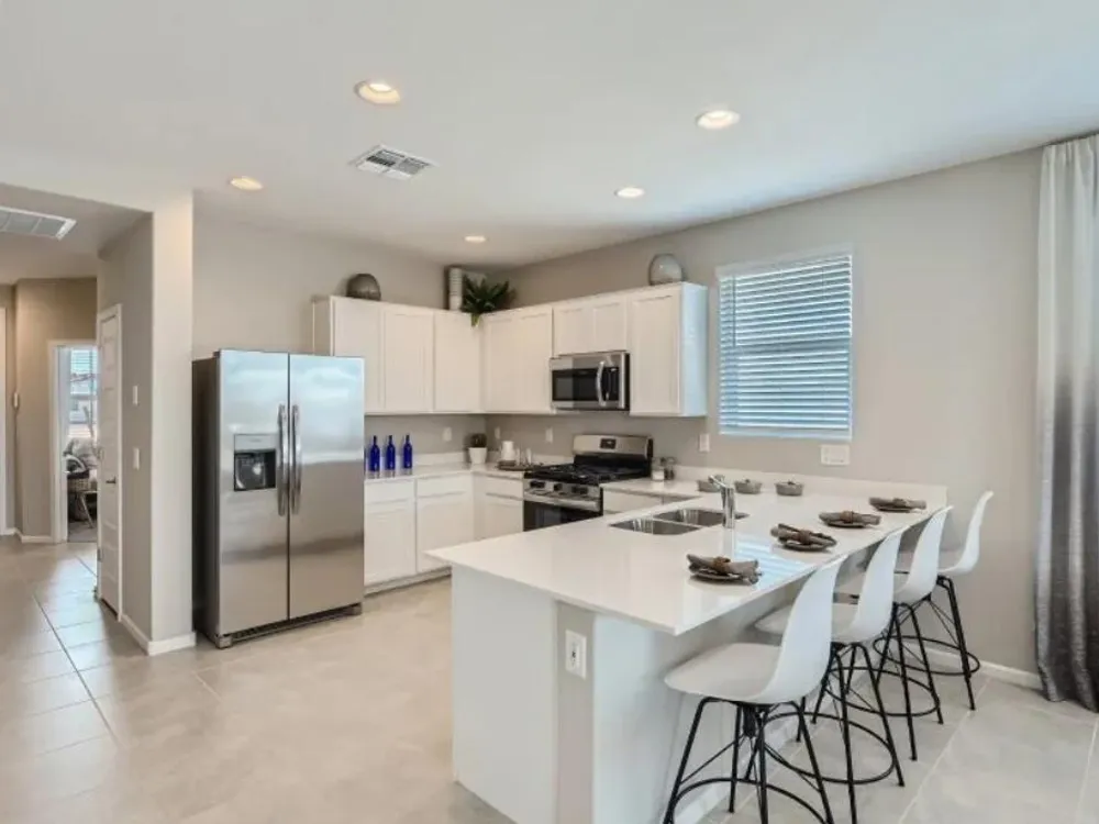Seller will provide a credit towards a rate buydown and closing costs with preferred lender. Ask us how to save thousands over the life of your loan. Asante Heritage is a gated 55+ active adult community located in beautiful Surprise, AZ! Surrounded by scenic mountain views, this community offers convenient access to local shopping, dining, and recreational activities. Residents enjoy a vibrant lifestyle with amenities including a swimming pool, pickleball courts, putting course, fitness center, clubhouse, and more. This home comes fully equipped with all brand-new stainless steel kitchen appliances and is complete with 17x17 tile flooring, elegant quartz countertops, and modern white cabinetry. Photos are of a model home. A copy of the public report is available on the ADREs website.