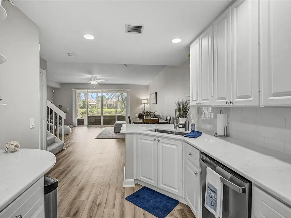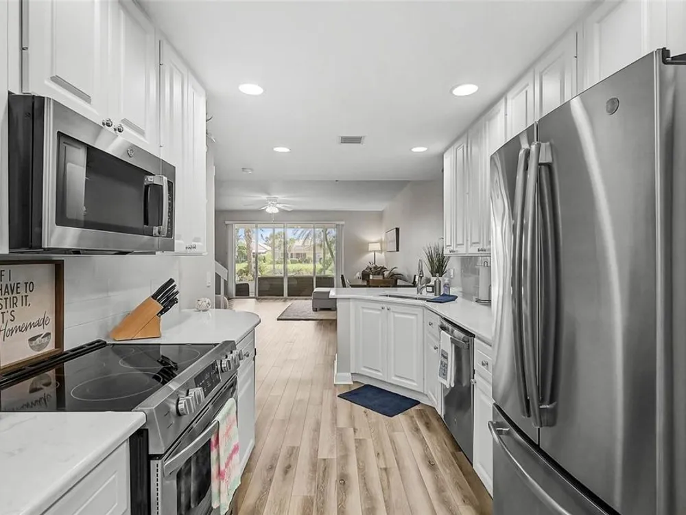 Wake up to a beautiful sunrise setting on South Creek in this tastefully upgraded 3-bedroom, 2.5-bath townhome located in the highly desirable Isles of Sarasota. Built by DiVosta, this maintenance-free home perfectly combines refined coastal style with thoughtful modern updates and solid construction. Step inside to find brand-new luxury vinyl plank flooring throughout the main level and a bright, open layout filled with natural light. The kitchen has been completely refreshed with new quartz countertops, a modern sink, and stainless-steel appliances including refrigerator, stove, microwave, and dishwasher along with a new garbage disposal and water softener system. The spacious living and dining areas flow effortlessly to the screened patio where you’ll enjoy peaceful morning coffee and evening gatherings in a tranquil setting. Upstairs, new carpet enhances comfort across all bedrooms. The primary suite captures serene sunrise views over South Creek and includes a large walk-in closet plus a spa-inspired bath with dual vanities, new faucets, and a glass-enclosed shower. Each of the three bathrooms has been updated with new toilets, fixtures, and lighting for a cohesive, modern look. Every detail has been addressed: a new HVAC system, new hot water heater, new washer and dryer, new ceiling fans and lights in every room, new window coverings throughout, and even new raised shelving and garage door opener in the one car garage. The entire interior including ceilings has been freshly painted, and the home also features hurricane shutters for added protection and peace of mind. Residents of The Isles of Sarasota enjoy resort-style amenities including a heated pool, fitness center, tennis and pickleball courts, clubhouse, and on-site management all just minutes from Siesta Key Beach, Legacy Trail, shopping, dining, and downtown Sarasota. Now it’s your time to own this incredible opportunity. Call today to schedule your private showing and experience The Isles lifestyle firsthand!